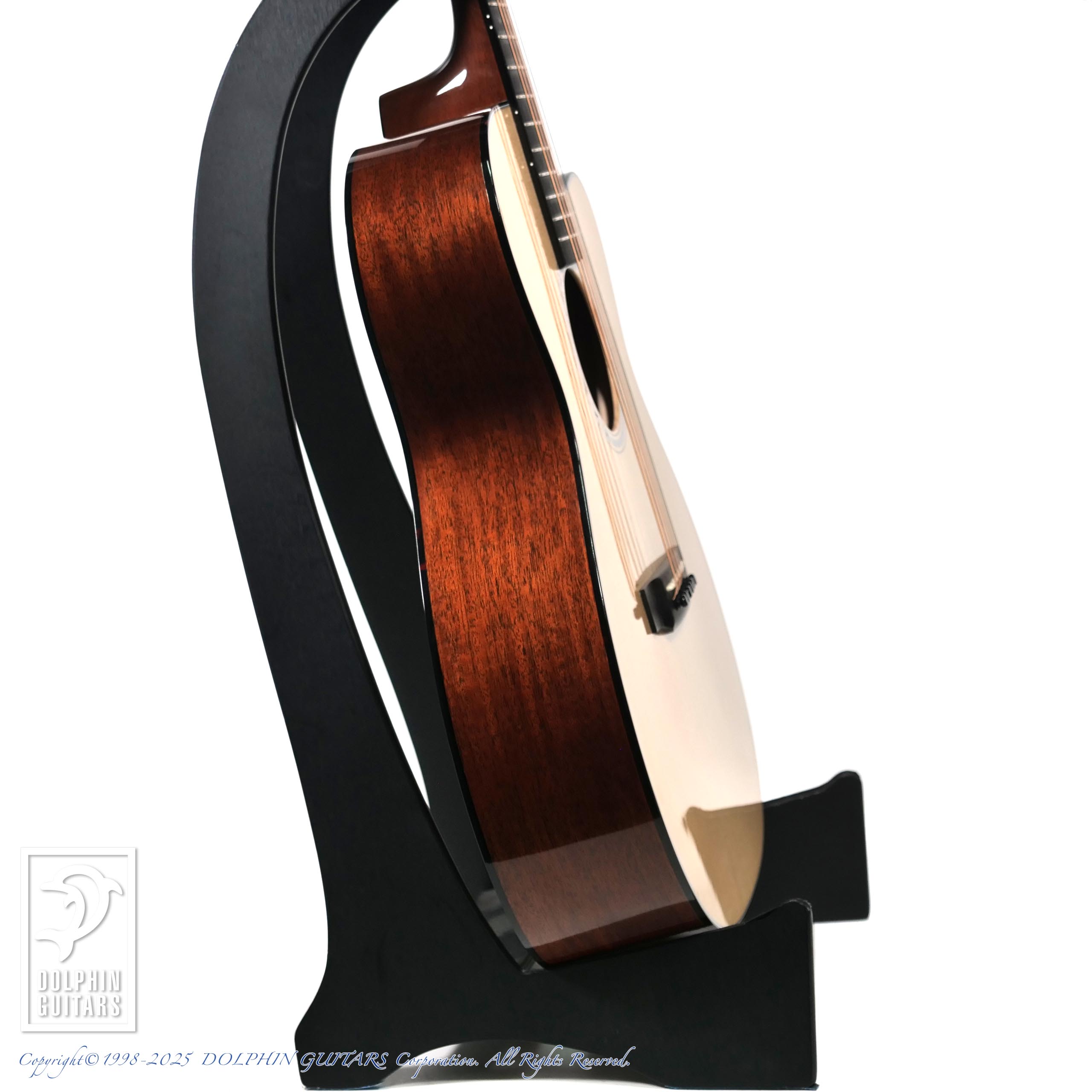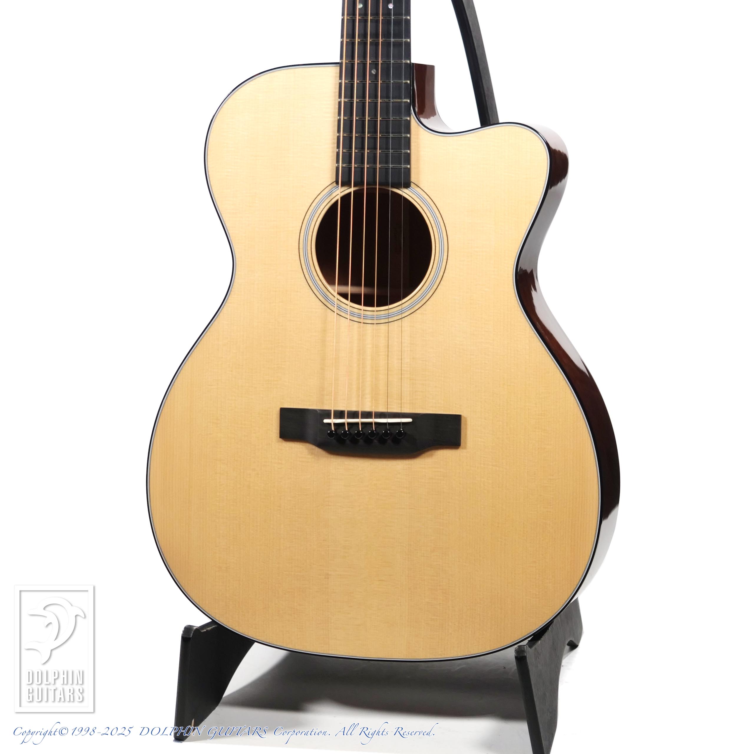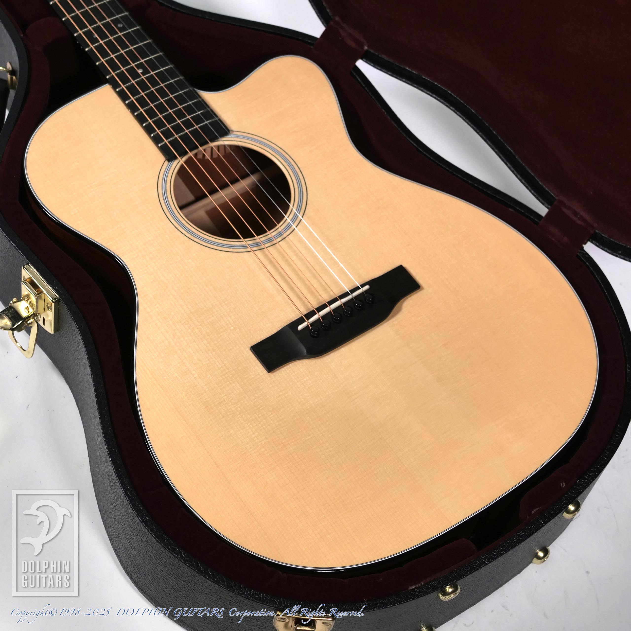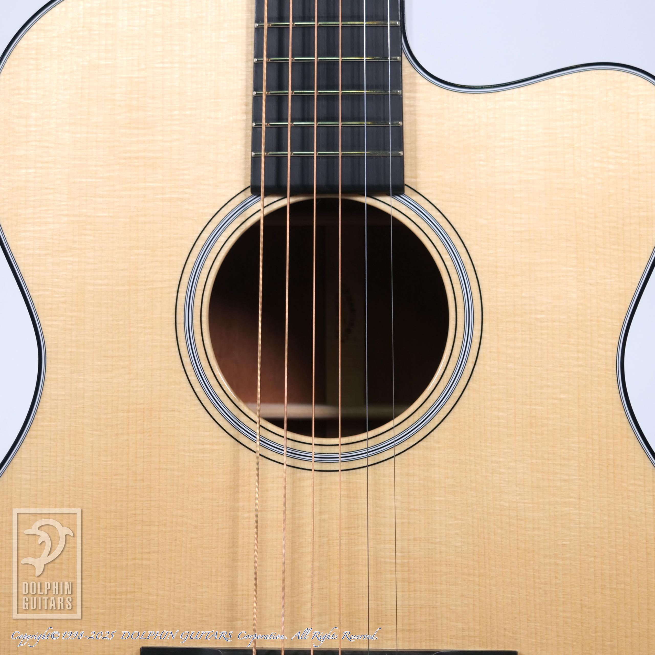 トップには美しいアディロンダックスプルース、ブレイシング材もアディロンを使用し、組み込みのすべてを膠(ニカワ)で行うというハイドグルーコンプリートオプションが採用されております。ボディー全体が一体となって響く感覚はこれによる影響が大きいでしょう。