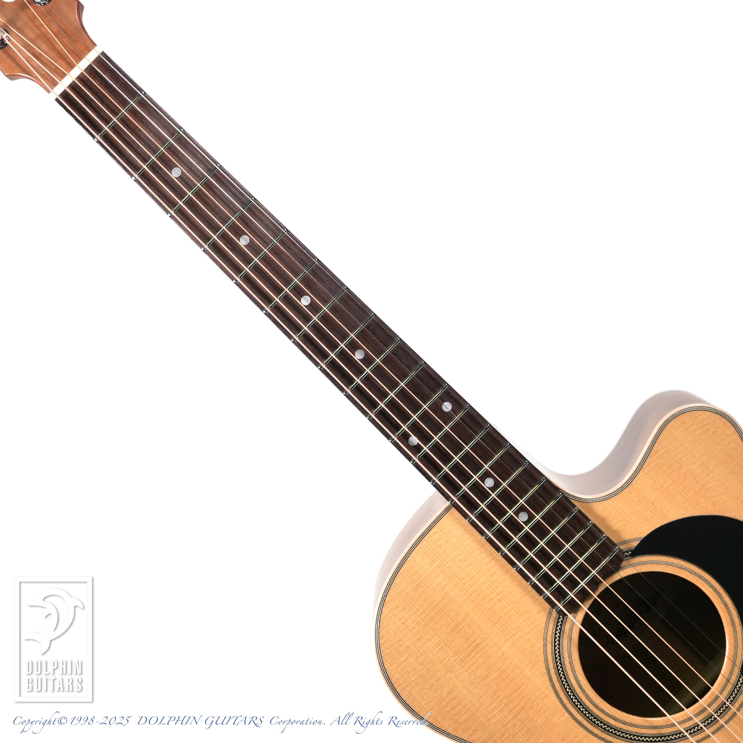 メイトンを代表するEBG808のボディは000と00サイズの中間でありながら、ディープボディ仕様となっており、抱え易い小柄なサイズでありながらも、豊かなベース音を生み出す設計となっております。トップ材はAAグレード、ブレイシングはスキャロップドXでメイトンのオリジナルパターンです。