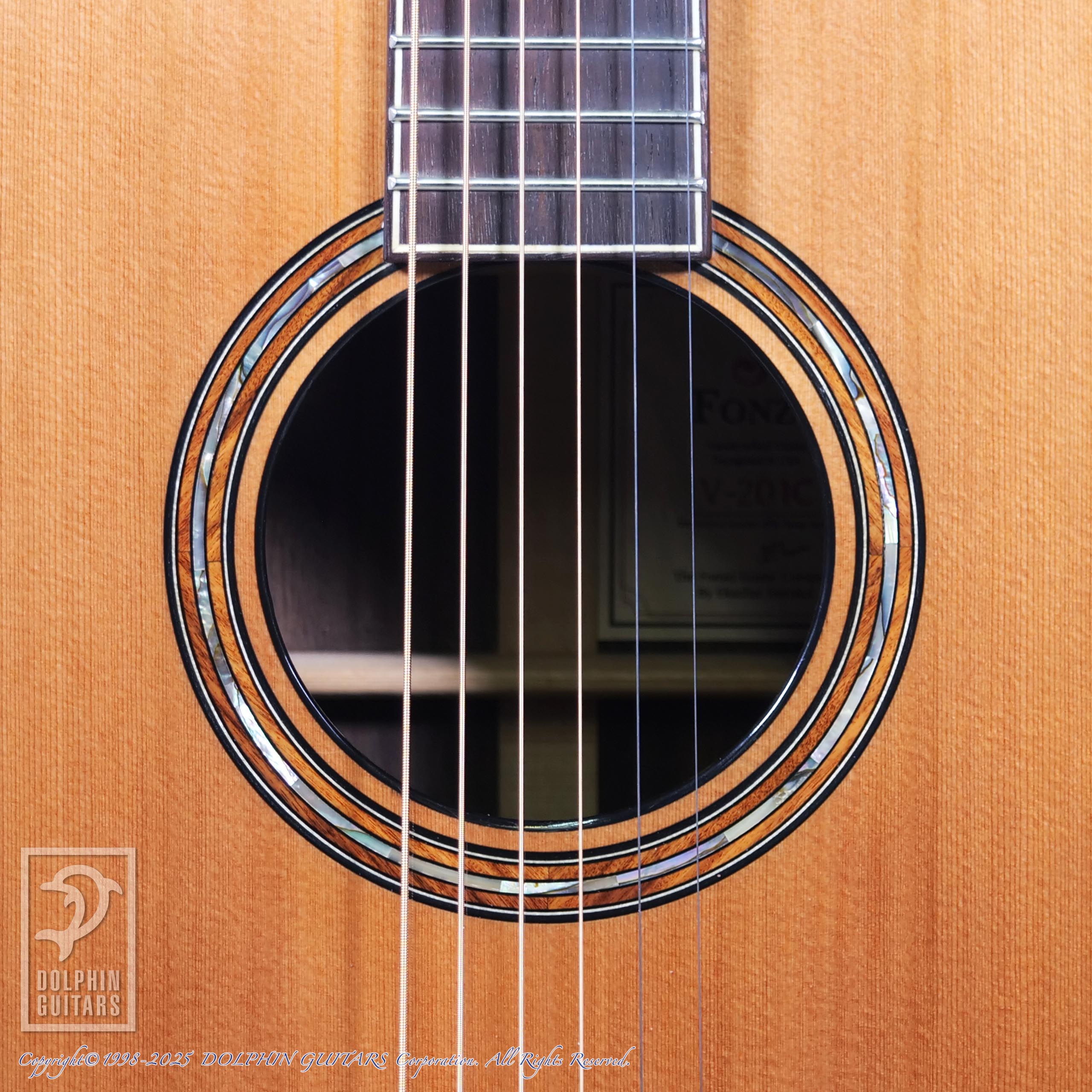 ヘッドから指板にかけて施されたインレイやサントスローズ&アバロン・ロゼッタは、どこかタイらしさを感じるデザインに仕上がっており、フォンゾギターのセンスを感じさせます。