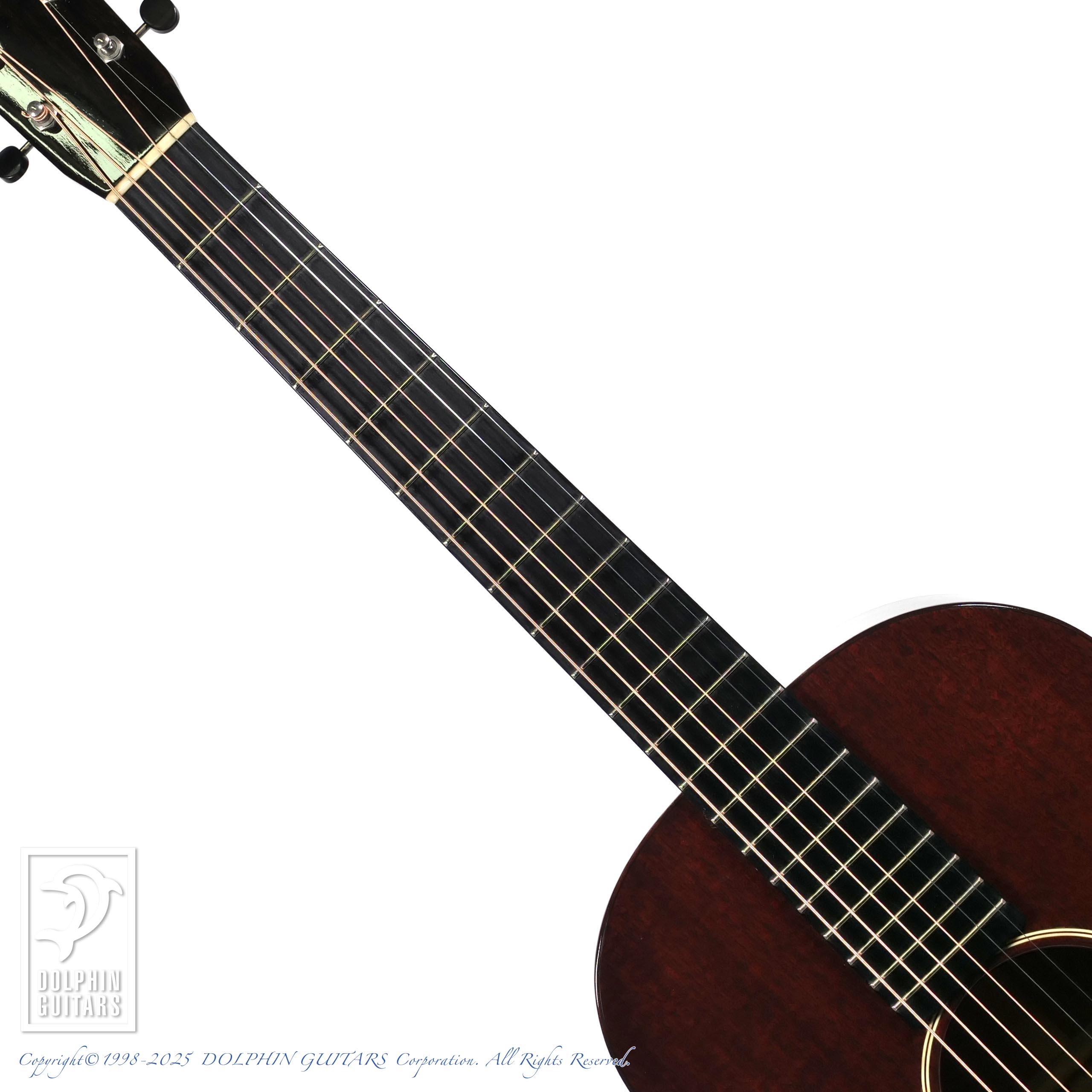 ヴィンテージギターのオールマホに良く抱かれるブルージーなイメージとは少し違った、甘く上品なサウンドです。穏やかに自己主張する上質で暖かみのあるマホガニーサウンドは、時間を忘れて弾き込んでしまう事でしょう。12Fジョイントによる豊かな響きは、ボディのサイズ感を忘れさせてくれるほどダイナミックに響きます。