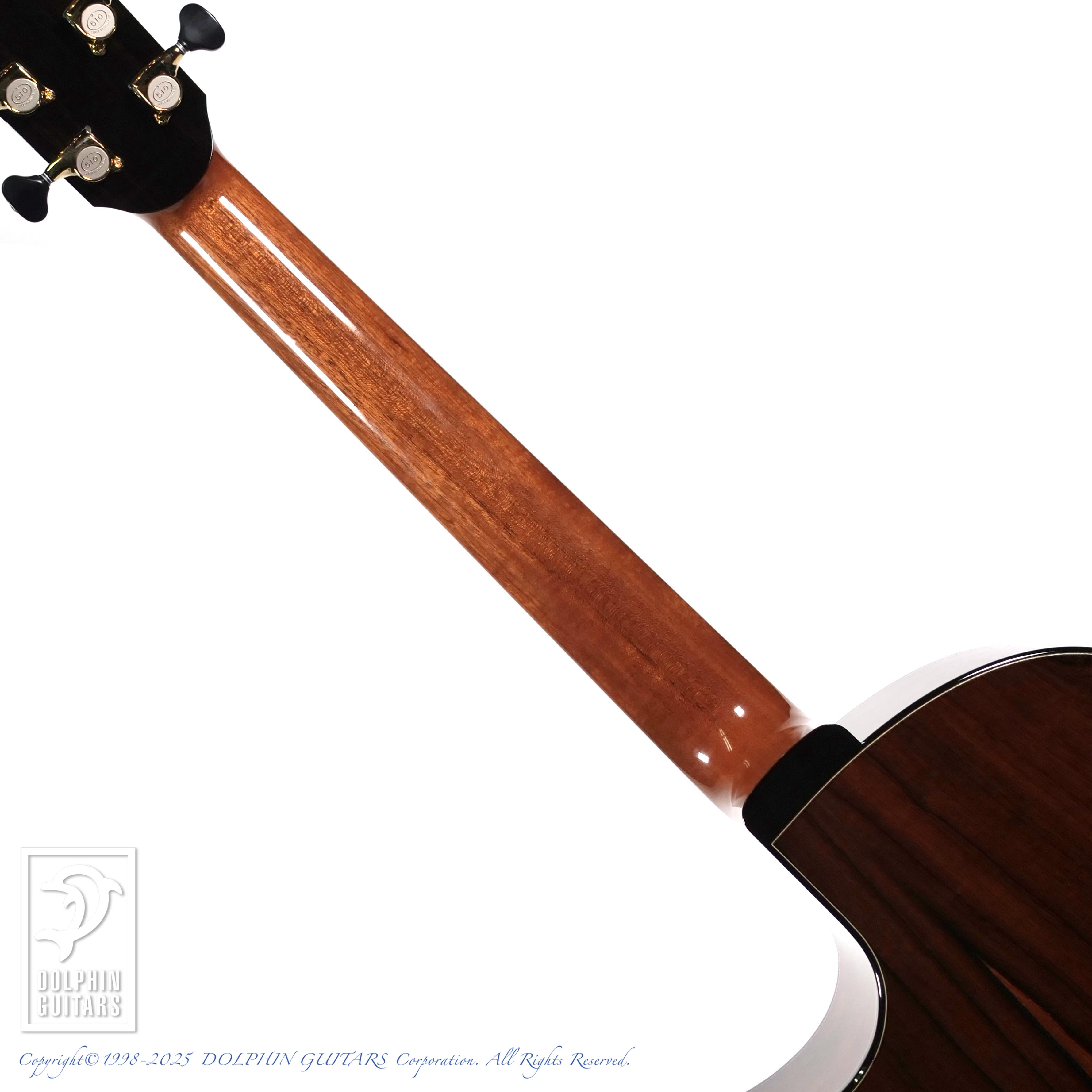 サイドバックに使われるマダガスカル産出のローズウッドは、マダガスカル政府により、ここ10年で規制と緩和を繰り返し、現在は一層厳しく規制されている希少材。名木ハカランダに似た低域の迫力とレスポンスを持つ優れたトーンウッドです。