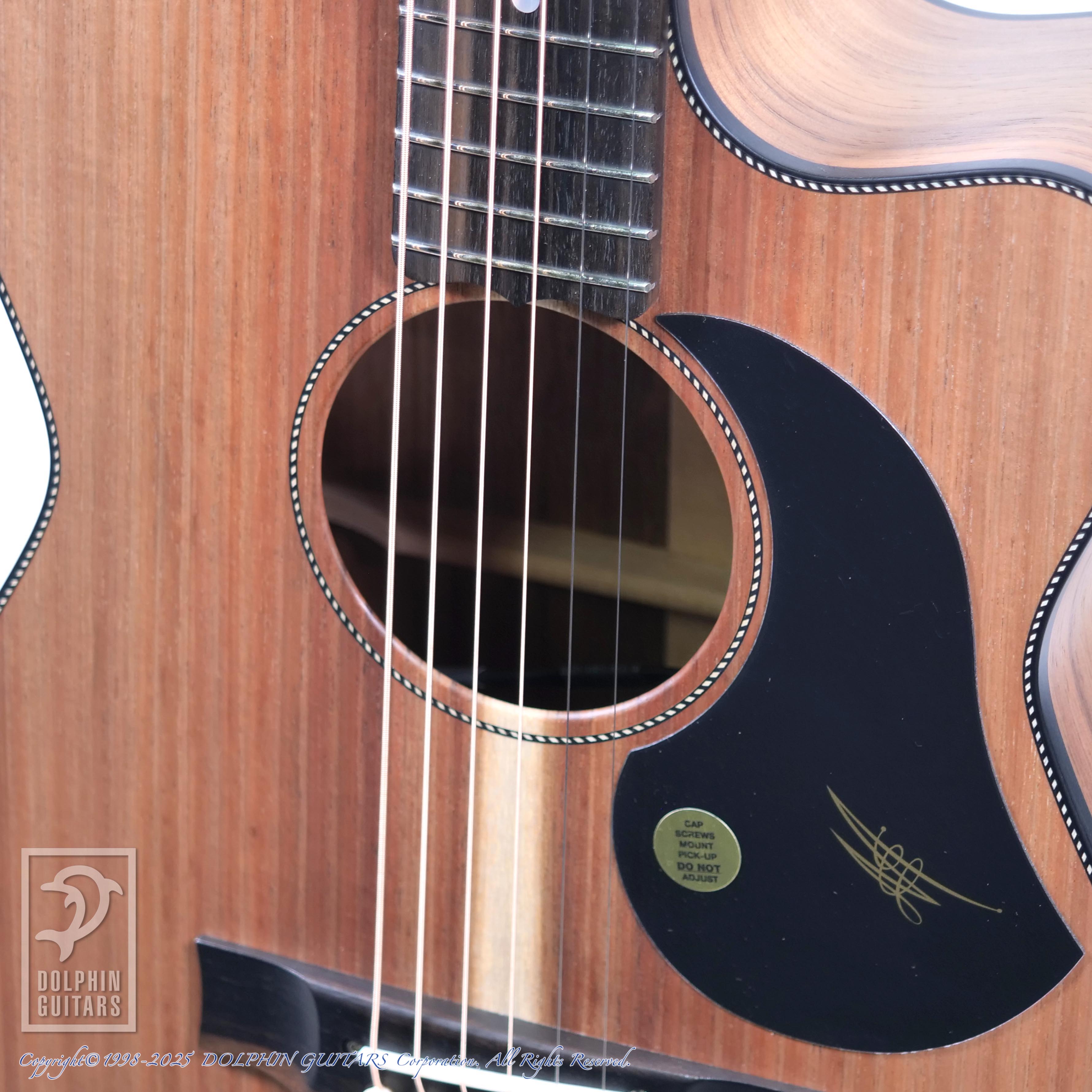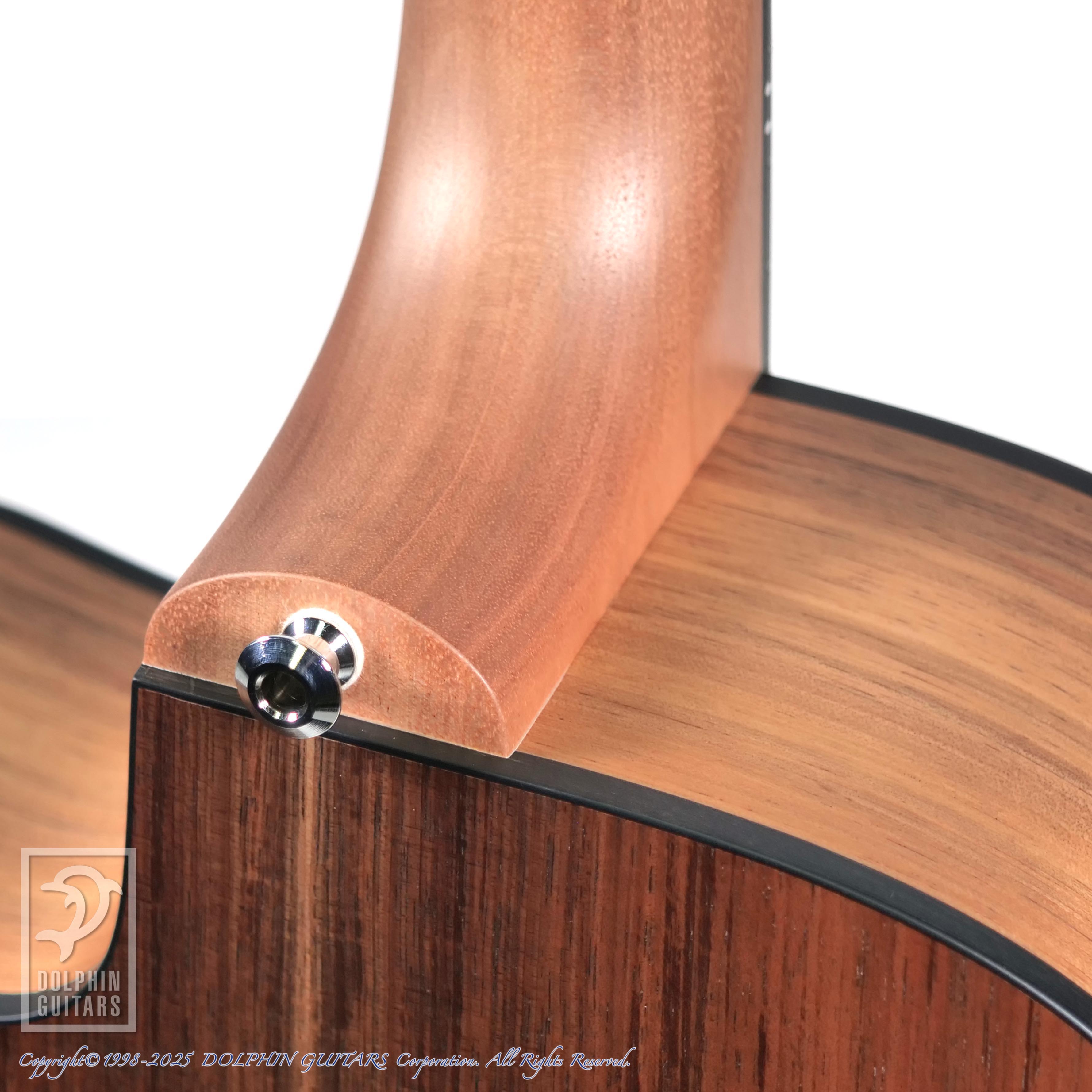 オーストラリアンブラックウッドはアカシア属の植物であり、ハワイアンアンコアも同じアカシア属。木目や色合いも非常に似ており、明るくハリのあるサウンドのコアに比べ、ブラックウッドはローミッドが強調され、ややダークな印象で、他のスプルーストップのモデルとはハッキリと異なるサウンドキャラクターです。