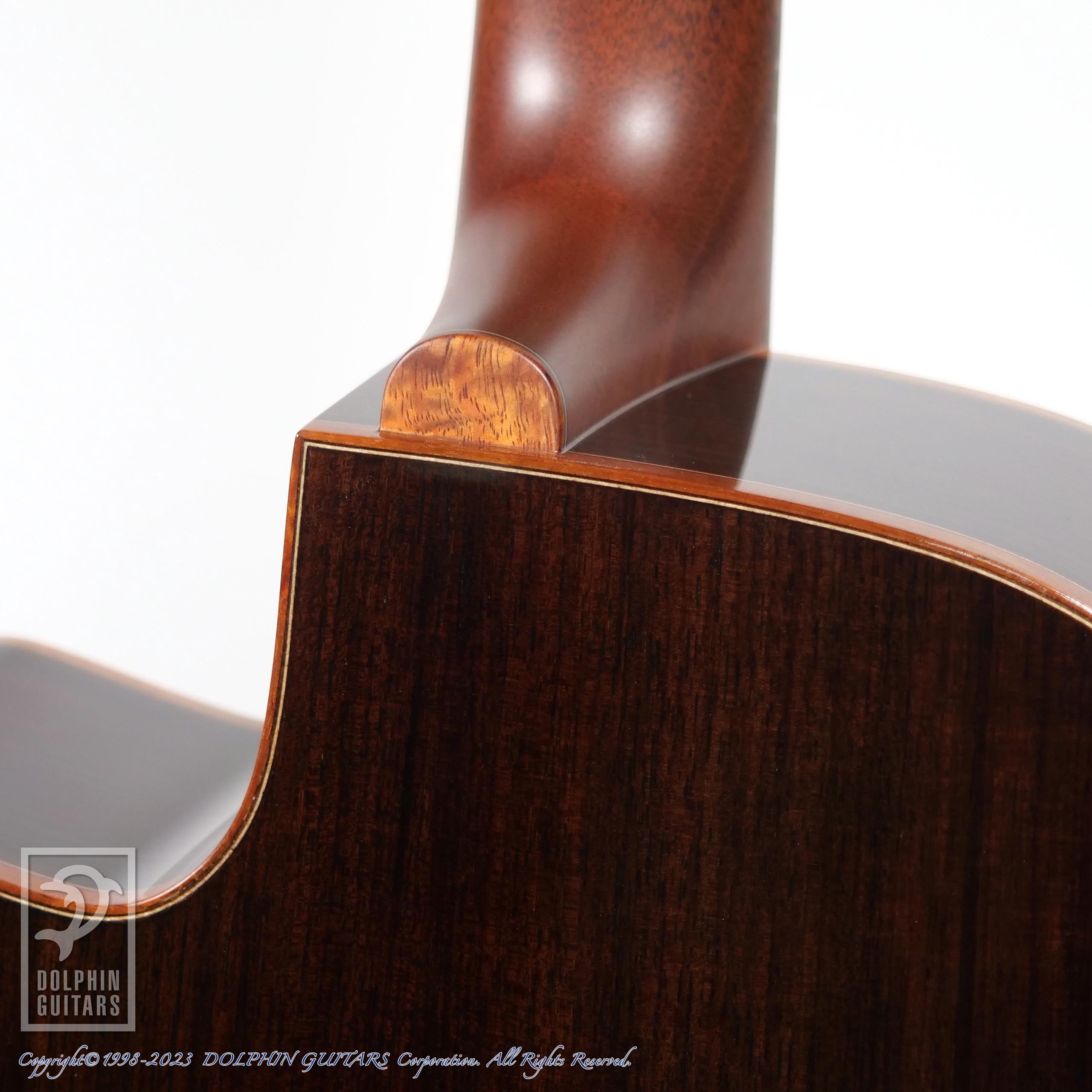 日々進化するルシアーメイドシリーズは、その時のベストが尽くされ様々なアイデアが盛り込まれます。今回完成したS-131は、レギュラーのSシェイプよりもジョイント部で約5mm、エンド部で10mm以上薄胴になっており、ラウンドバック+シンボディにより、弾力、深みがありながらも非常に反応速度が早いサウンドメイクとなっております。フィンガースタイルに特化したモデルだけあって、繊細なタッチでも気持ち良く反応してくれると演奏も随分と楽になります。