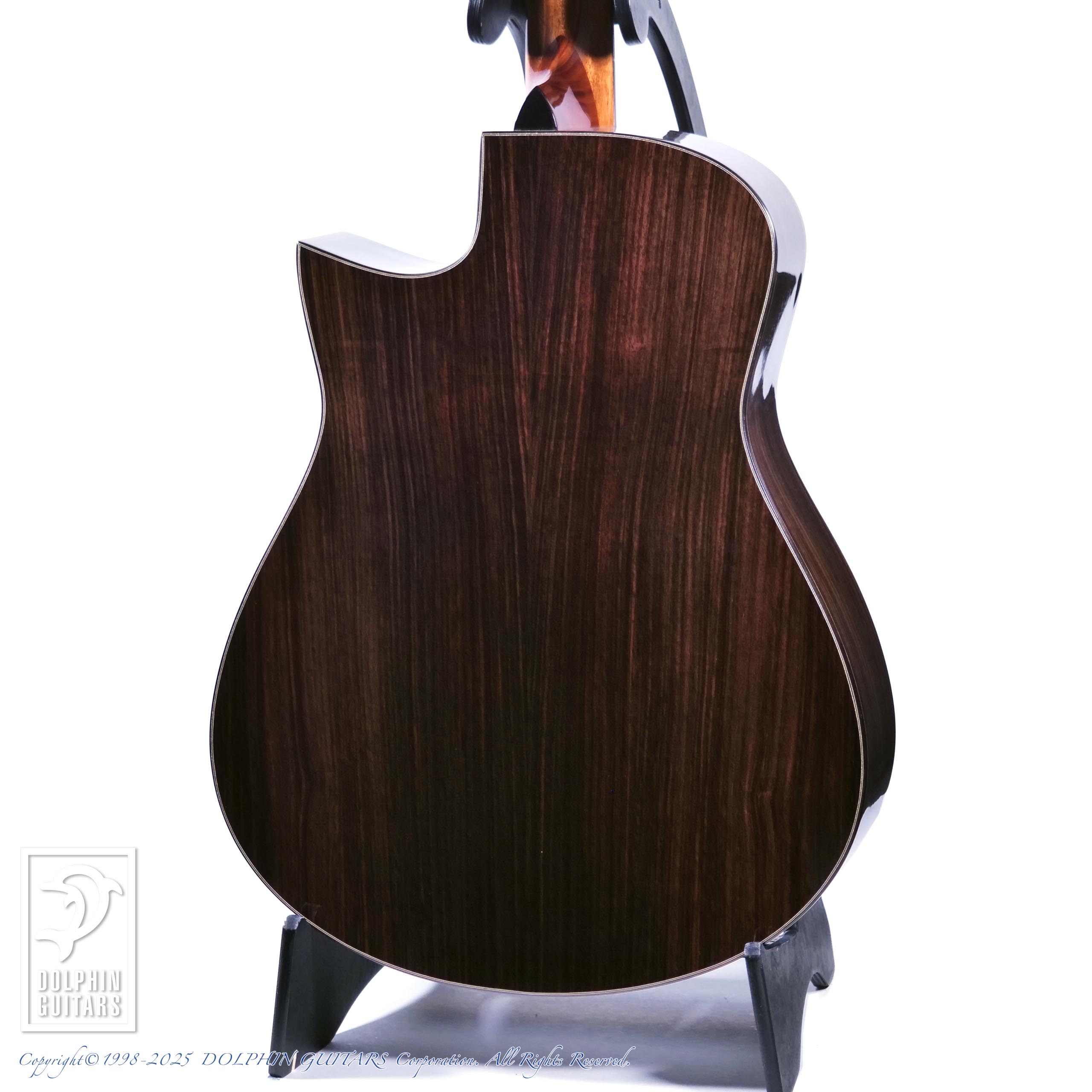 ボディシェイプはオリジナルドレッドノート+フローレンタインカッタウェイ。厳選された素材で組まれたボディは低音〜高音までバランスよくまとまり、押尾さんのストロークプレイにも完璧に応えてくれます。