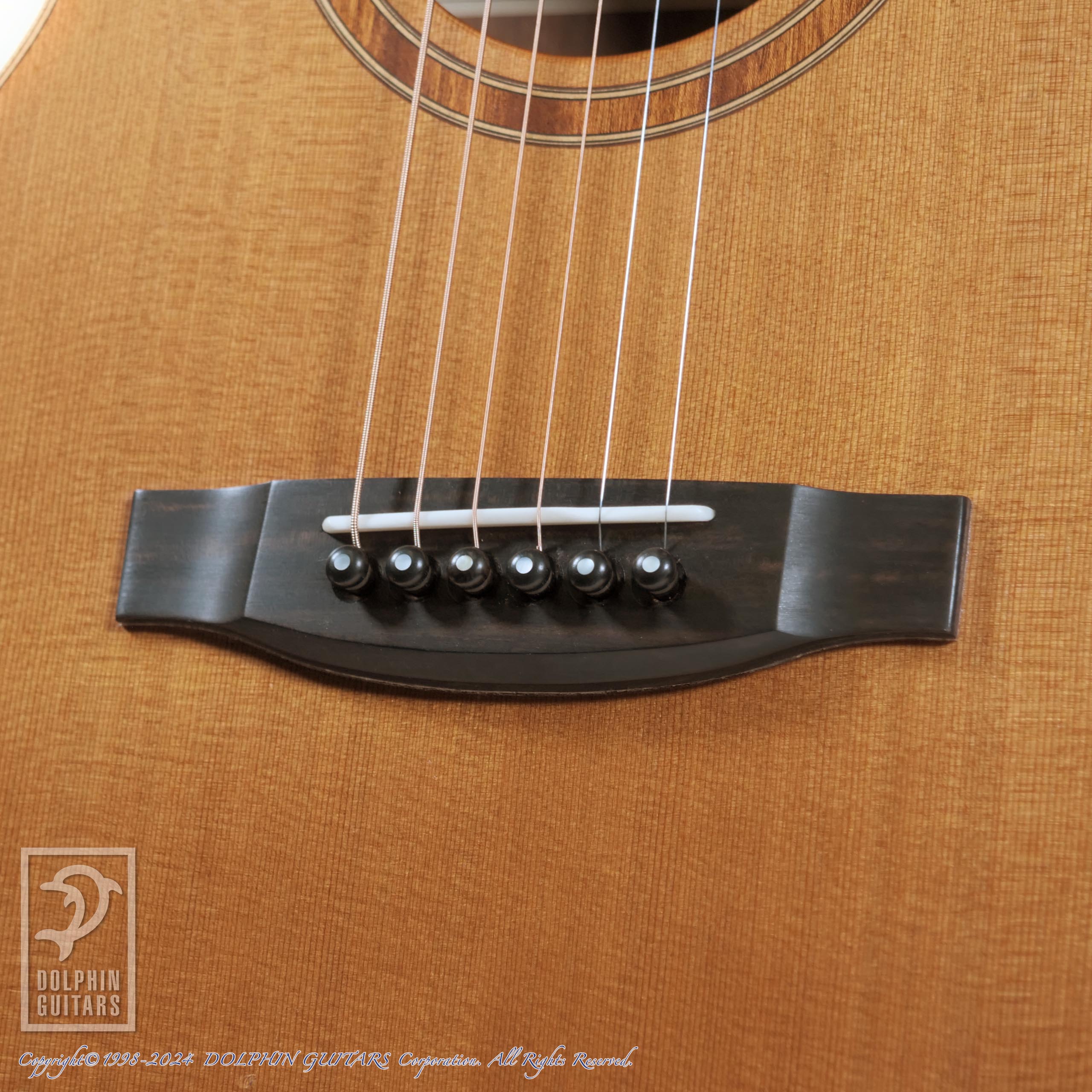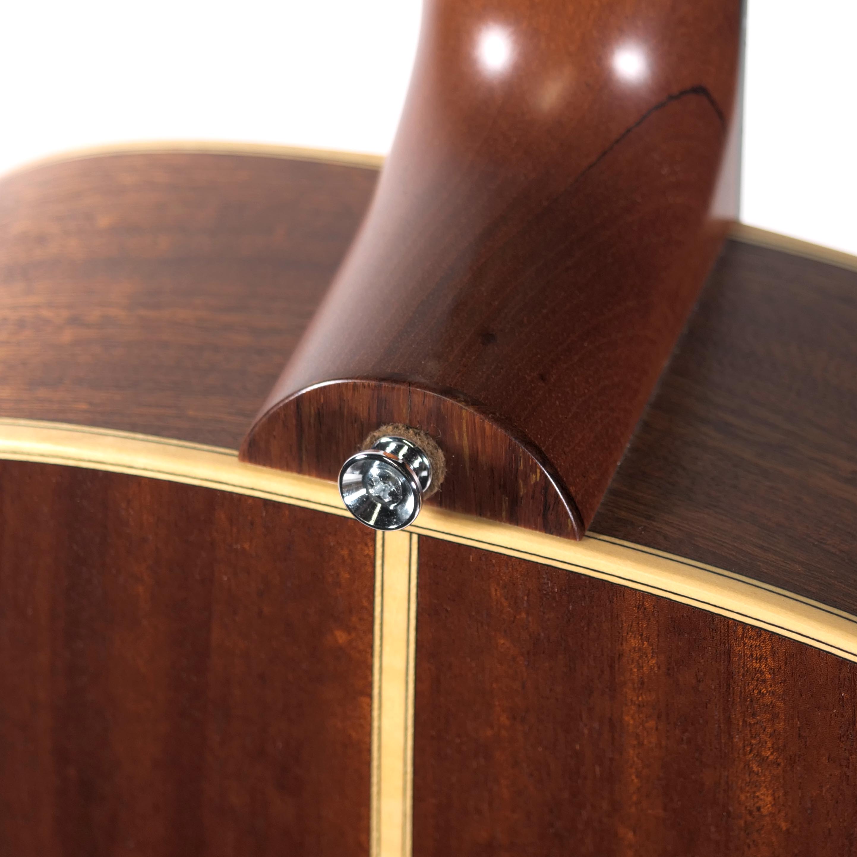 幅広で厚みのある丸いネックは抜群の安定感で、ボディはいわゆるオーディトリアムボディをややディープにしたサイズ感です。650mmのロングスケールにこの幅広ネックはフィンガーピッキングでゆったりと弾いてくださいというメーカーのコンセプトが感じ取れます。