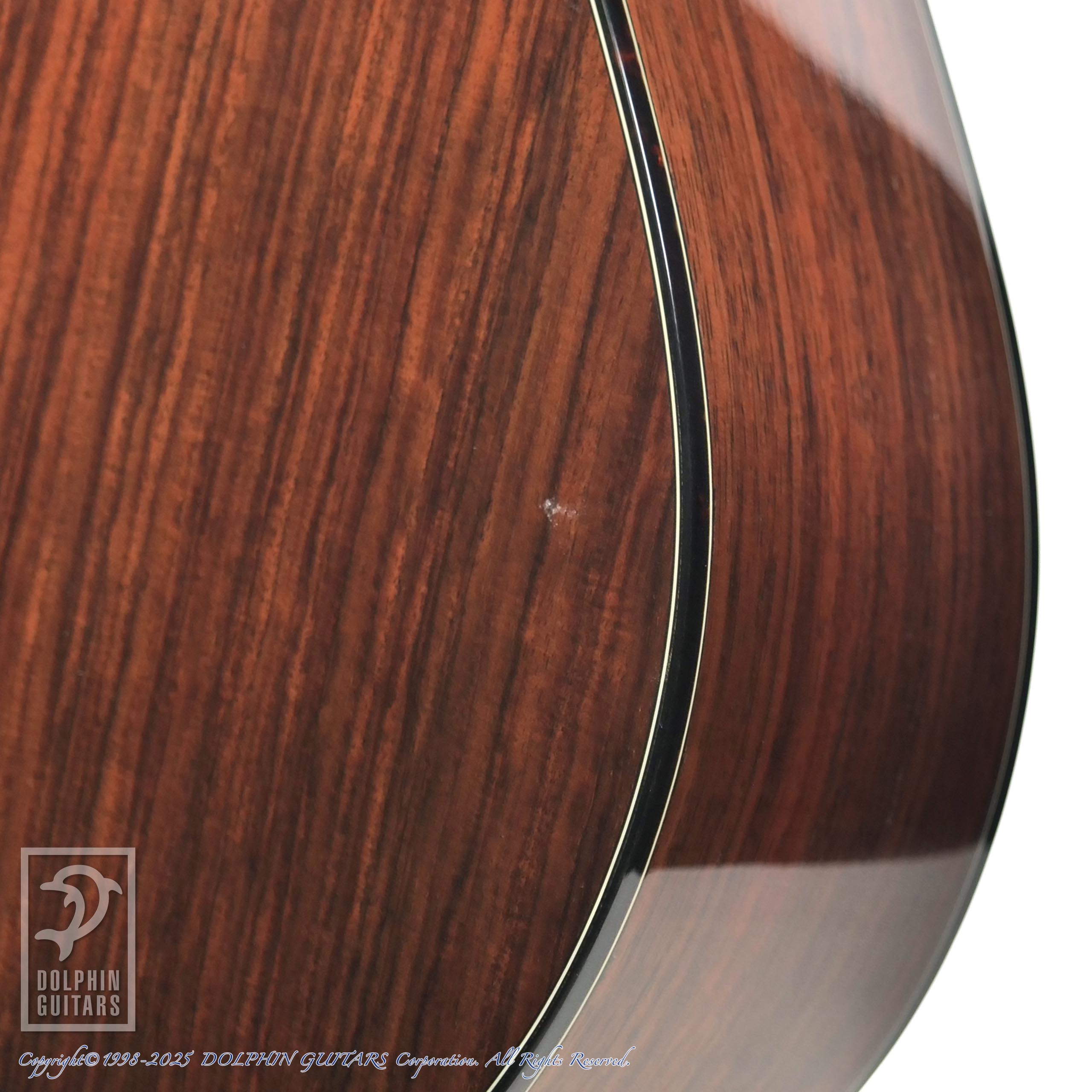 オリジナル・ボディーARを基本に、バインディングをセル仕様に、指板&駒がローズウッド、ネック材にはアフリカン・マホガニーの2P、トップのホワイト・スプルースのグレードは変更せず、サイド&バックのローズウッドはレギュラー・グレードを用いています。
