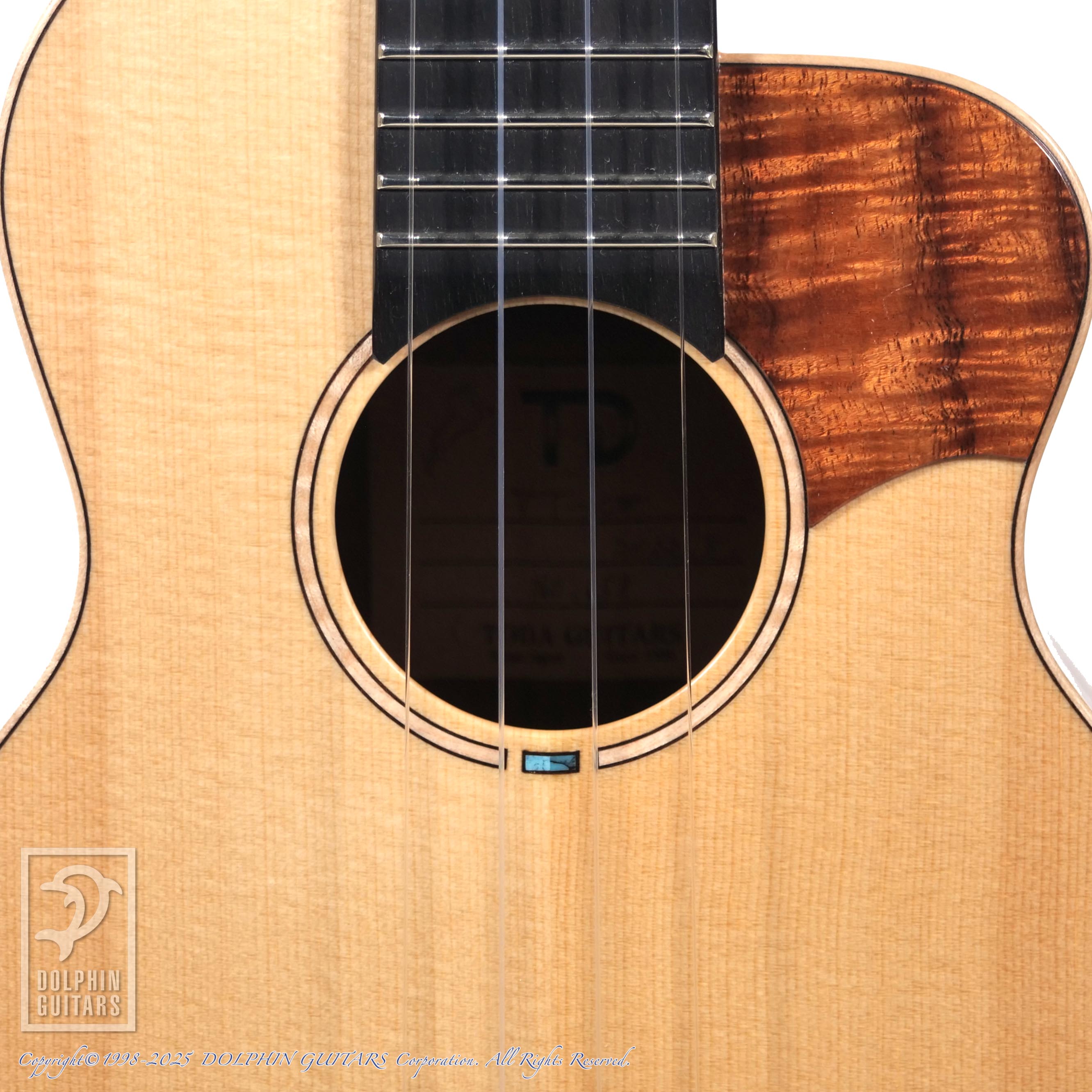 人気の戸田ウクレレ、ジャーマンスプルース&ハワイアンコア仕様のテナーカッタウェイ