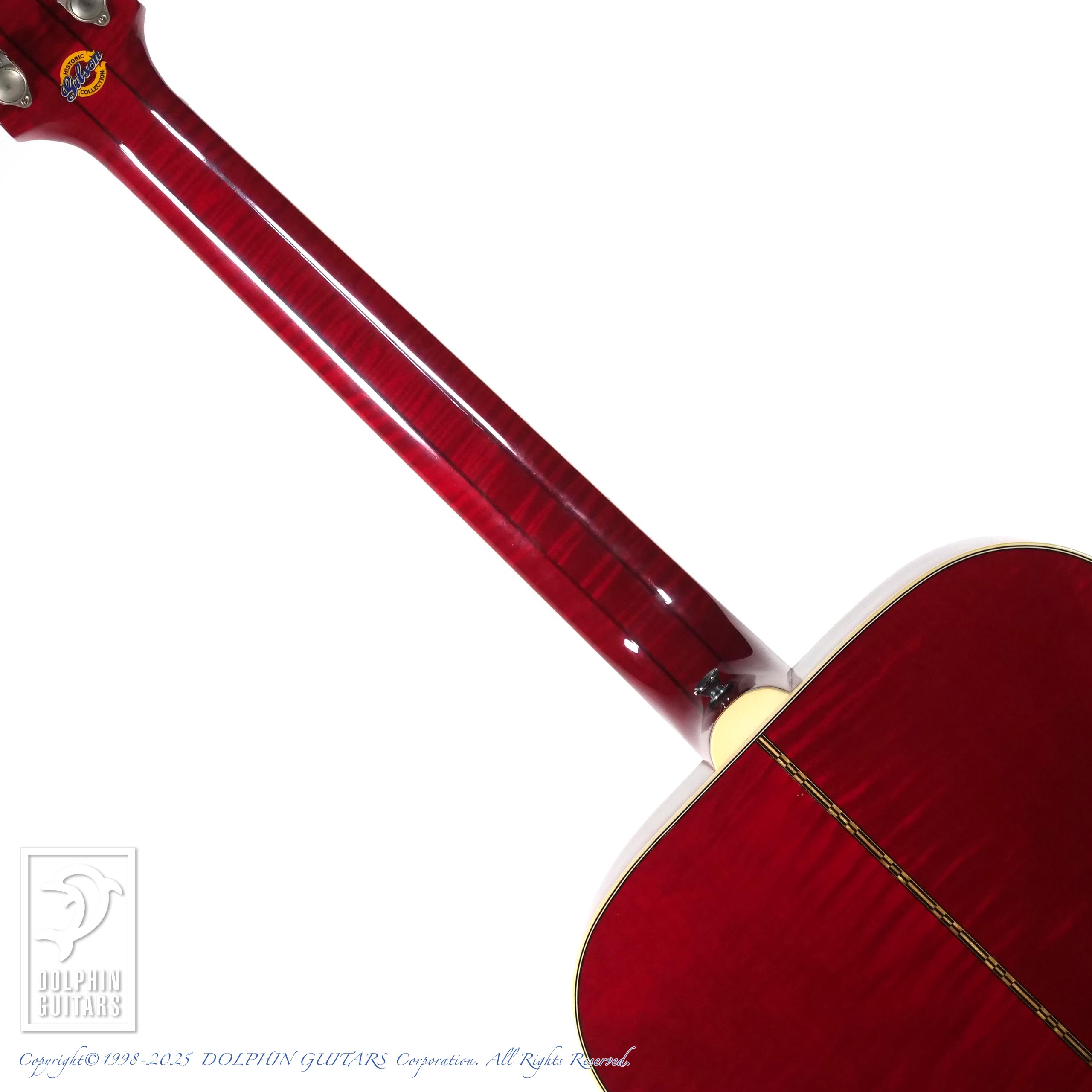 鮮やかなチェリー・サンバースト・フィニッシュに、ピックガードのダブ(鳩)モチーフが印象的なモデル。スクエアショルダーの力強いシルエットに、マザー・オブ・パールのダブ・インレイを施したブリッジと指板のダブル・パラレログラム・インレイが華を添えます。高級感と存在感を兼ね備えた、ギブソンらしい気品漂うデザインです。