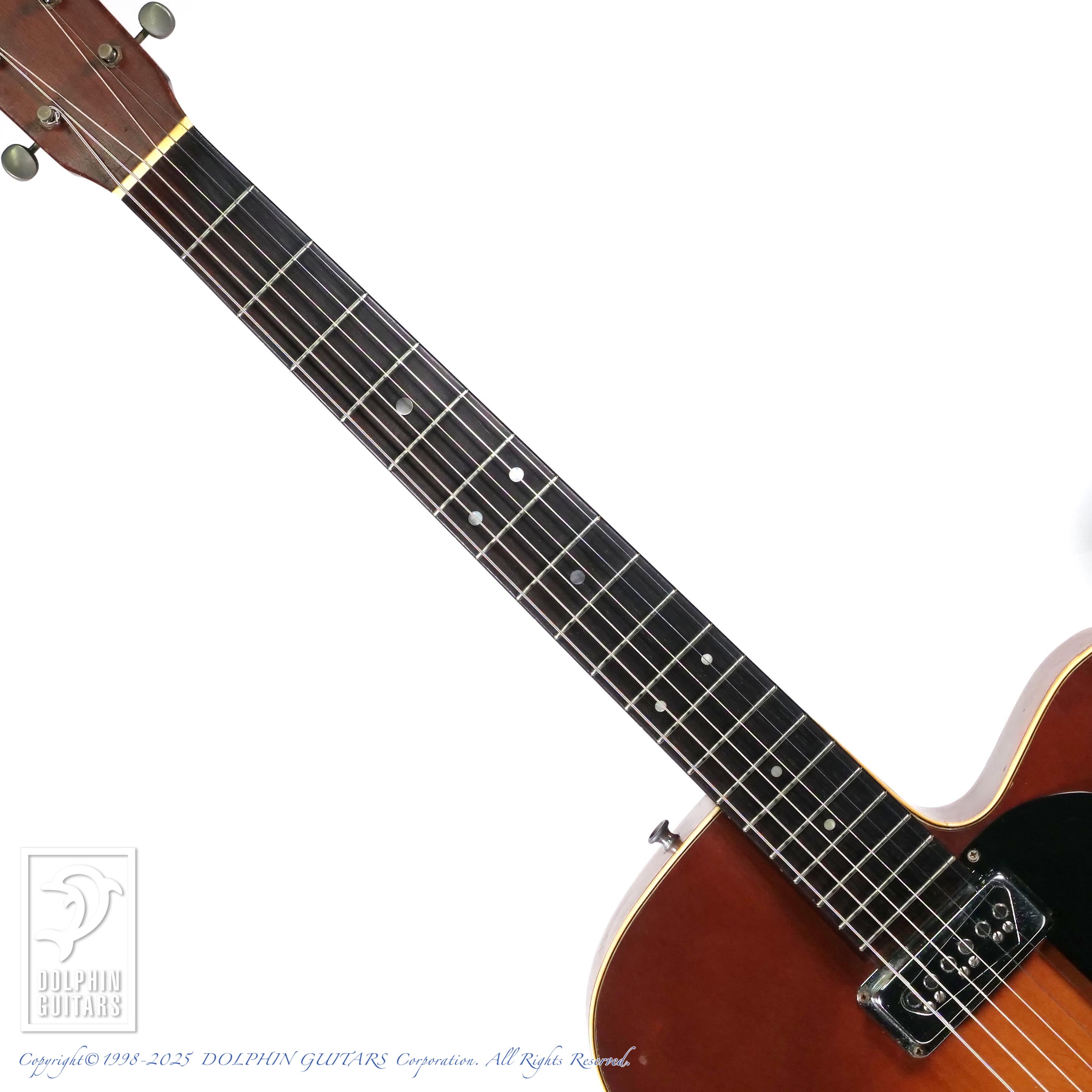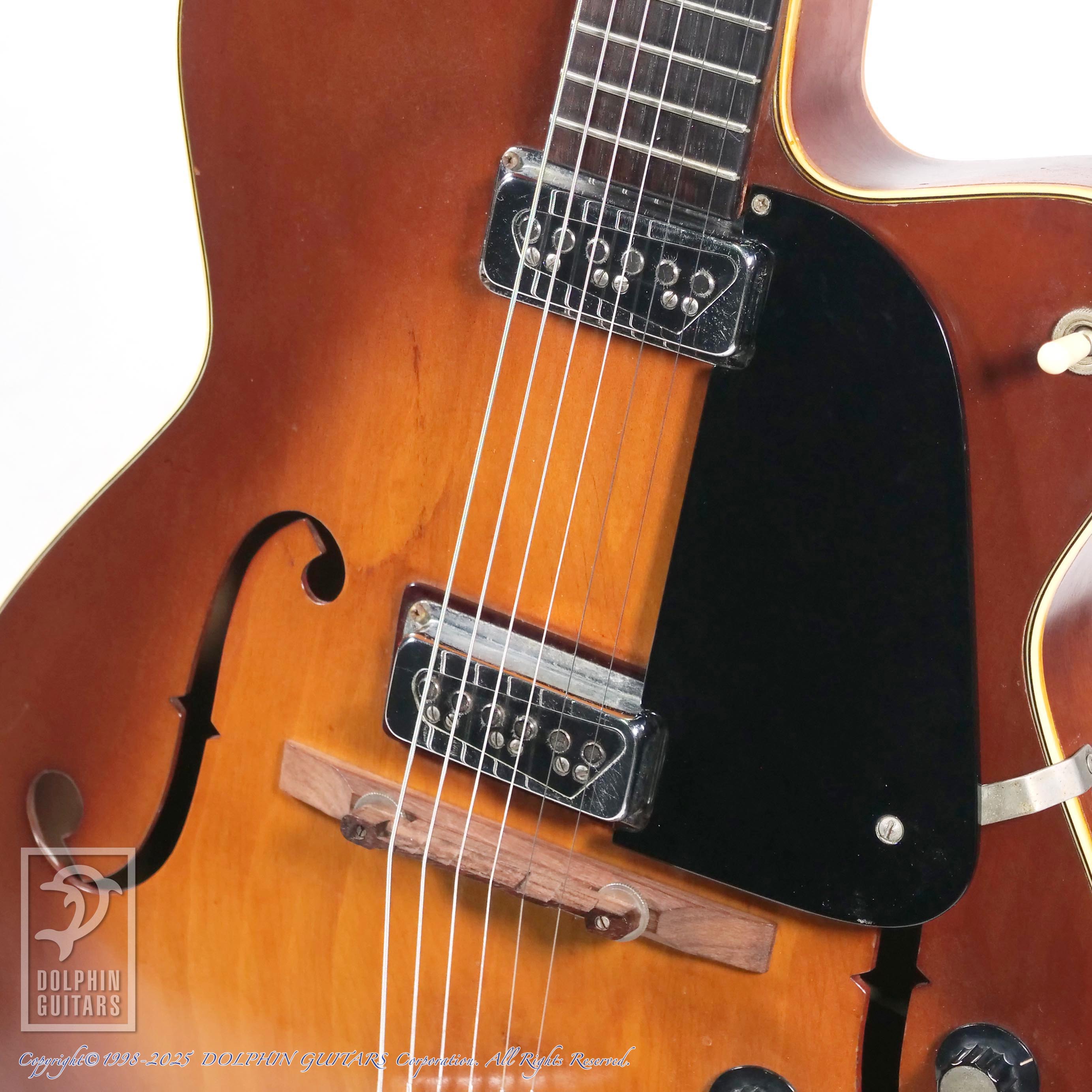 本器はそのわずかな期間に製作された、シングル・カッタウェイ、デュアルモンド・ピックアップx2搭載、初年度1961年製のF-55のヴィンテージ。