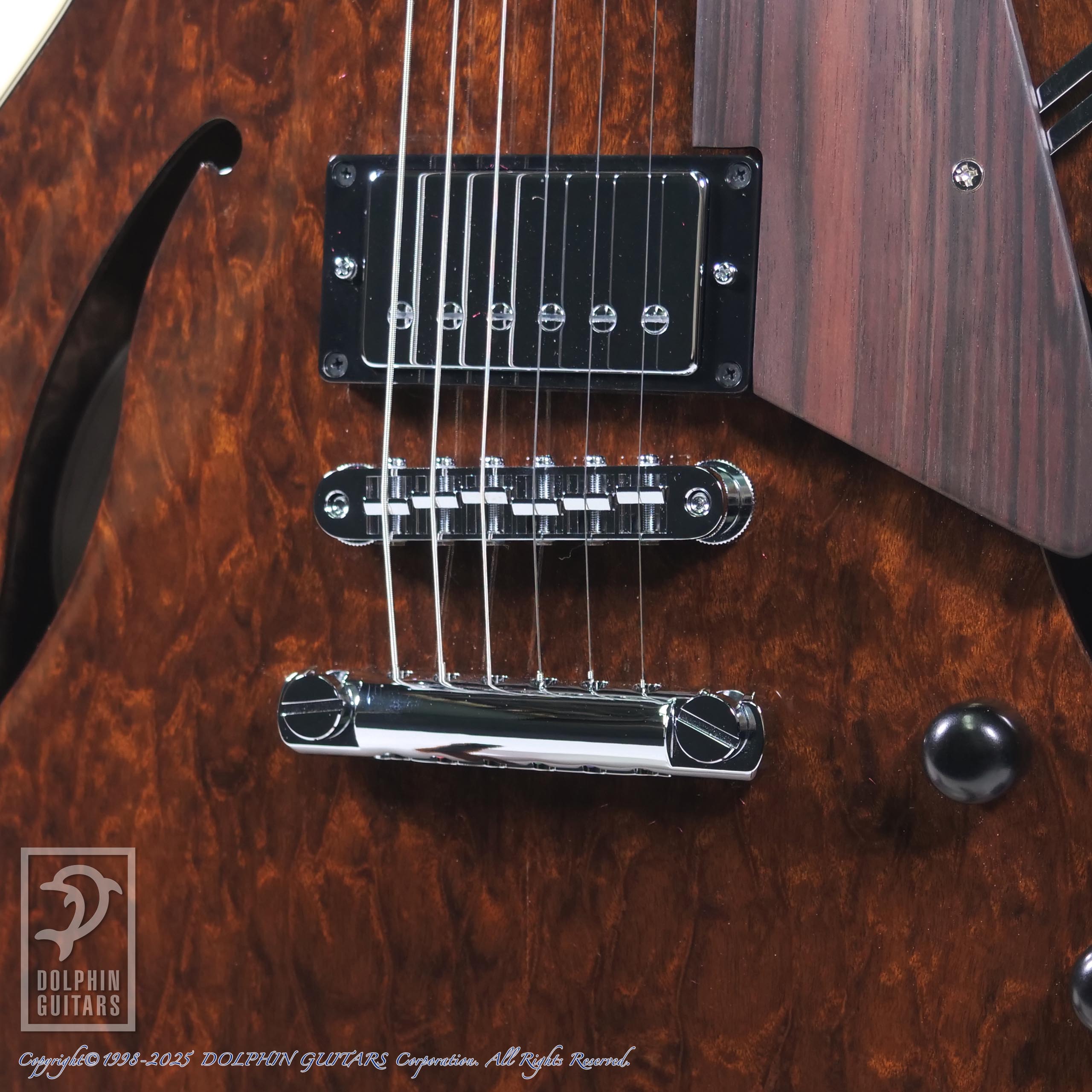 金属製サドルとテールピースが組み合わされることで、甘いジャズトーンから刺激的に歪ませたトーンまで自在に操ることが可能です。