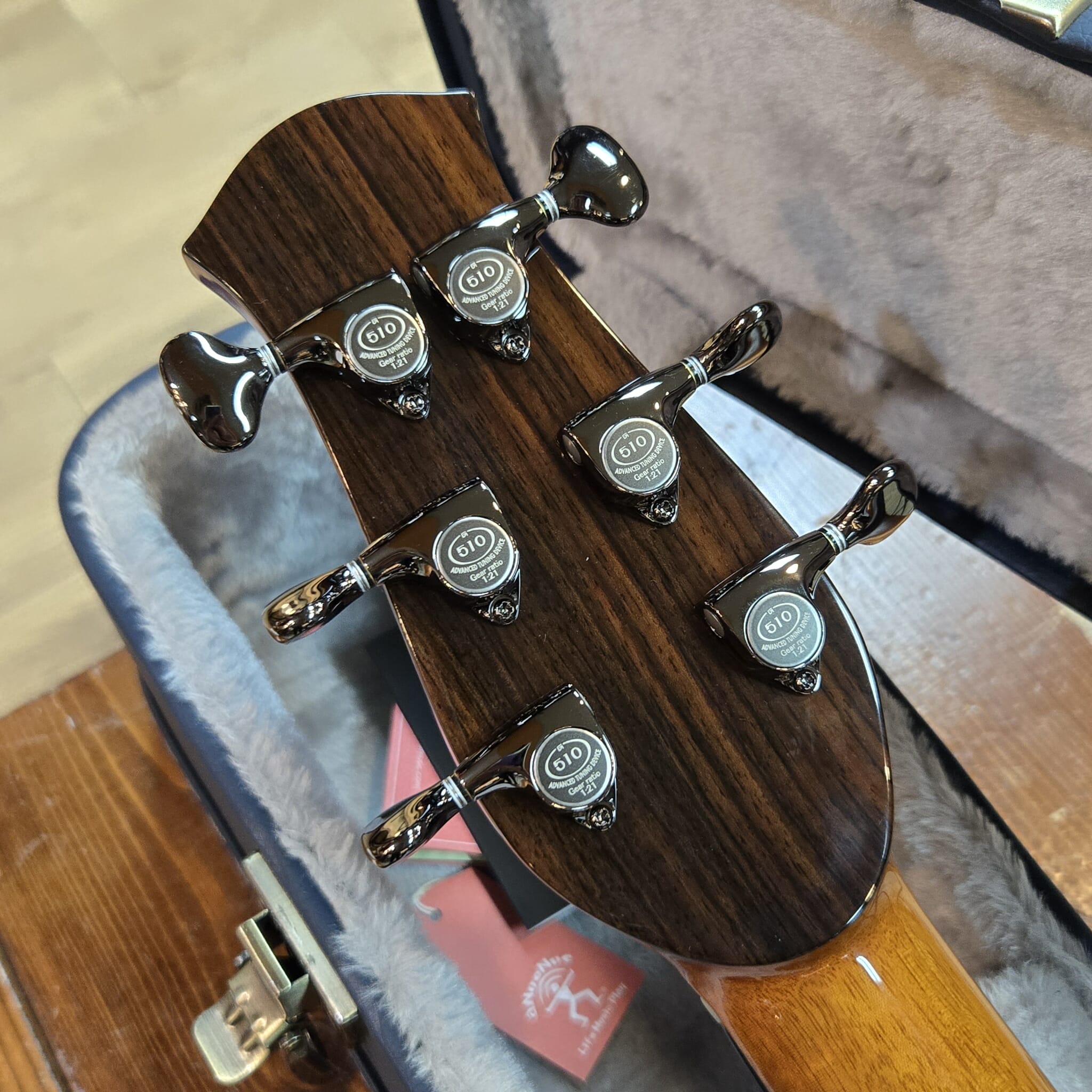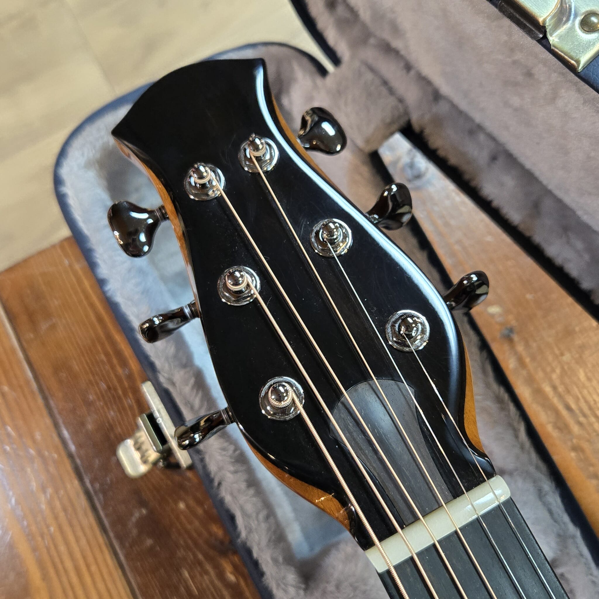 トップ材にはムーンスプルースを、ネックにはマホガニーの中でも質量の大きいサウスアフリカンマホガニーを採用するなど、本モデルにおいても杉田健司氏の意匠が感じられます。