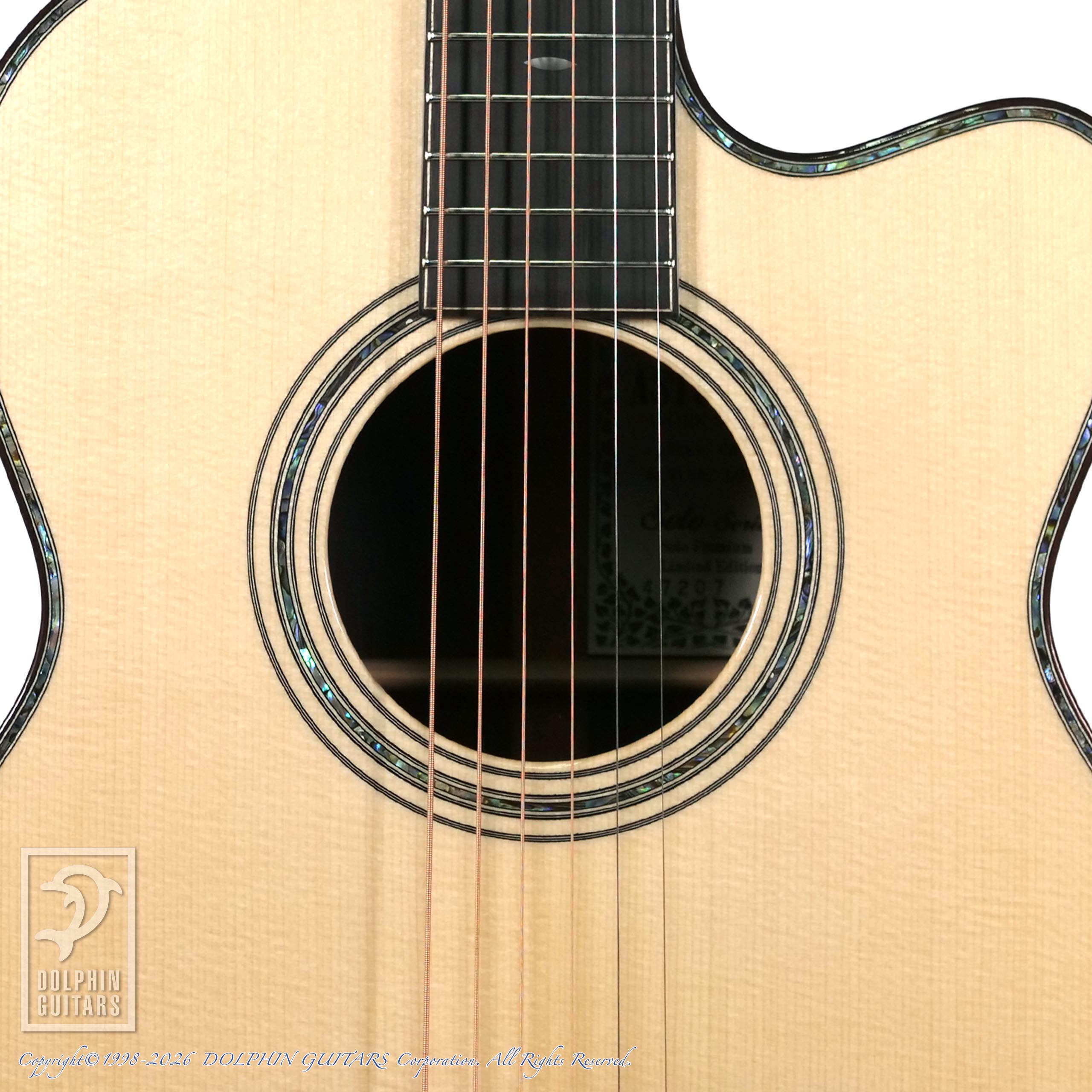 その他:43mmナット幅、632.5mmスケール、スキャロップドXブレイス、ヴェネチアンカッタウェイ、アバロントリム、ローズバインディング、アバロンロゼッタ、ラッカーグロスフィニッシュ