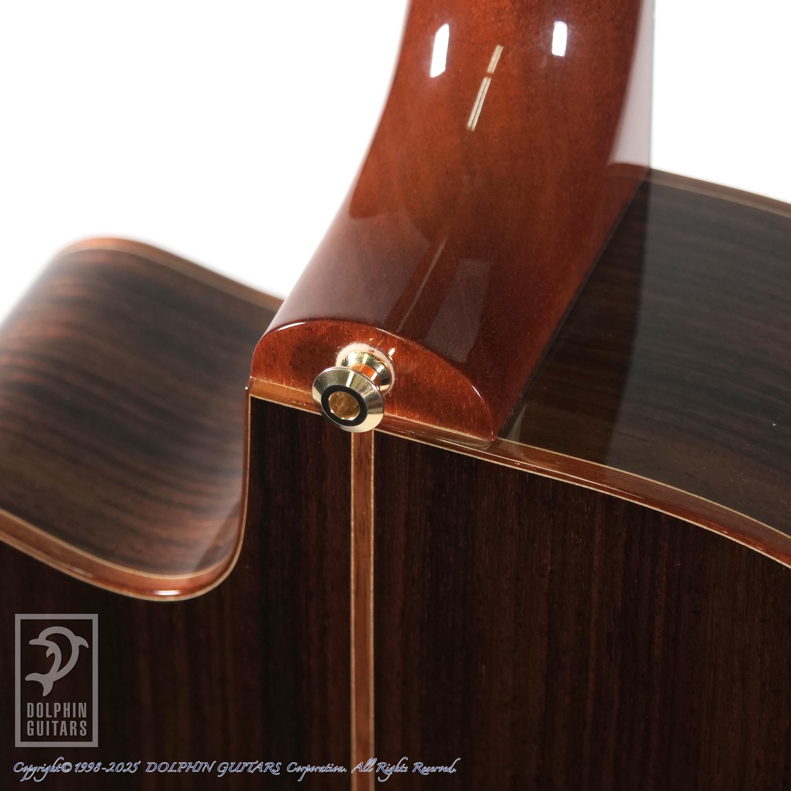 驚異的な薄さで美しい光沢を作るメイトンのグロスフィニッシュ。フラッグシップにふさわしい質感です。ボディバインディングはオーストラリアンブラックウッド材を使用、一般的な樹脂系のバインディングよりひと手間もふた手間もかけており、その他ヘリンボーントリムやグロスフィニッシュと組み合わせることによりこのような高級感溢れるルックスとなります。