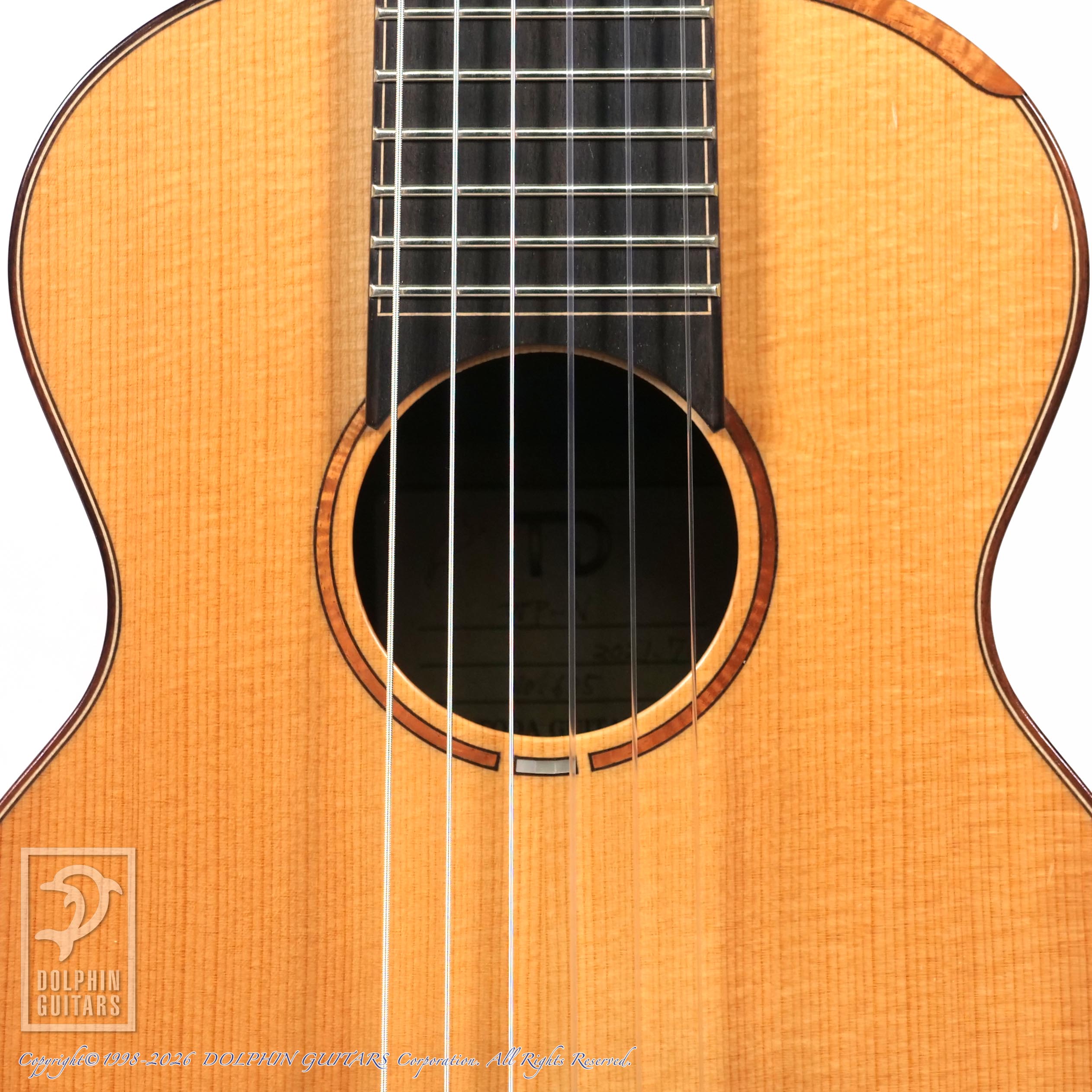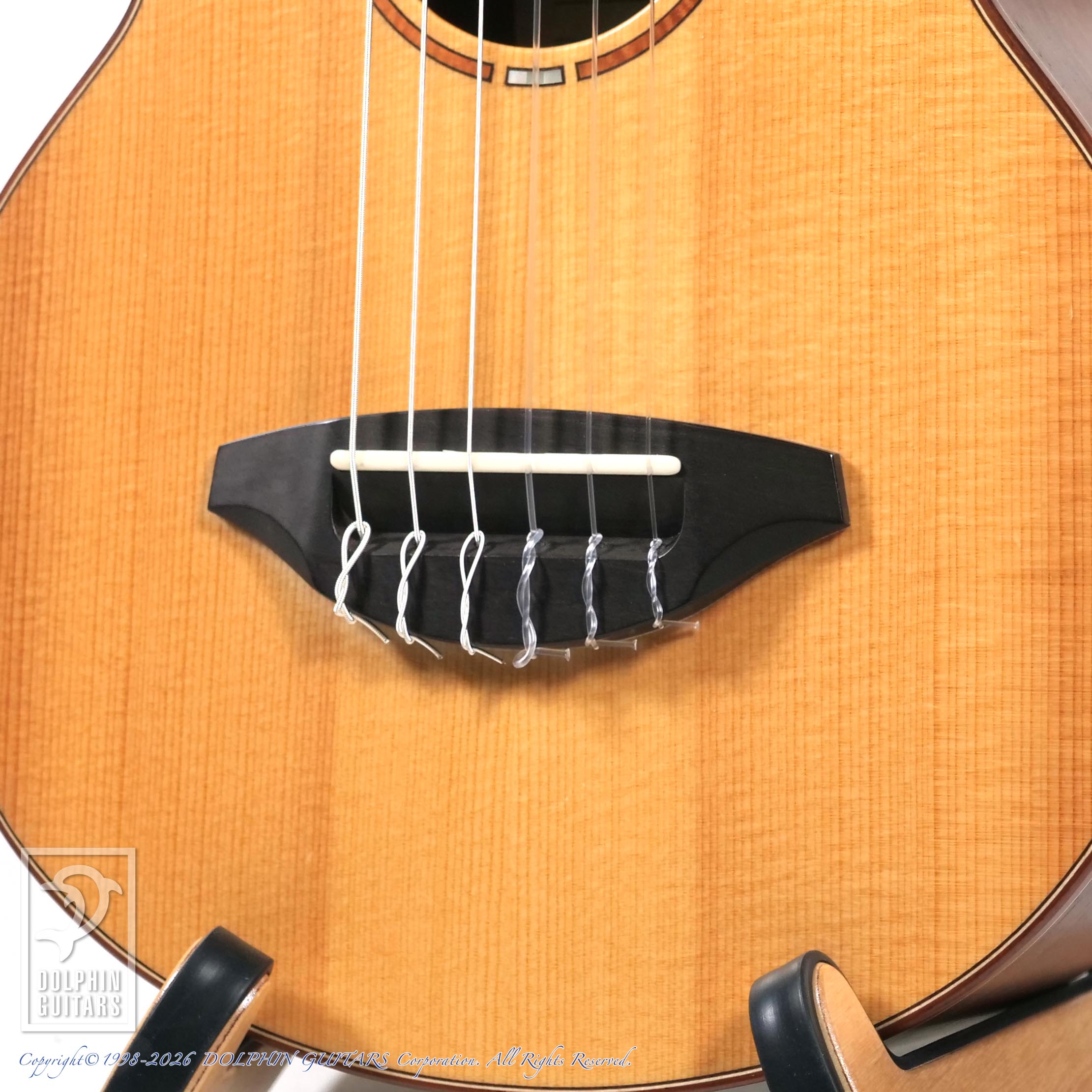 しっかりと太い芯を感じる上質なナイロン弦の響きをこのサイズのギターで叶える設計は流石の一言。本人は感覚的に作っているとのことですが、その完璧までな設計を自然に創り出してしまうところが天才的たる所以です。