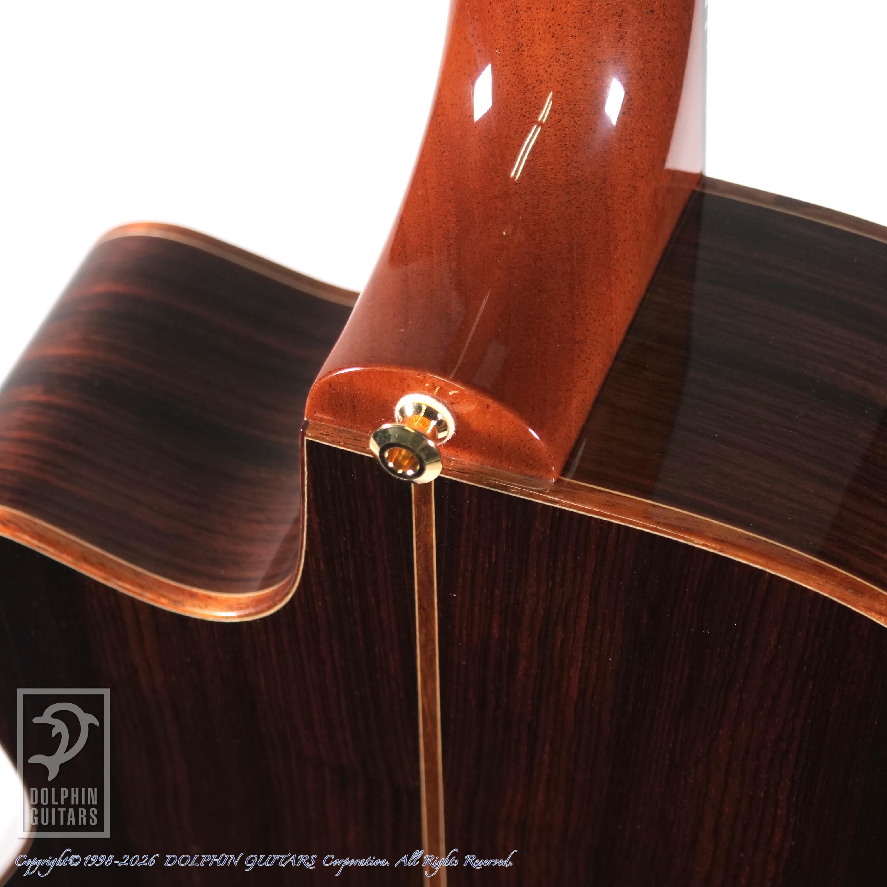 ボディ幅は000と00サイズの中間でありながら、ディープボディである為、抱え易い小柄でありながらも豊かなベース音を生み出し、極限まで高められたセットアップ、ローポジションからハイ・ポジションまで、指板に吸い付く様な弾き心地がテクニカルなプレイをサポートします。