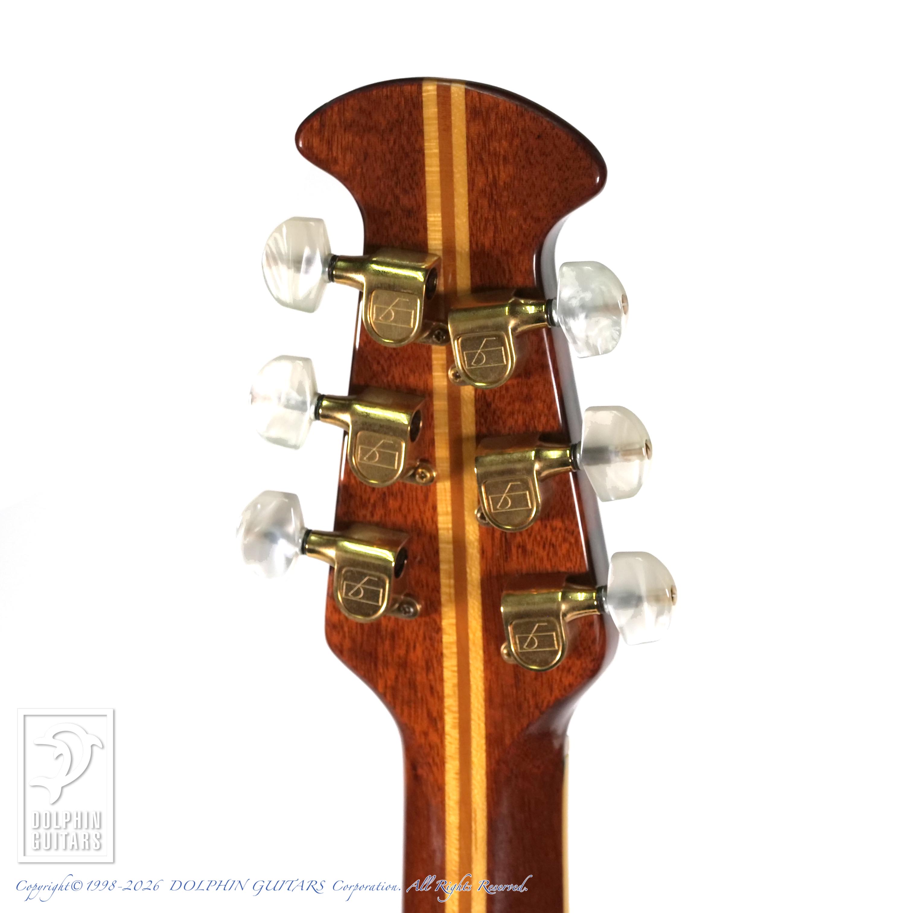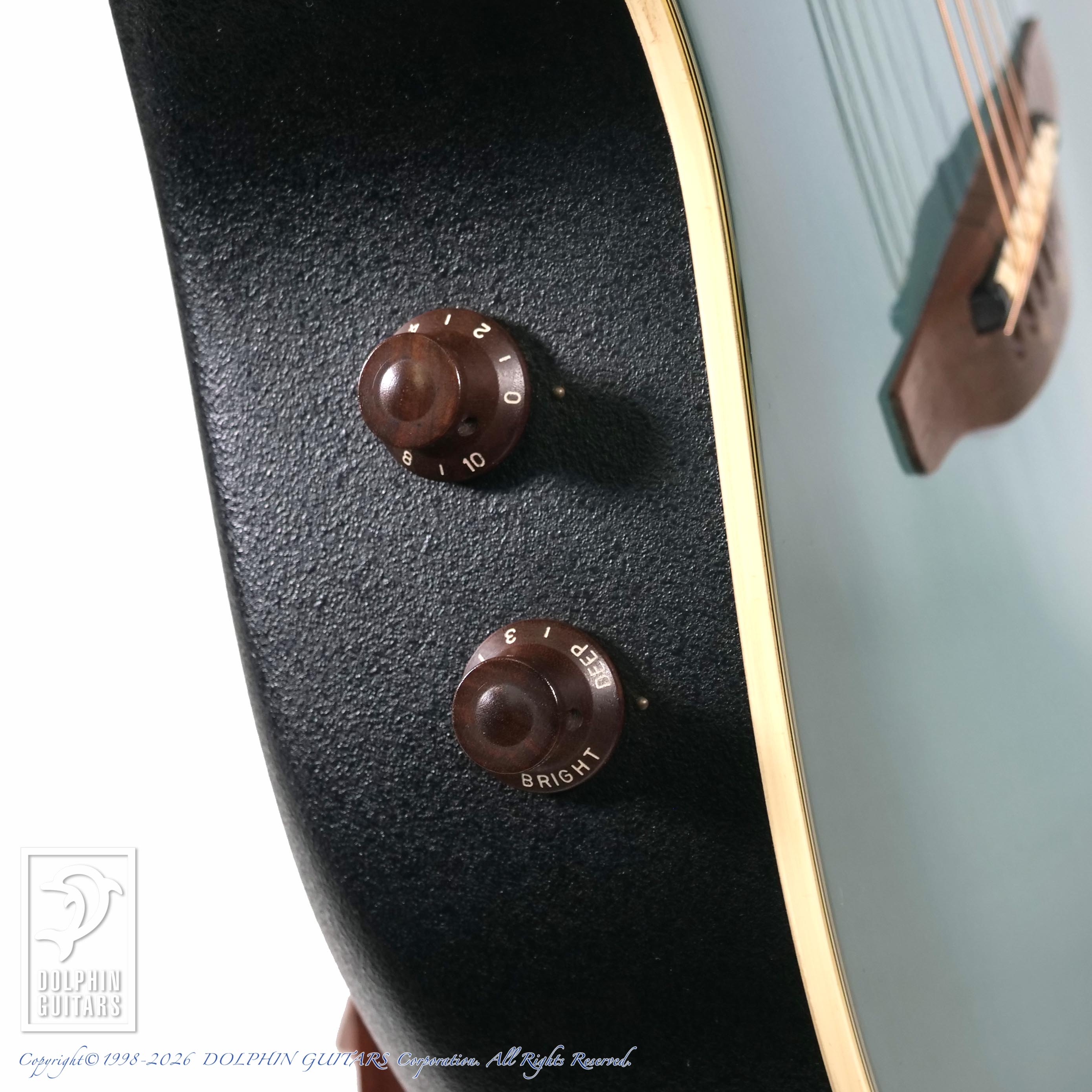 淡くくすんだブルーはなんとも言えない哀愁を感じる独特のカラーリング。マッチングヘッドやカスタムパールロゼッタなど、随所に拘りが見られる流石のコレクターシリーズ。ディーブボディからは、太く弾力のある直球オベーションサウンドが放たれます。