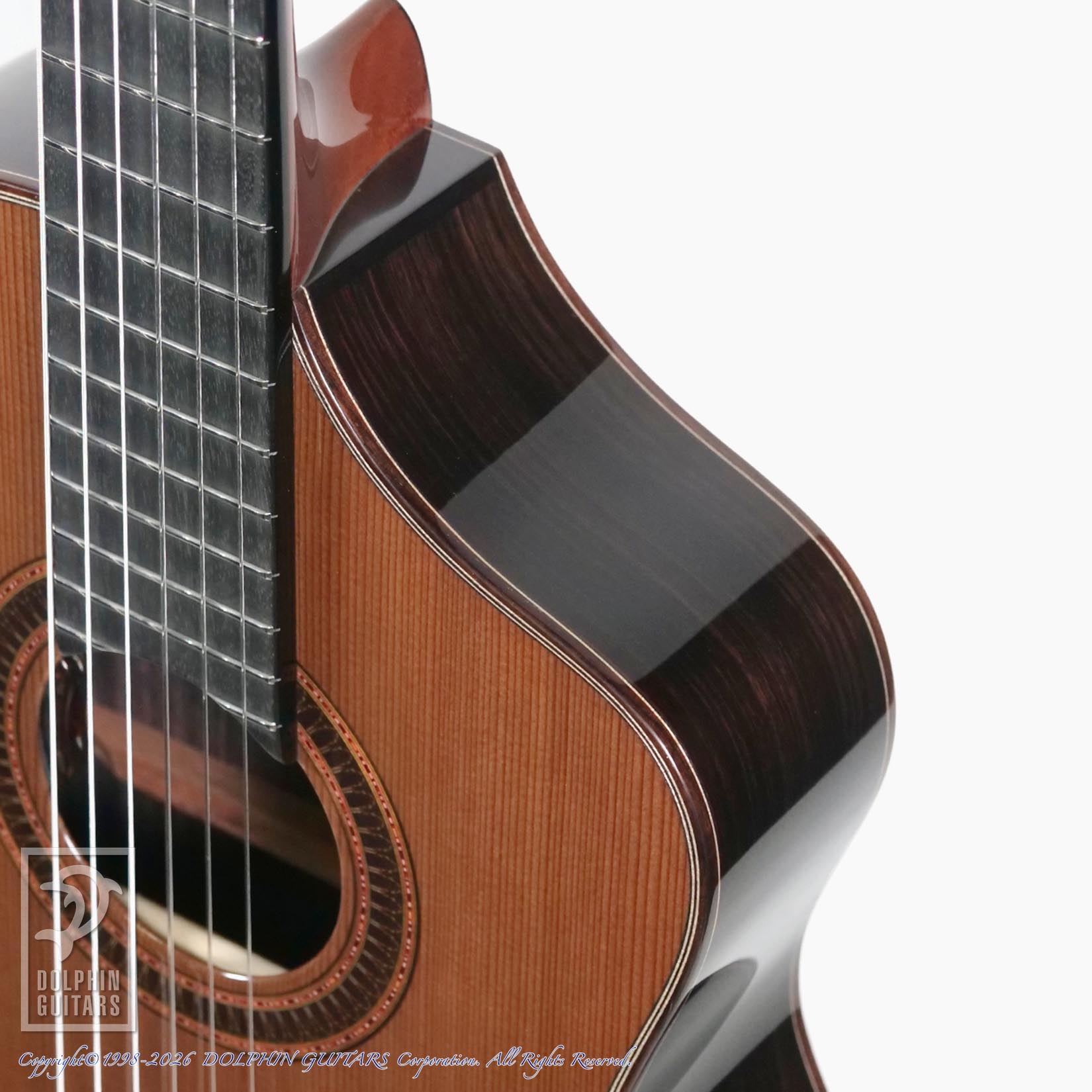 滑らかなカーヴのナローカッタウェイを採用し、サイドポジションの付いたスリムなカスタムネックも相まって鉄弦からの持ち換えにも違和感なくお使いいただけるでしょう。