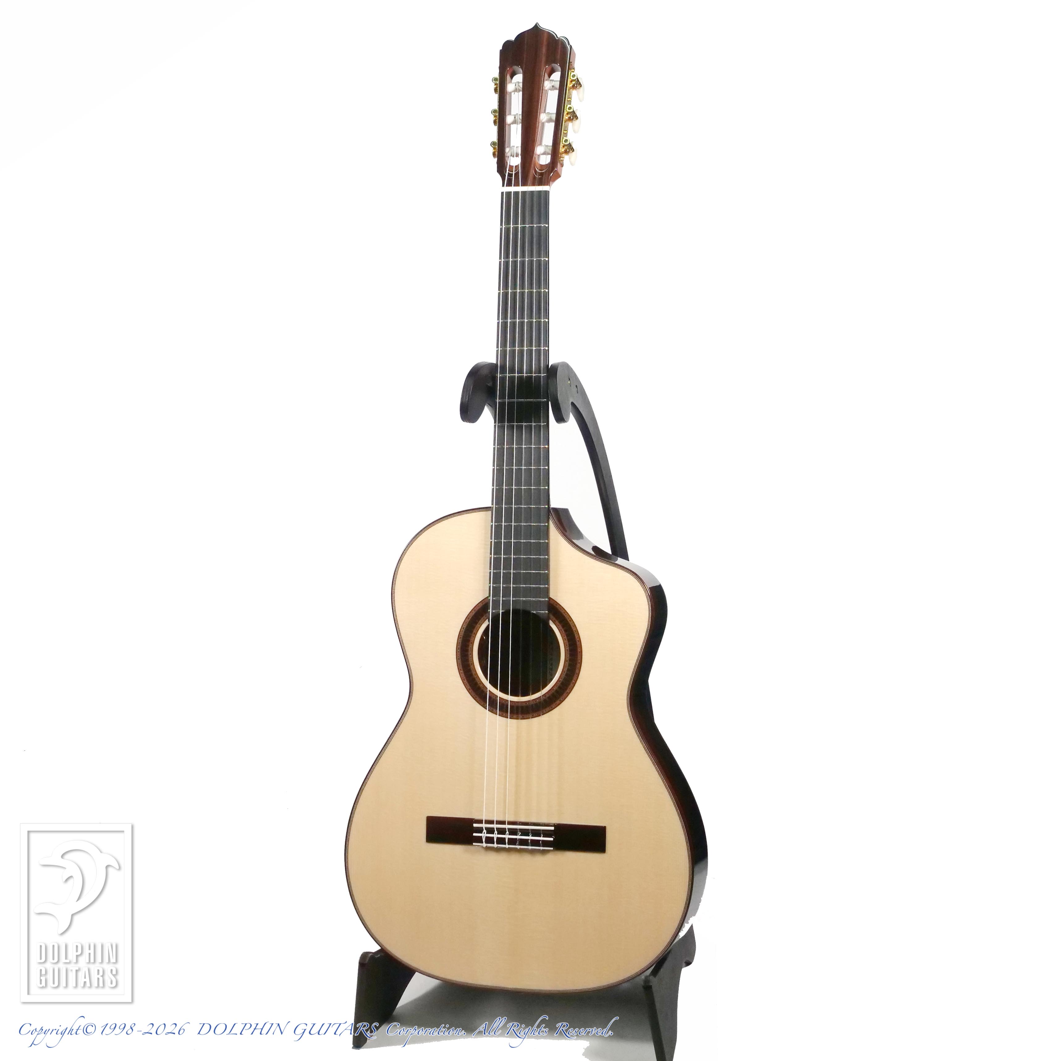 本器はクラシックギターに比べやや小振りなボディサイズ+630mmショートスケール+カッタウェイ仕様のSolo Classicoをベースに、薄ボディ+様々なカスタムを加え完成したVivoシリーズより、美しいジャーマンスプルースとローズウッドの王道仕様、Solo Classico Vivo