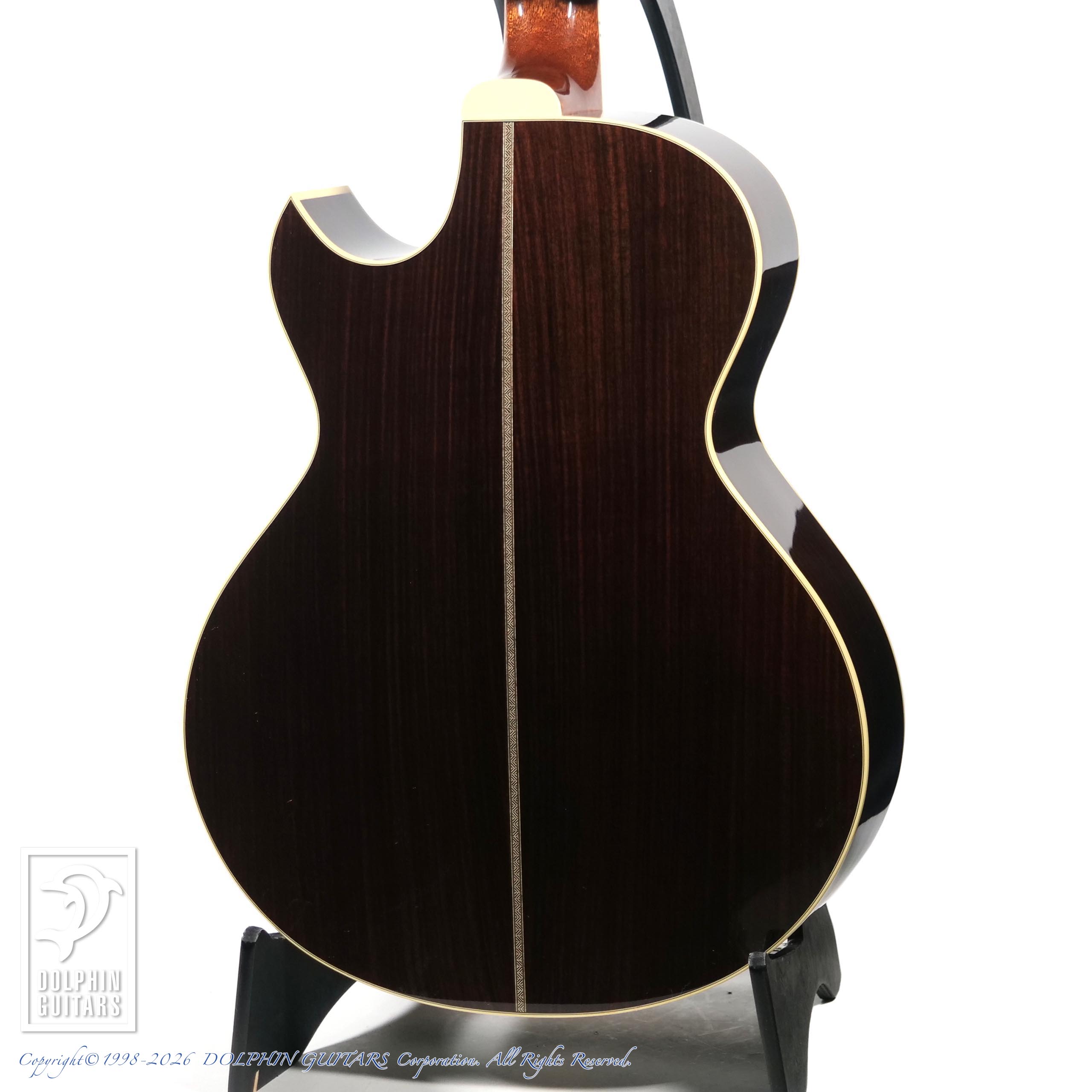 トップのルッツスプルース、サイドバックのインディアンローズは共に最高グレードを採用。