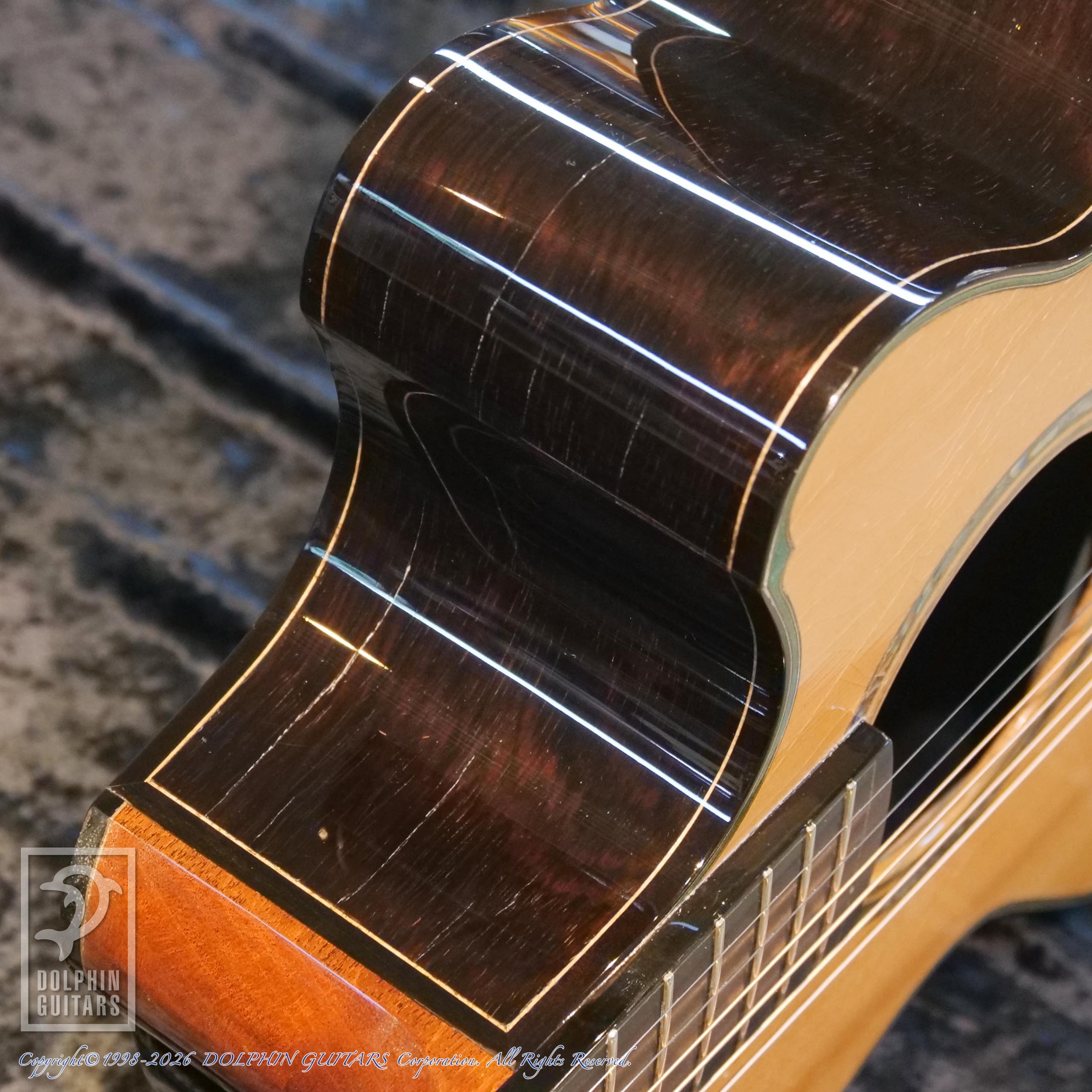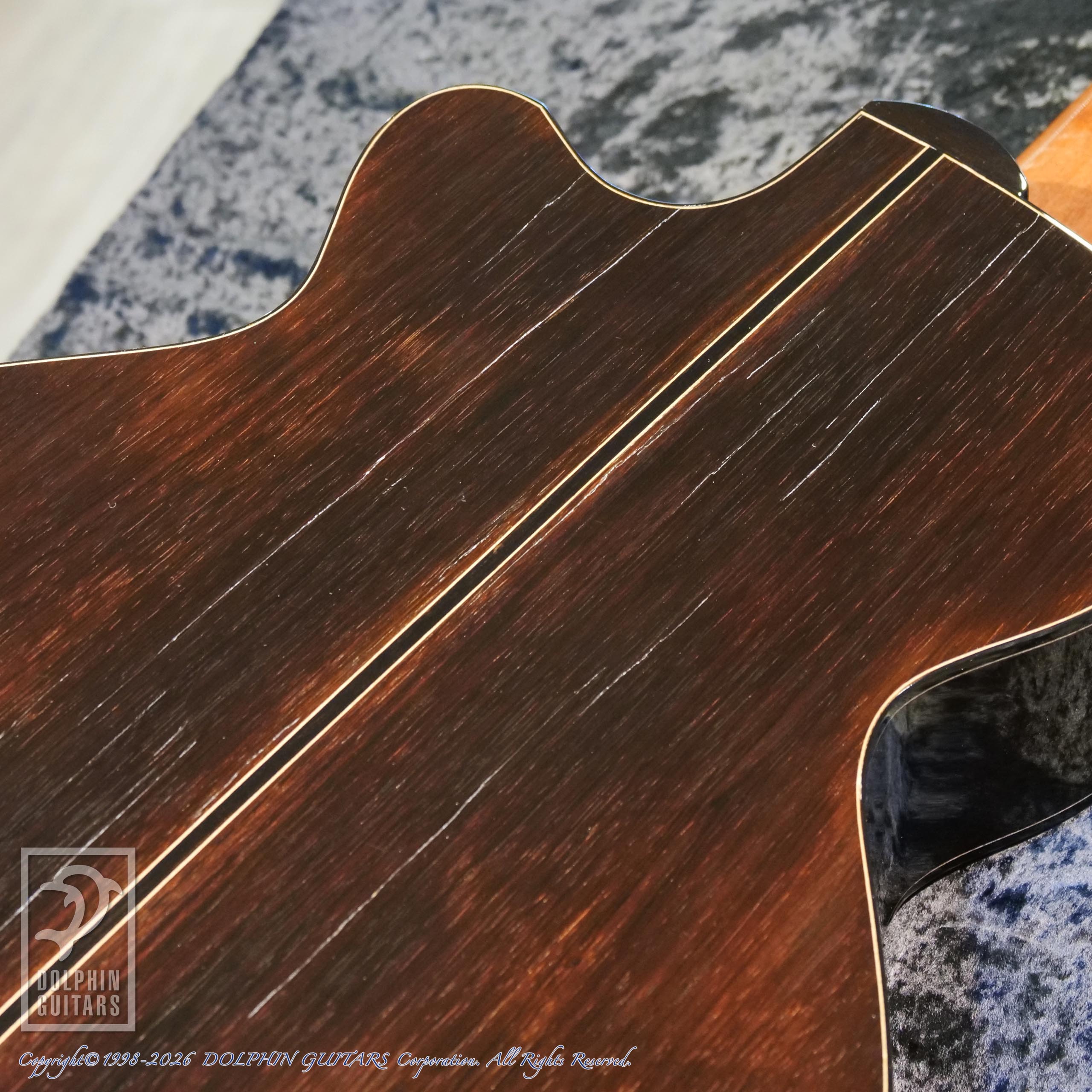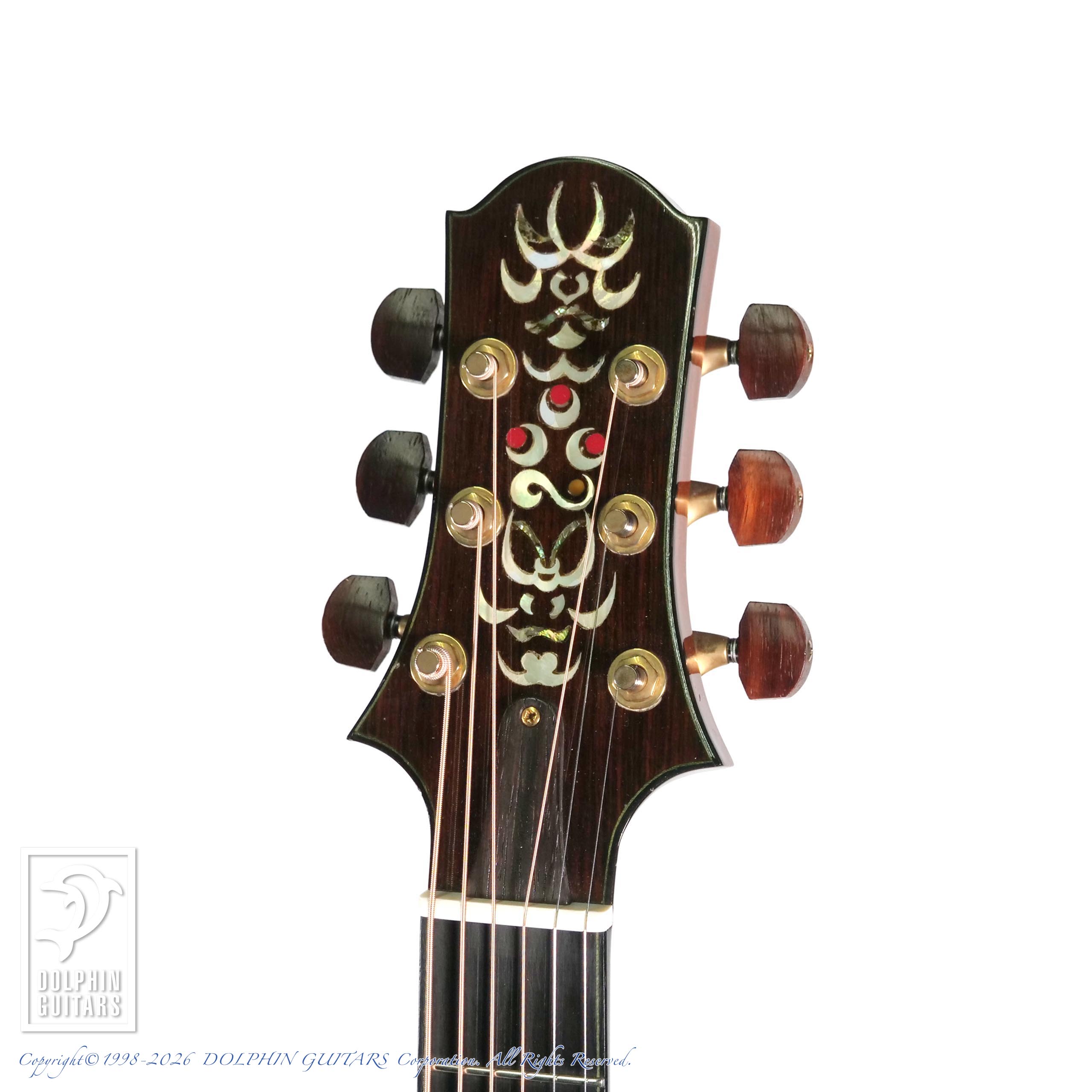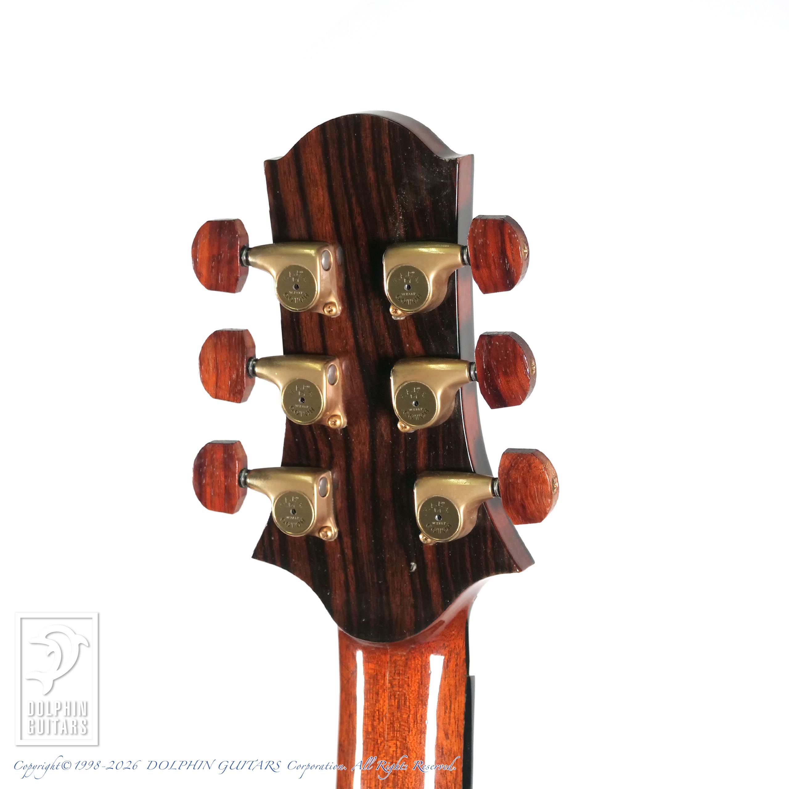 天然杢の芸術とも言える素晴らしいマテリアルの使用も、ルシアー界随一とも言われる材のストック量を誇るウォーターロードの魅力のひとつ。厳選された材や贅沢に使用されたアバロンのインレイなど、手工ギターの真髄を隅々まで堪能できる仕上がりです。