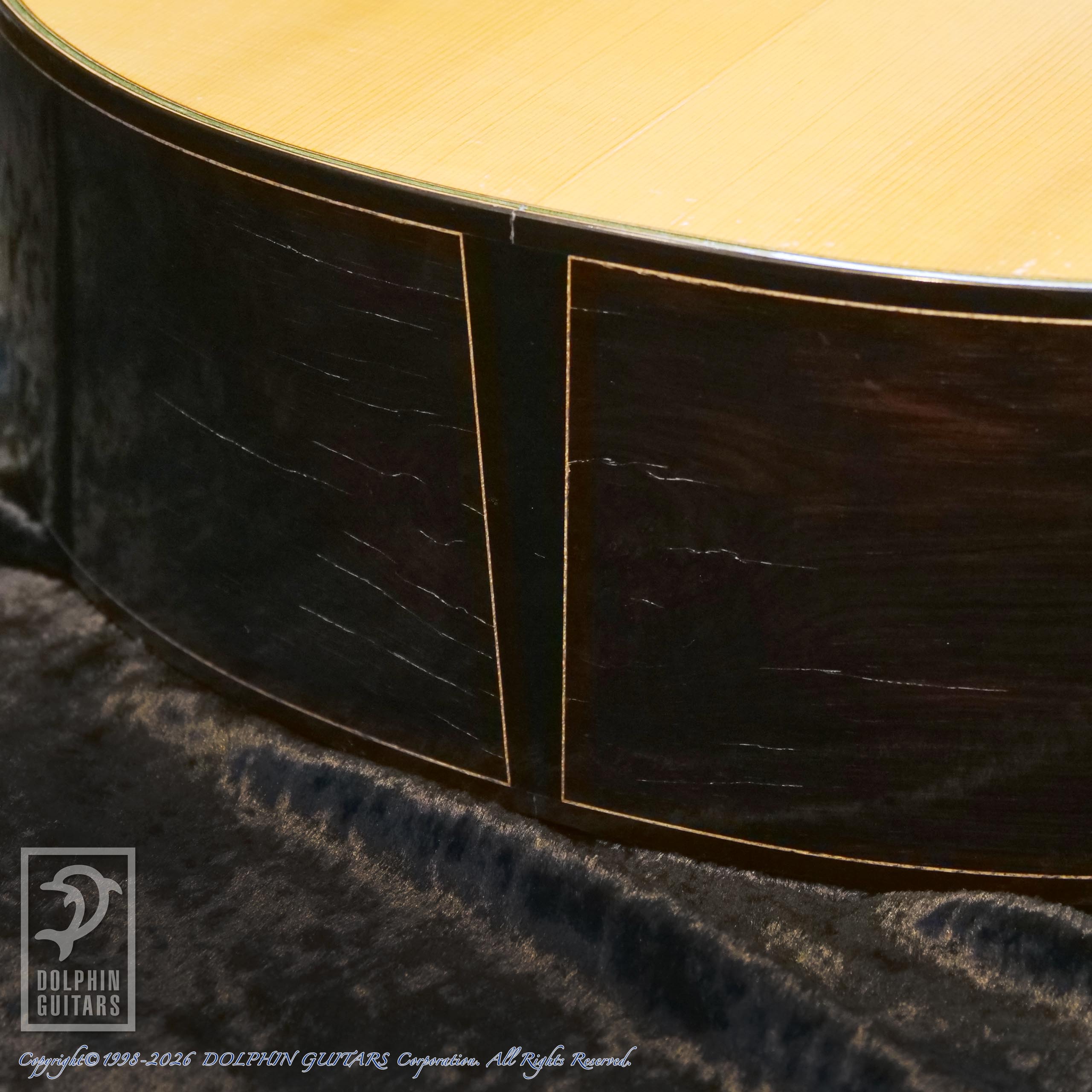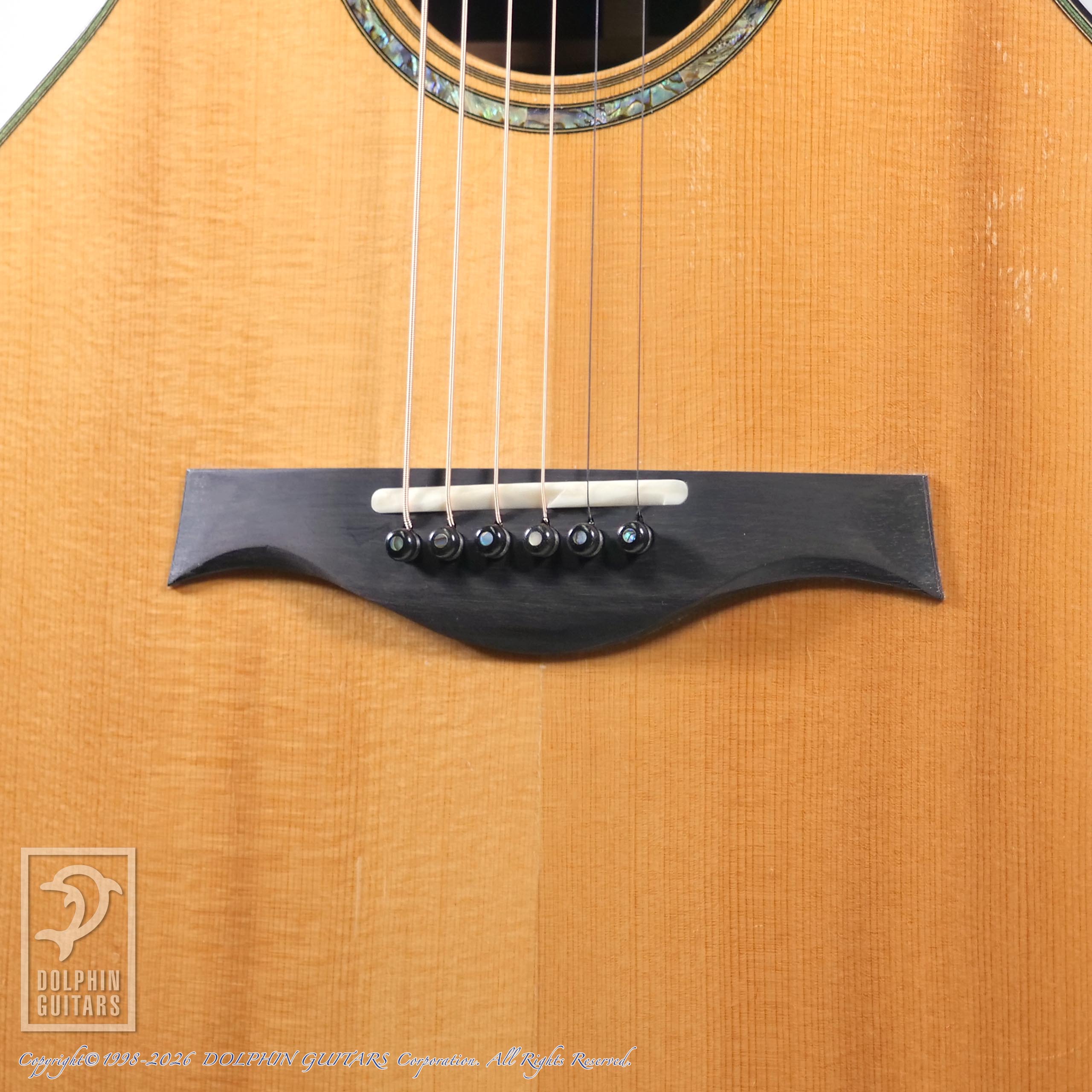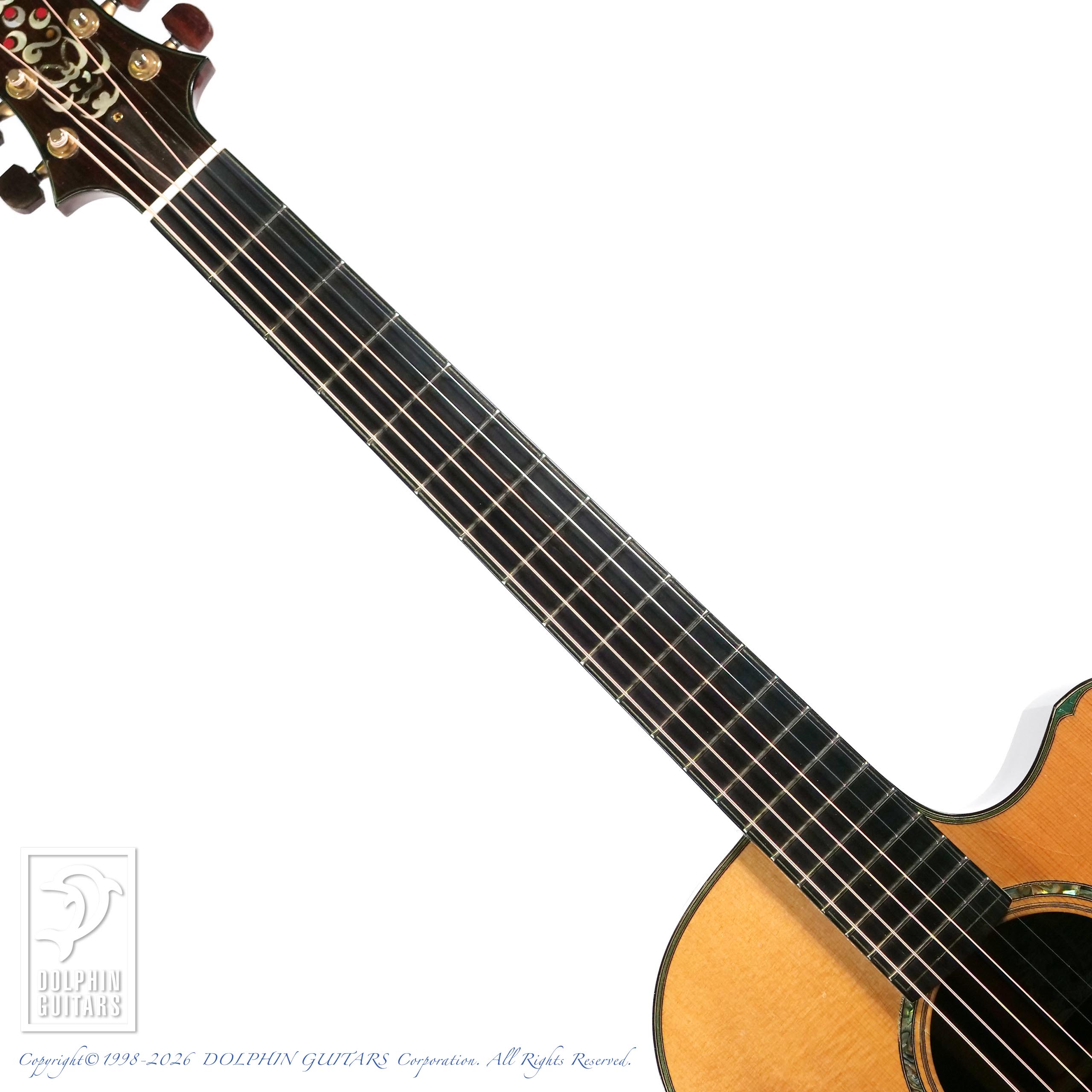 天然杢の芸術とも言える素晴らしいマテリアルの使用も、ルシアー界随一とも言われる材のストック量を誇るウォーターロードの魅力のひとつ。厳選された材や贅沢に使用されたアバロンのインレイなど、手工ギターの真髄を隅々まで堪能できる仕上がりです。