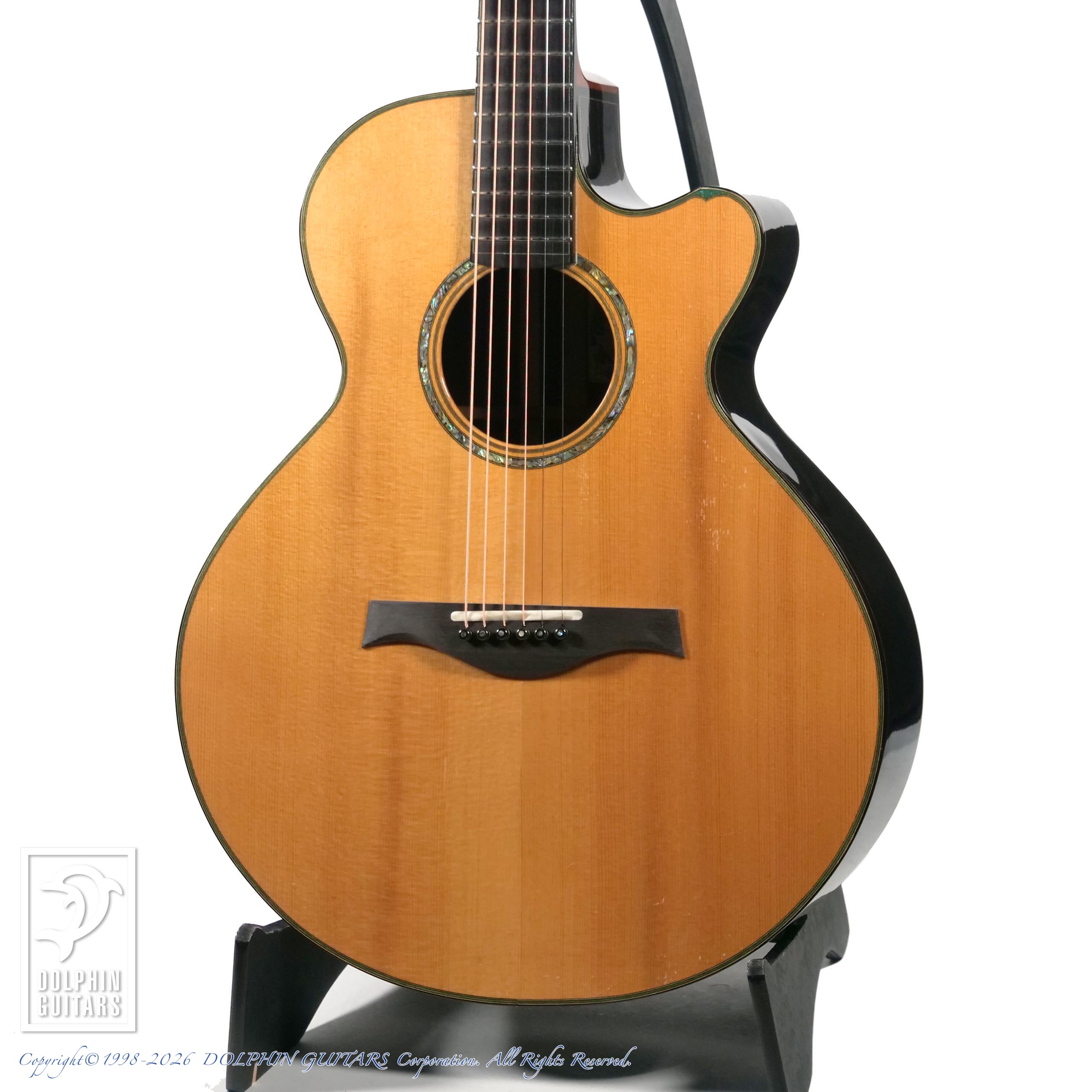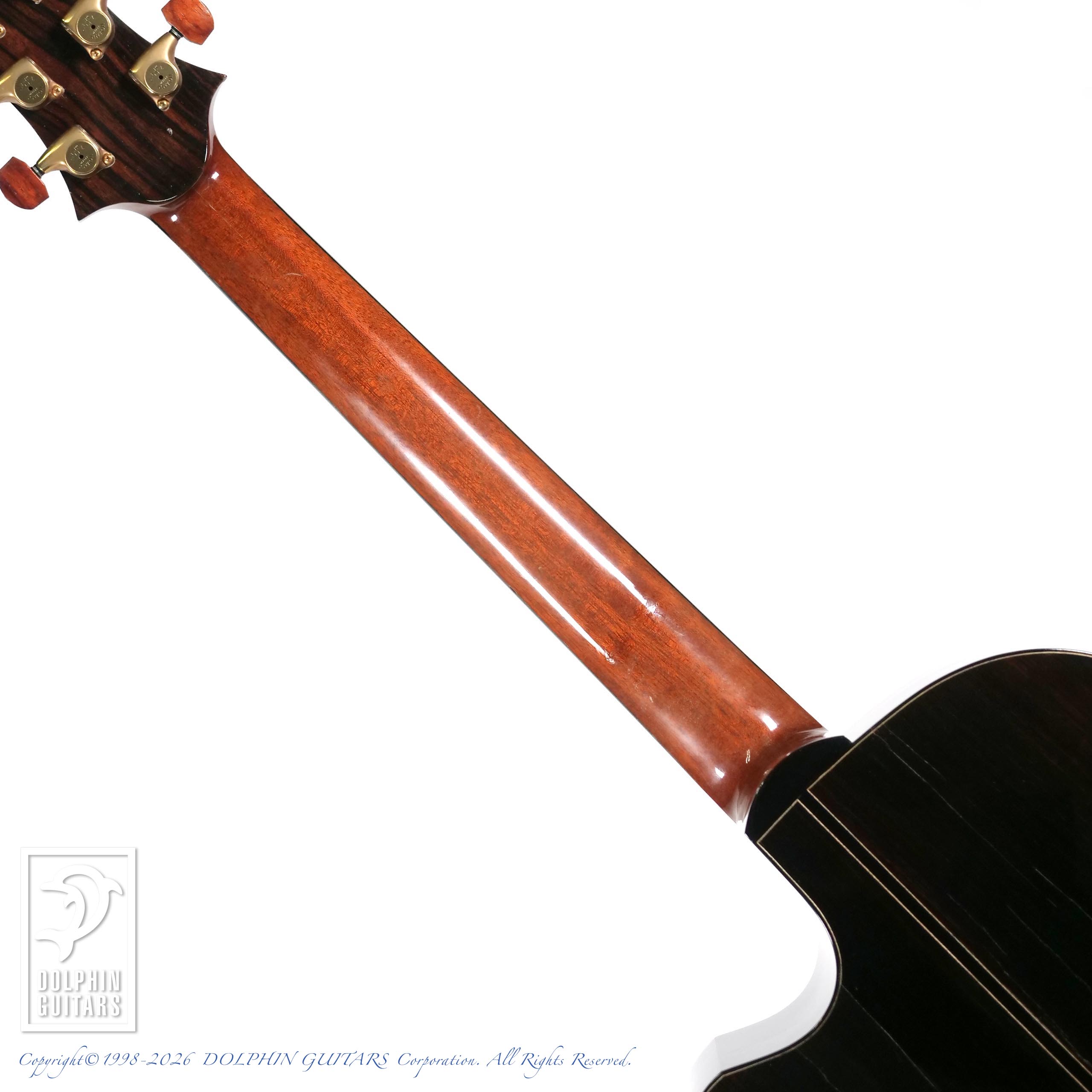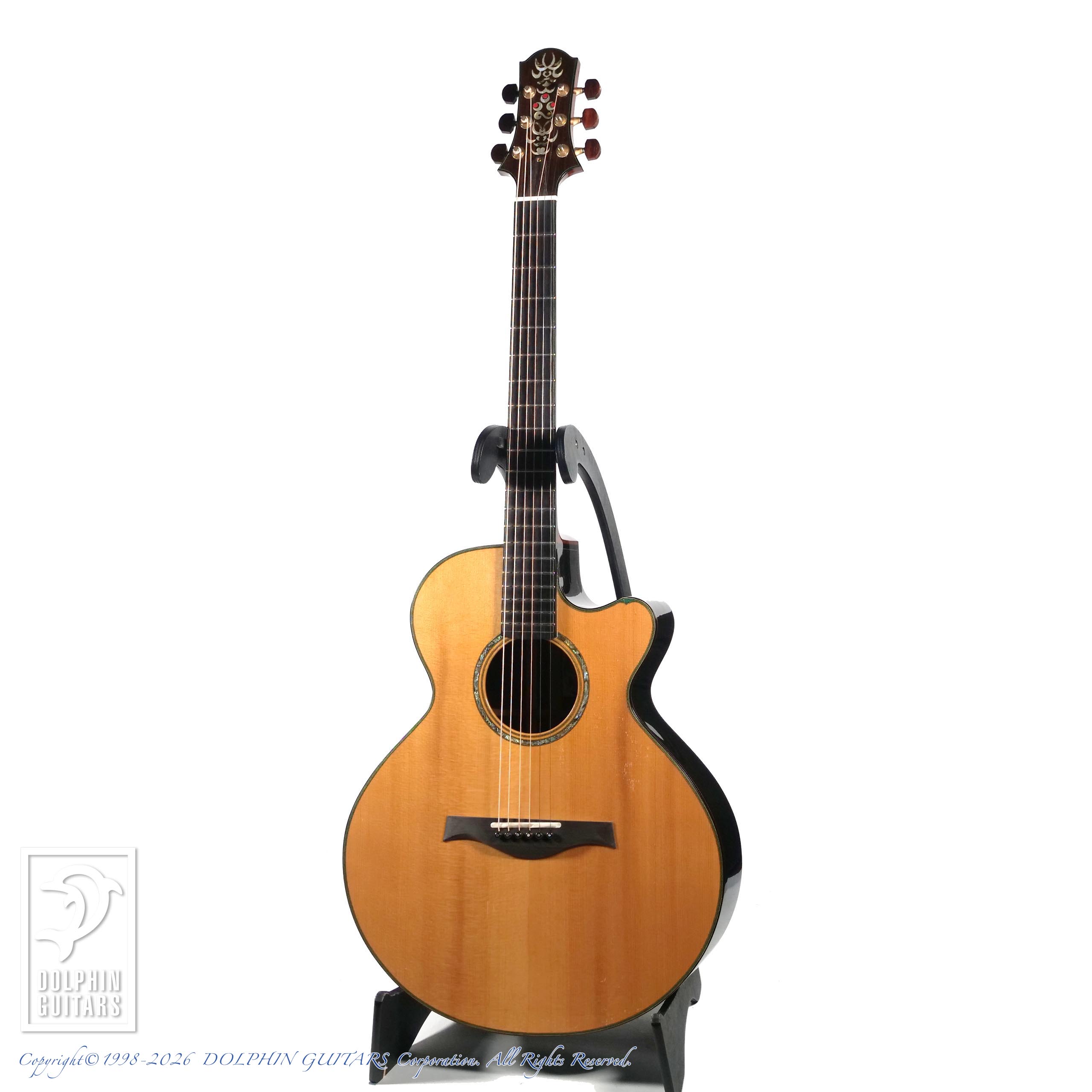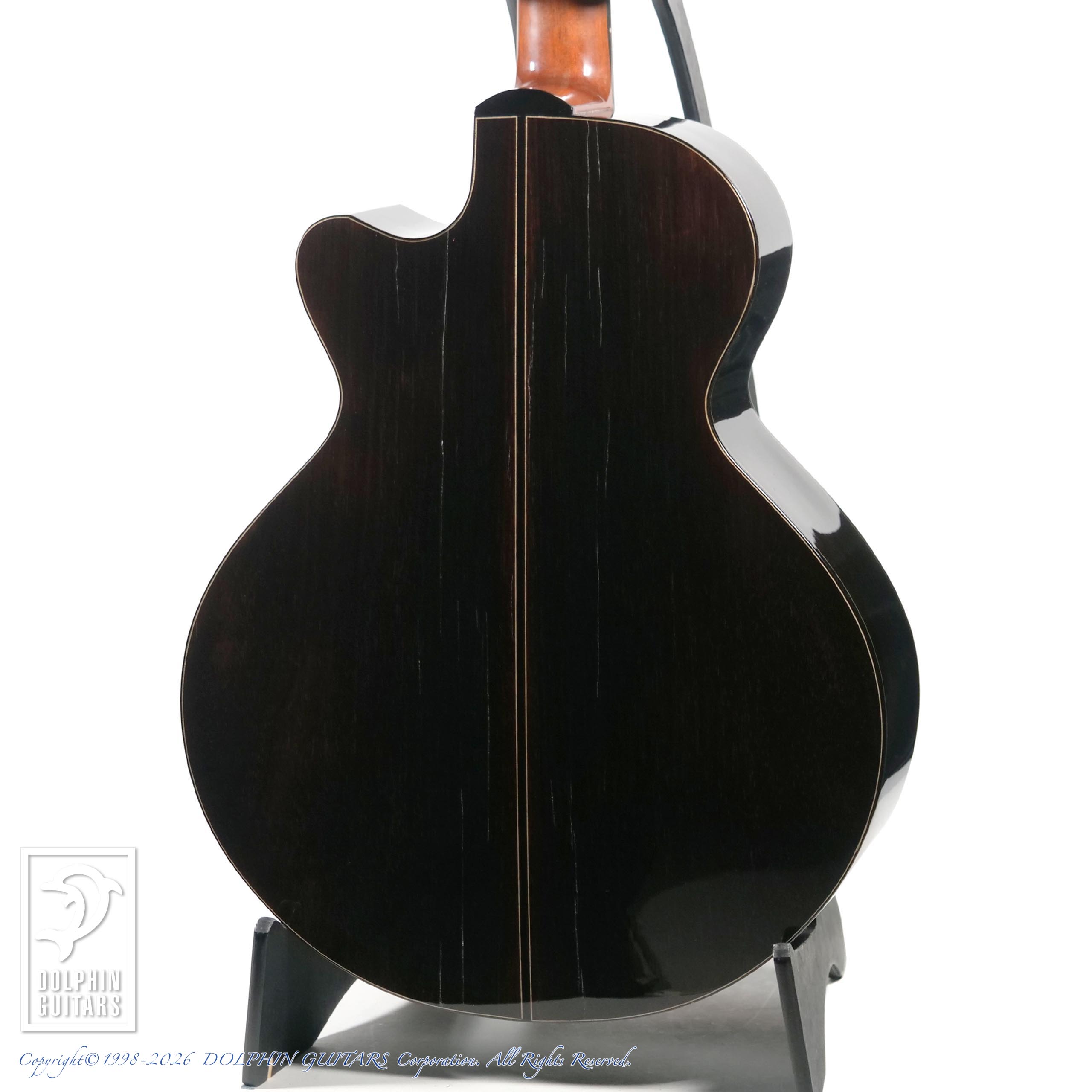 天然杢の芸術とも言える素晴らしいマテリアルの使用も、ルシアー界随一とも言われる材のストック量を誇るウォーターロードの魅力のひとつ。厳選された材や贅沢に使用されたアバロンのインレイなど、手工ギターの真髄を隅々まで堪能できる仕上がりです。