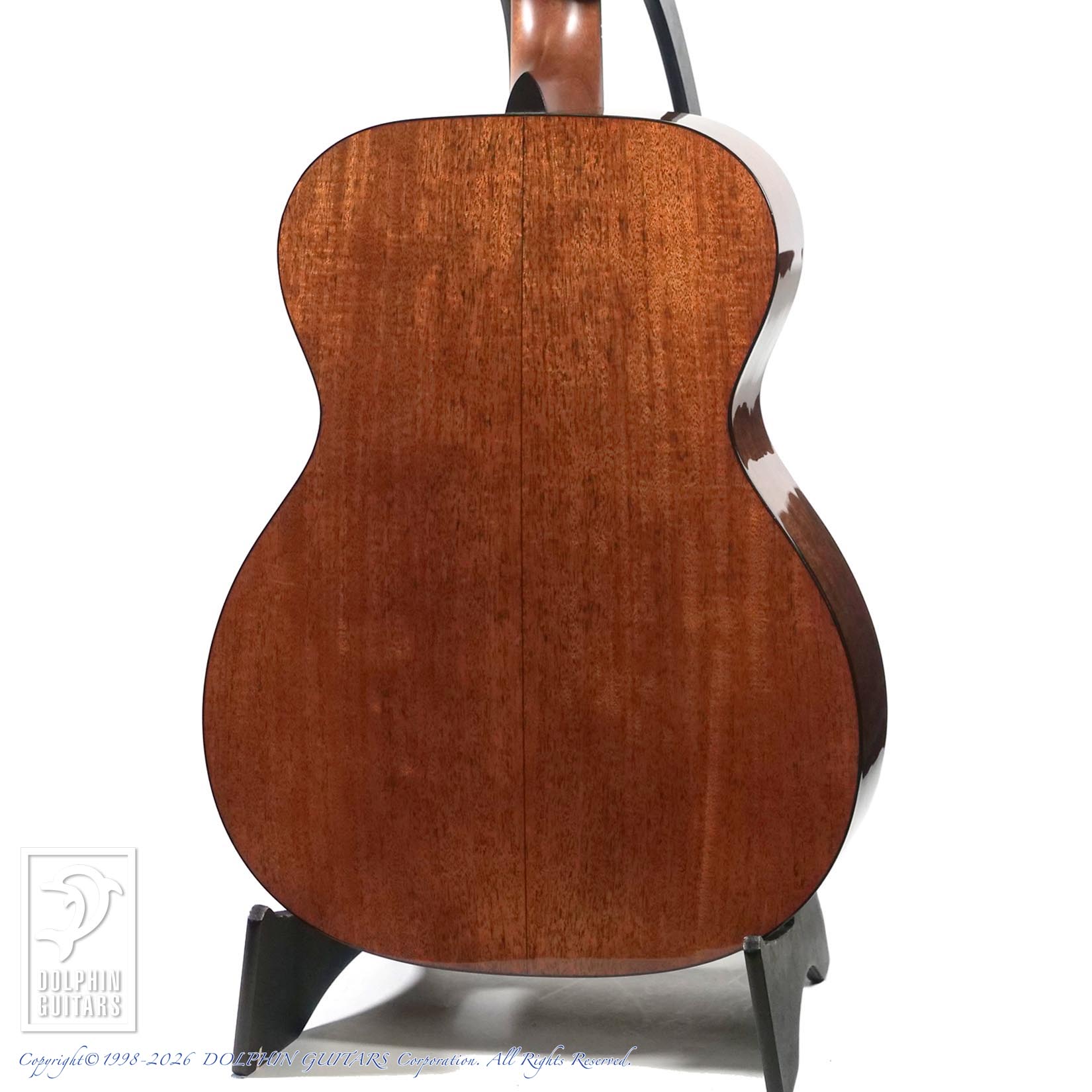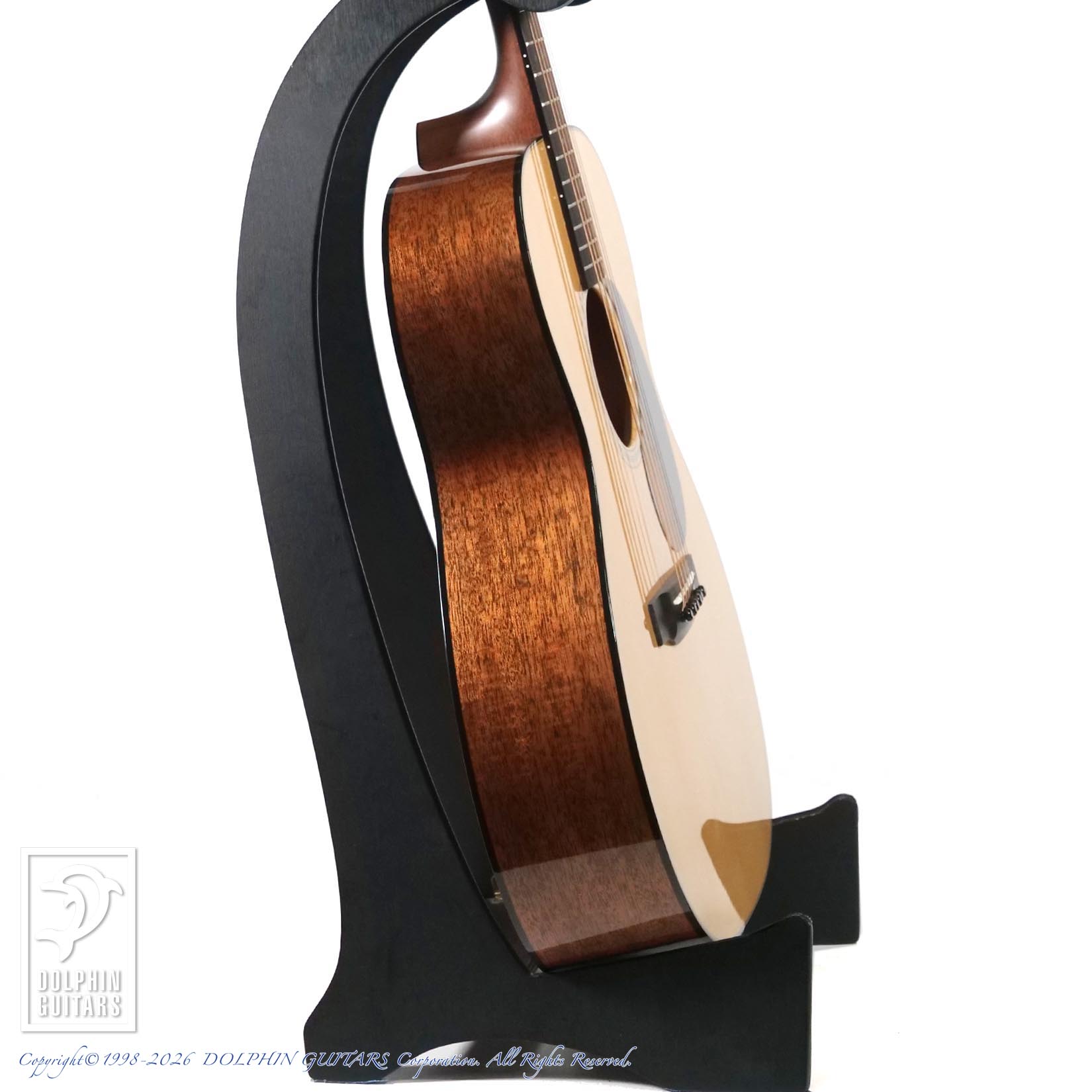 サウンドは、スプルース&マホガニーならではの優しく明るい高音と芯のある中域、反応の速さが魅力。000サイズらしい弦間バランスの良さで、フィンガースタイルの分離感からストロークのまとまりまで広くカバーします。GE Modified Low Oval+ハイパフォーマンステーパー、24.9インチのショートスケールでの左手の追従性も非常にスムーズです。