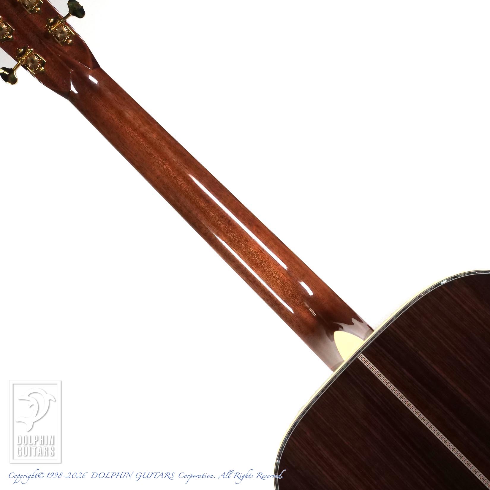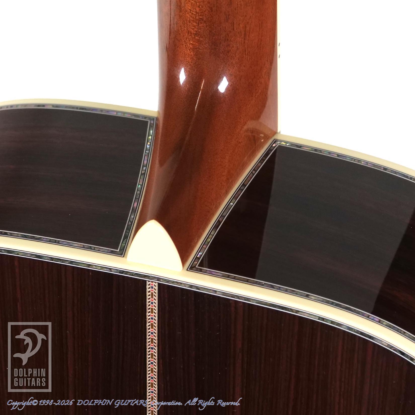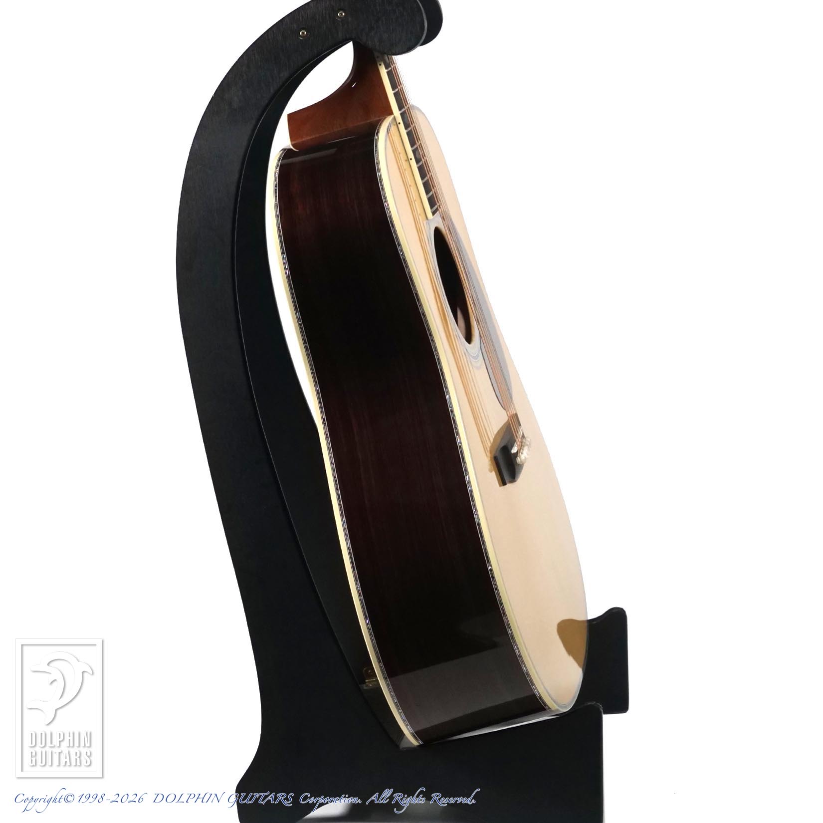 堂々たるバーチカルロゴ、ヘキサゴンインレイ、ボディの全面を走るアバロントリムと、360度どこから見ても美しく、眺めているだけでいつの間にか時間が経過する、アコースティックギターの頂点であり続けるギタリスト憧れの存在です。