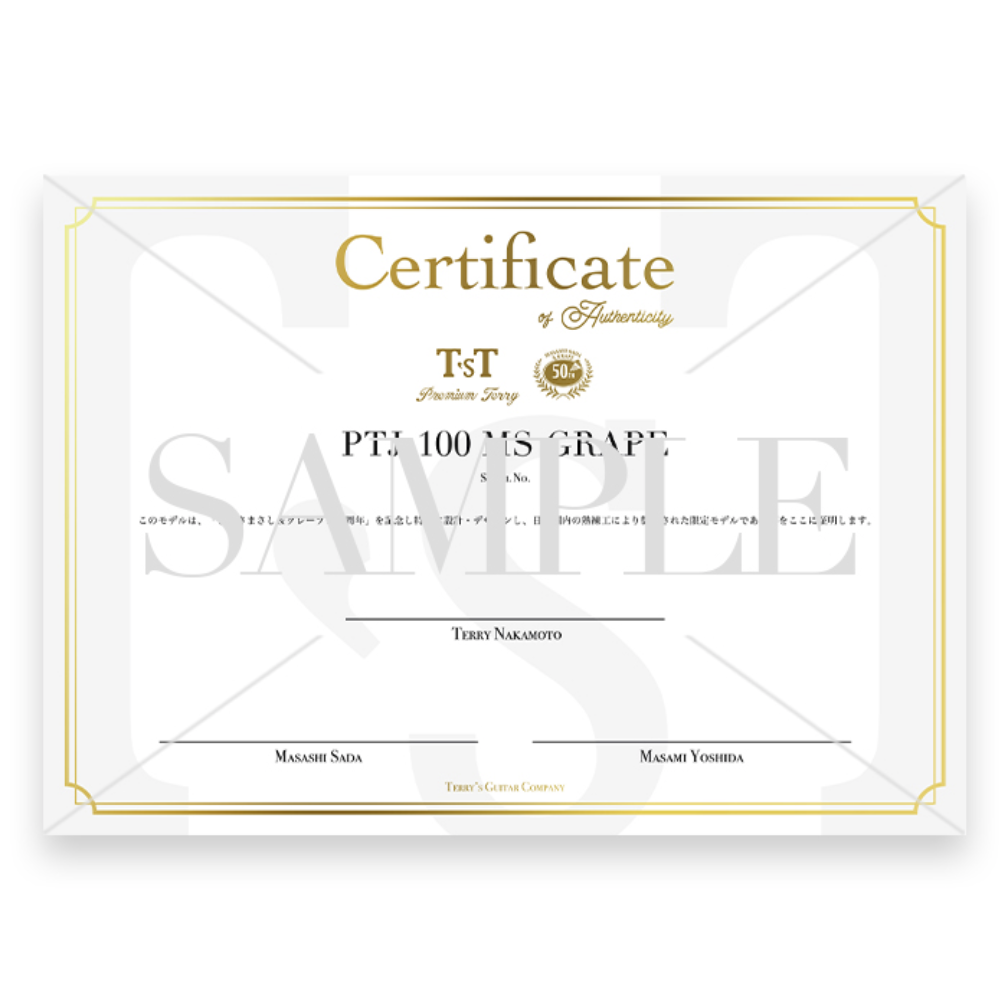 当モデル専用のオリジナル認定書が付属。認定書には、さだまさし・吉田政美・テリー中本の3名による直筆サインが施されており、コレクションアイテムとしてもお楽しみいただけます。