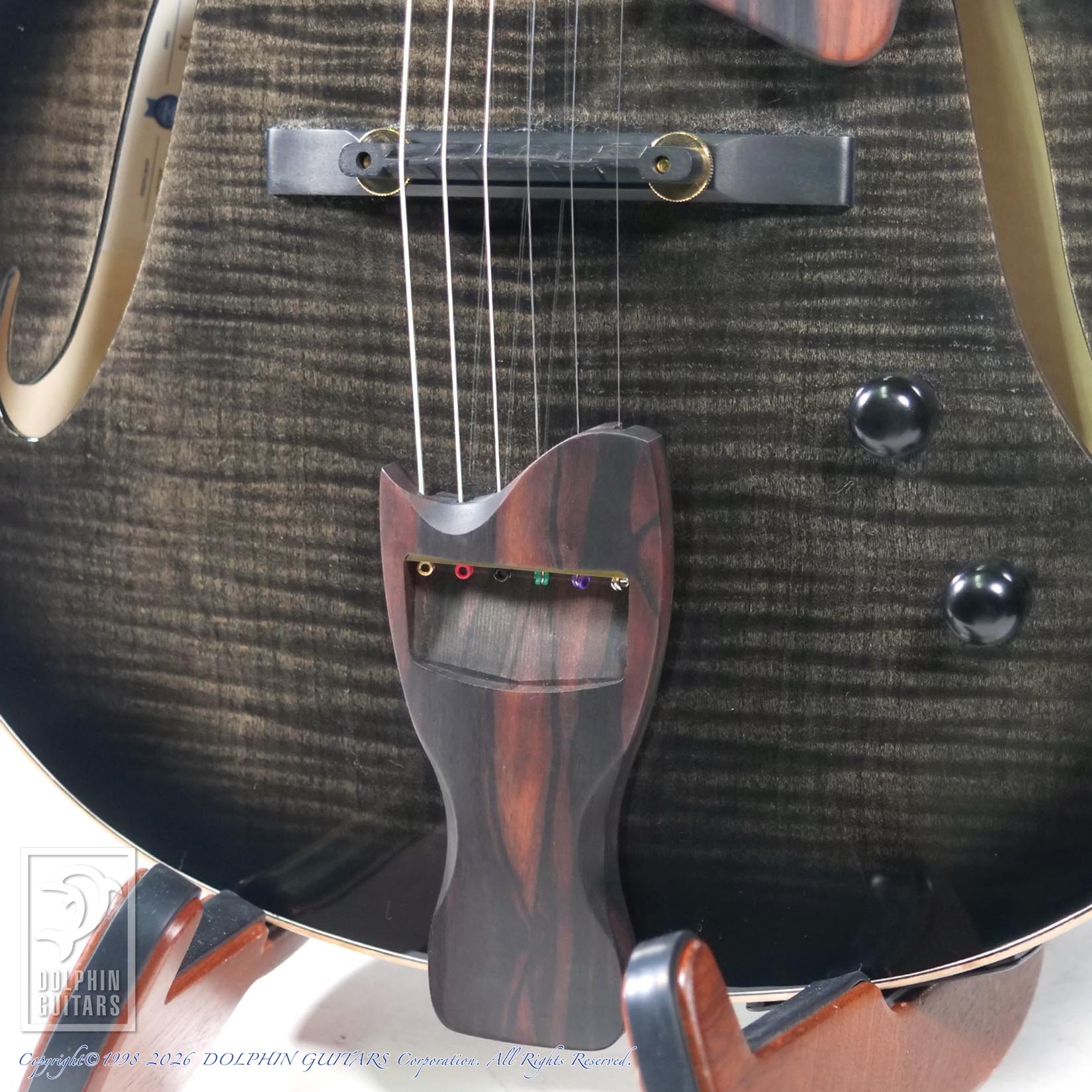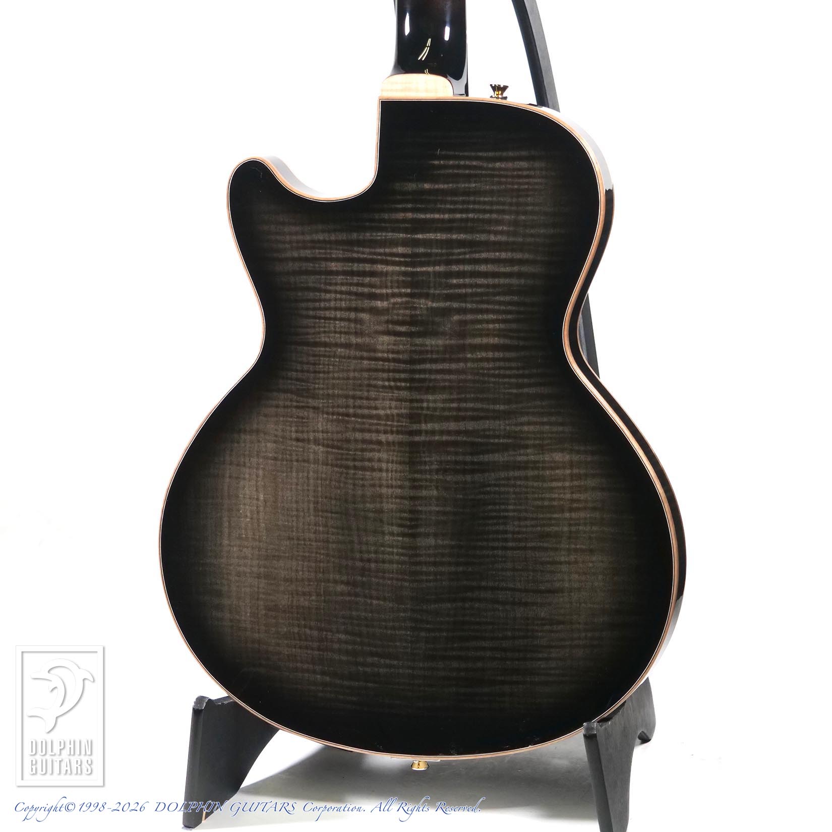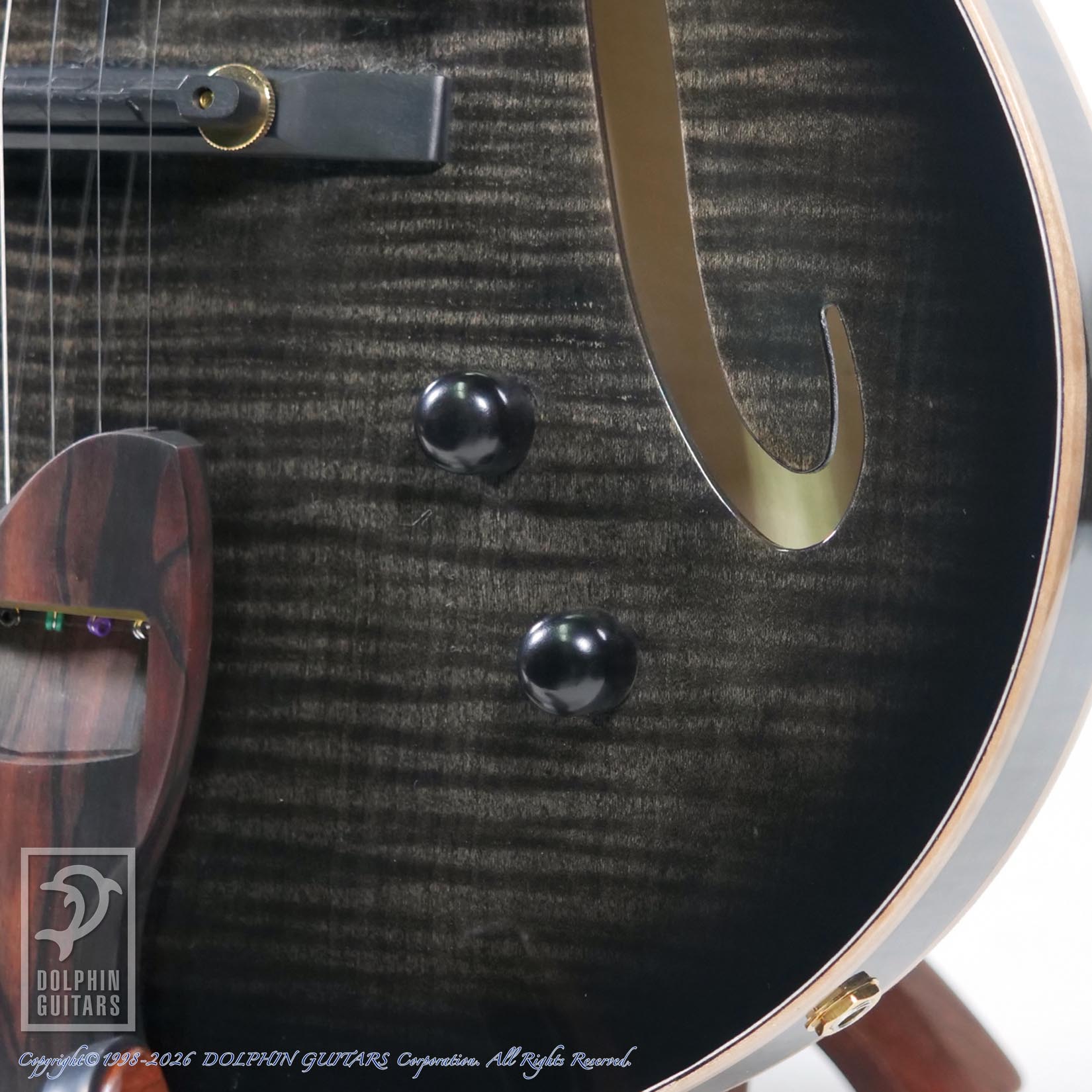 モダンなSシェイプのサウンドホールや、フレイムメイプルの美しい杢目が洗練された現代的なシルエットを印象付けております。