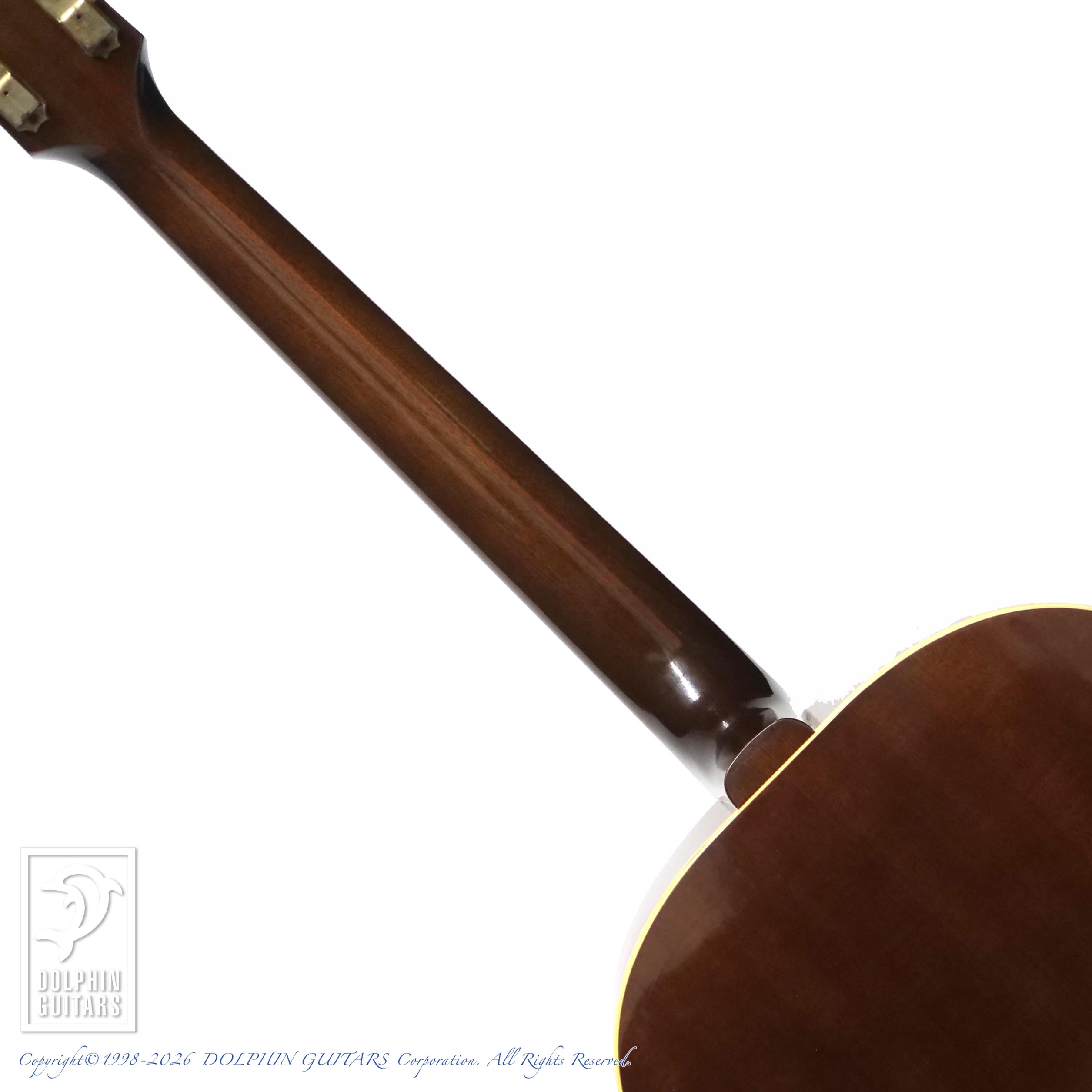 「Hata Motohiro J-45」は、サーマリーエイジド加工が施されたシトカスプルースのトップと、ジェニュインマホガニーのバック&サイドを採用。マホガニーネックは特徴的な1960年代後期仕様のカスタムカーブドネック形状と1.575インチ(約40mm)のナット幅を採用。ローズウッド指板には20本のラージサイズのレジェンド・フレットが打たれ、マザーオブパールのドットインレイが施されています。ナットはボーン製、チューナーは信頼性の高いゴトー®ストラップチューナー(クリームボタン)を採用。