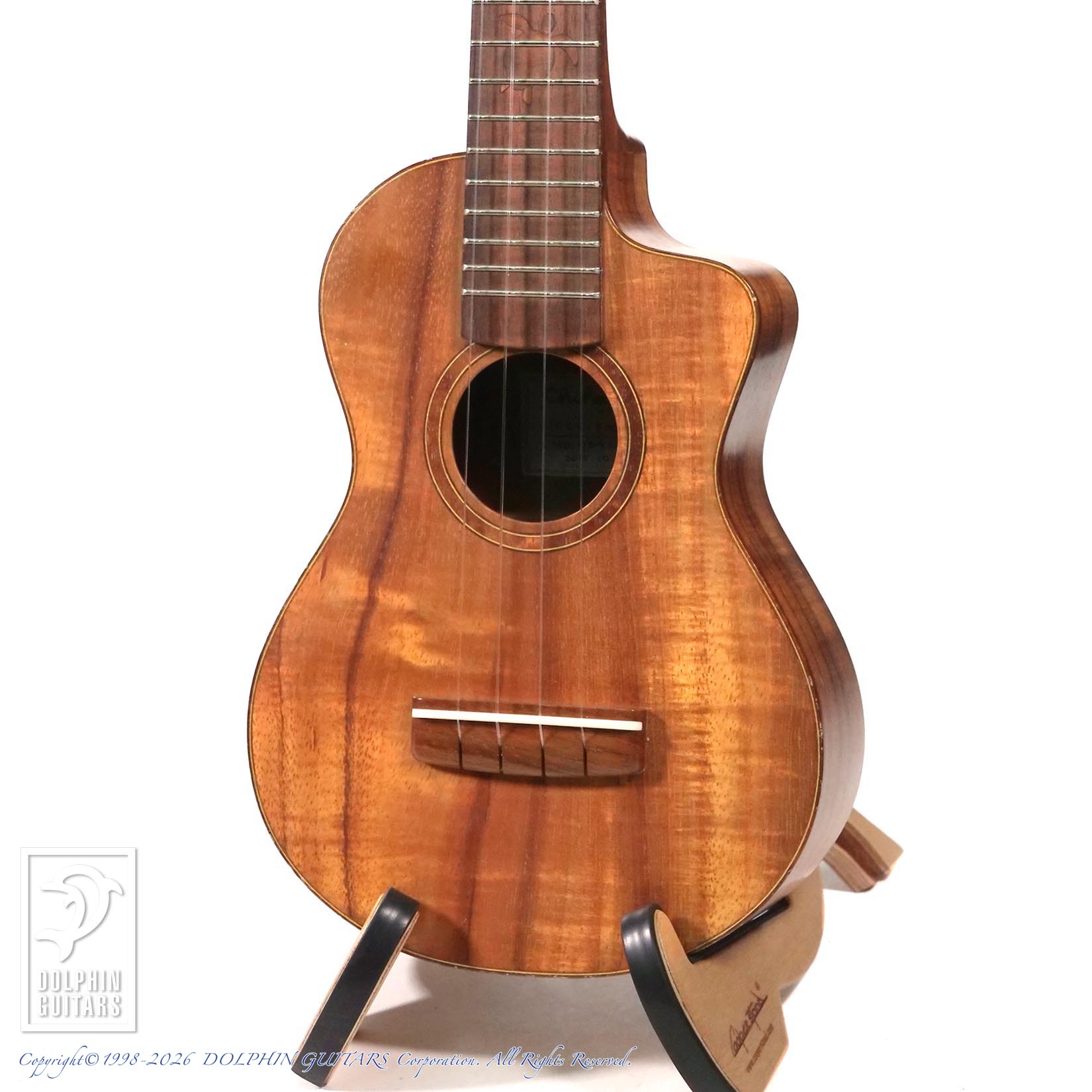 本器はフィンガーボードのウミガメインレイがチャーミングな10CC-Koa、2015年製のUSED品。ハワイアンコア材を贅沢に使用したカッタウェイ仕様のコンサートサイズモデルです。