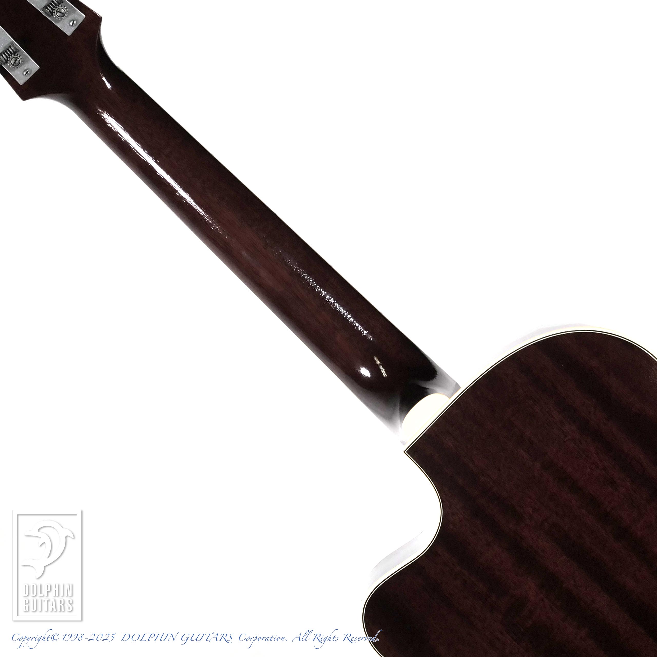 また、ボディは超軽量、このボディーサイズとは思えないヴォリューム感と深すぎない深み...。マホガニートップの本器はミッドに美味しい要素がギュッと凝縮された、アコースティックギターに求めたいあたたかさも存分に味わえる音色です。