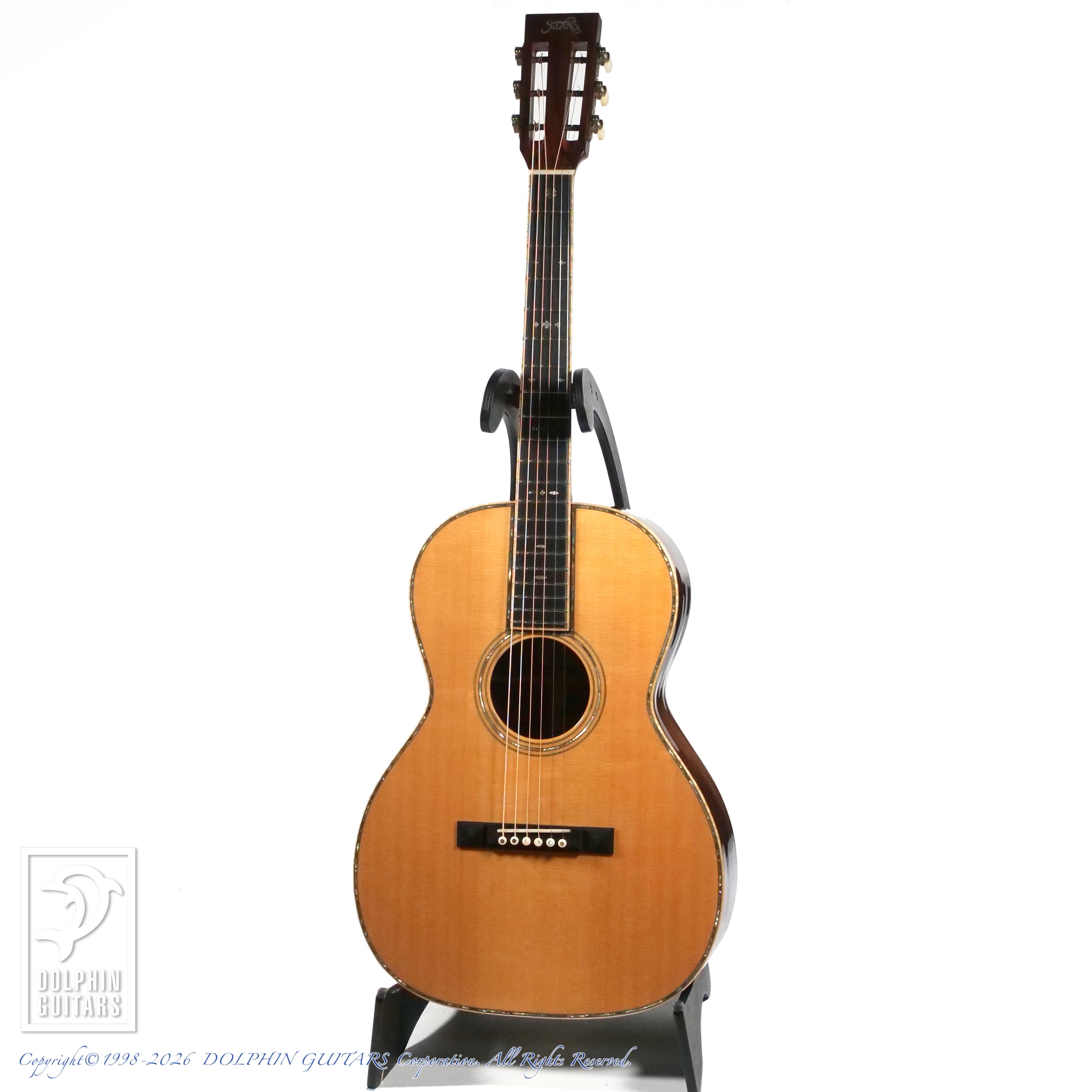 立ち上がりは素早く、軽いタッチにも敏感に反応。高域はシルキーで鈴鳴りのような透明感を持ち、中域は艶やかで表情豊か。ハカランダ特有の深く沈み込む低域と、複雑に重なり合う倍音が全体に奥行きを与え、コンパクトな00サイズながらスケールを感じさせるサウンドに仕上がっています。