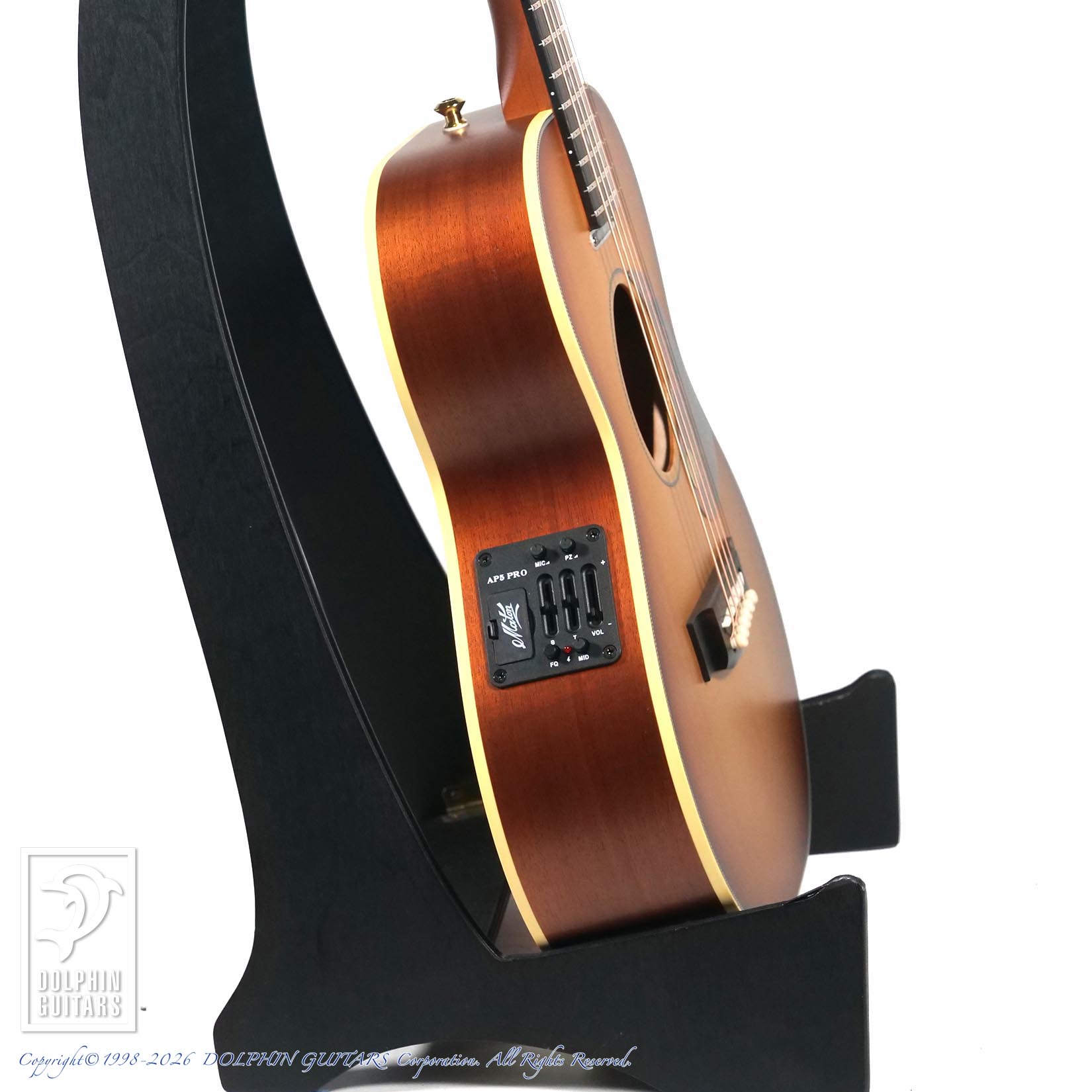 メイトンの魅力の一つでもあるピックアップシステムはメイトン社オリジナルのAP5-Proは特殊構造のアンダーサドルPUとコンデンサーMicをMixし、リアルなアコースティックサウンドをアウトプットできます。サイズはミニであってもラージボディにも引けをとらないこの大迫力のサウンドに、初めて弾かれる方は驚きを隠せないでしょう。