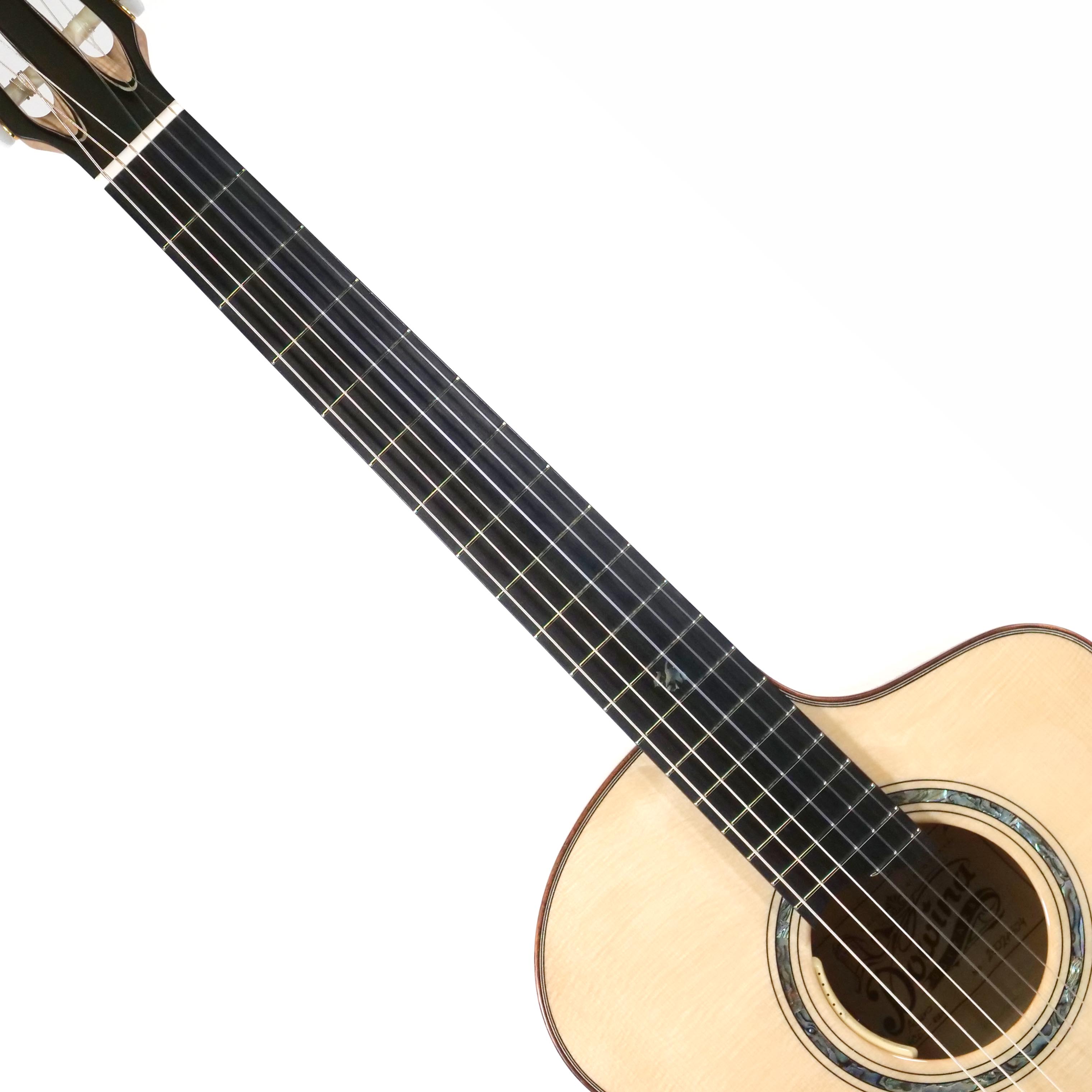 樹木に含まれる含水率がもっとも少なくなるとされる新月の時分に切り出すこのスイス産出のスプルースは、じゅうぶんな剛性を備えながらも軽量で、加えてルシアーが手ずから音響特性に優れたものだけを選び抜いた材料です。