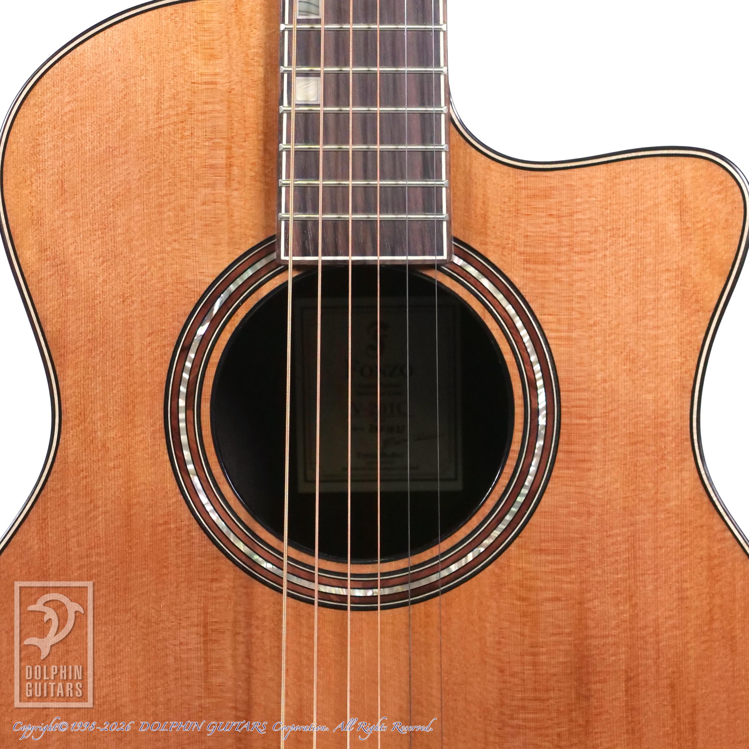 その他:ヴェネチアンカッタウェイ、アバロン&ウッドインレイ、サントスローズウッド&アバロンロゼッタ、43mmナット幅、600mmスケール。