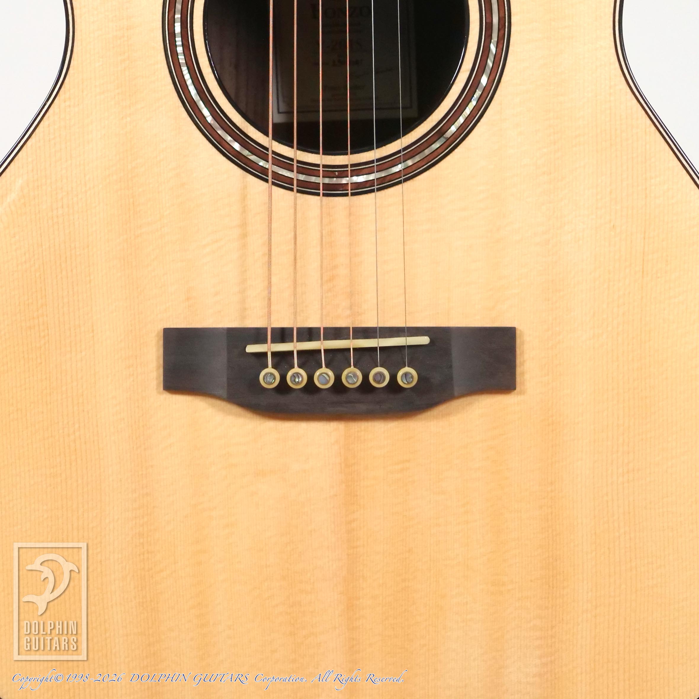 ヘッドから指板にかけて施されたインレイやサントスローズ&アバロン・ロゼッタは、どこかタイらしさを感じるデザインに仕上がっており、フォンゾギターのセンスを感じさせます。