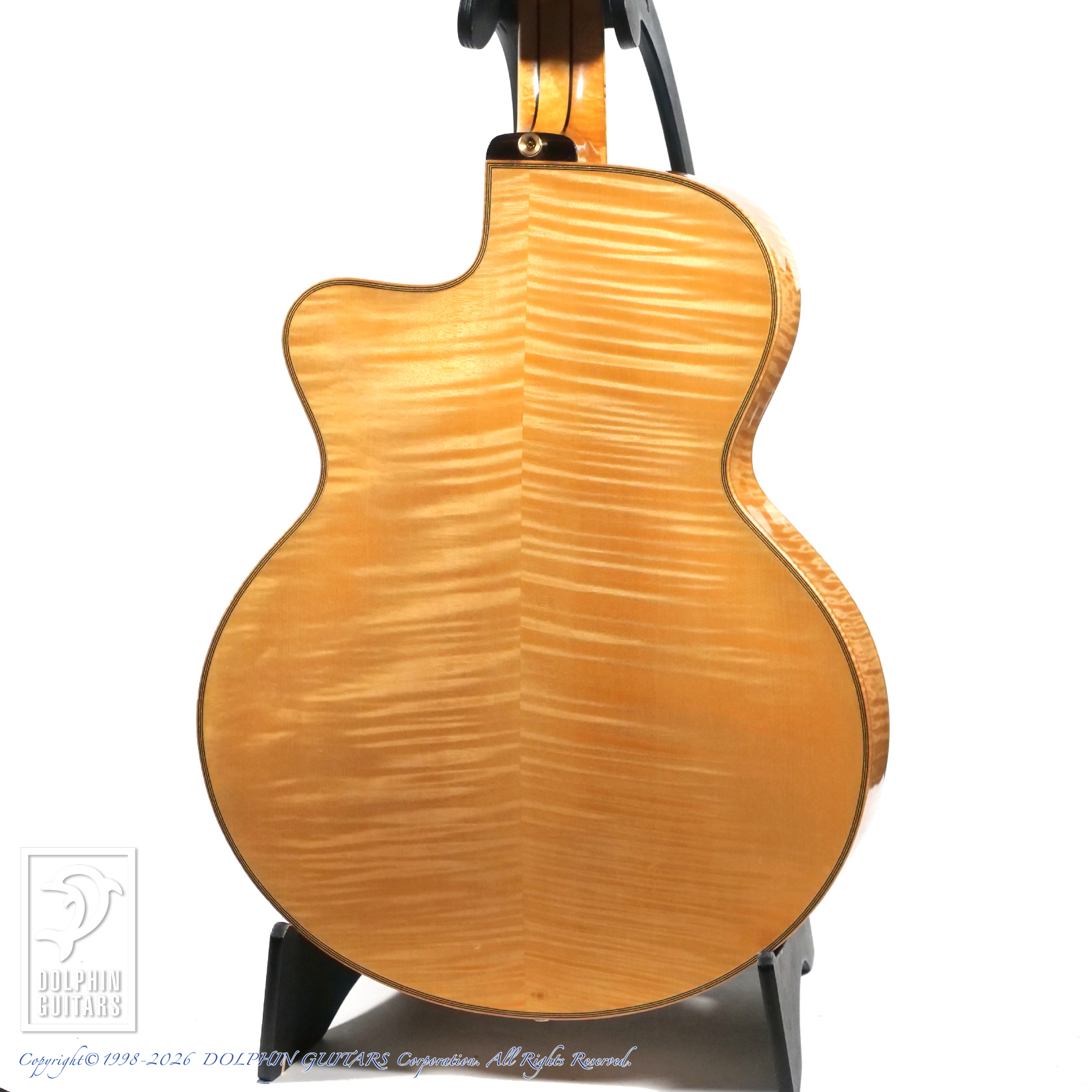 メイプルバインディングに黄金色のナチュラルフィニッシュ、高級感漂う雰囲気があります。