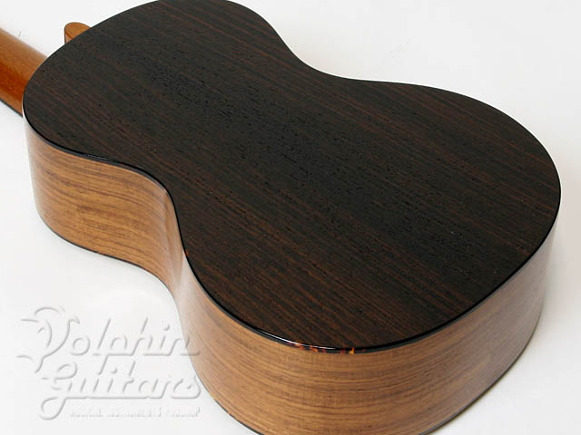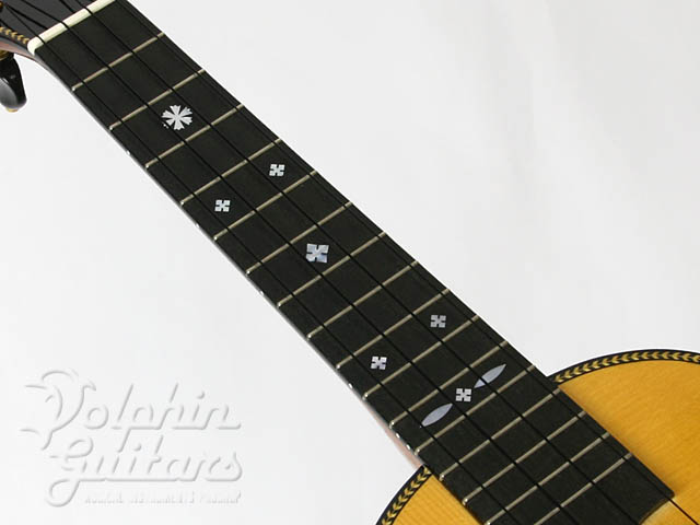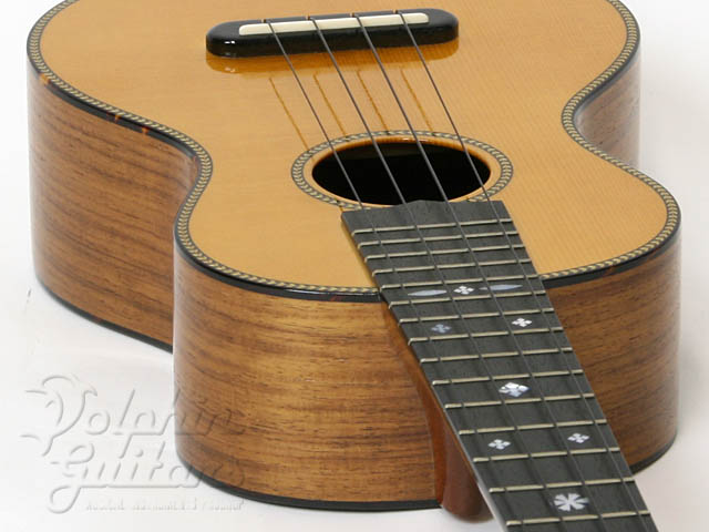 本器はスプルース・トップ、ローズウッド・サイド&バック、エボニー指板・駒、スノーフレークス・インレイ、ヘリンボーントリム、コンサートサイズCO-100SR。