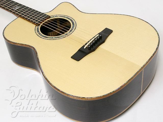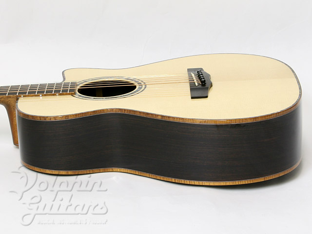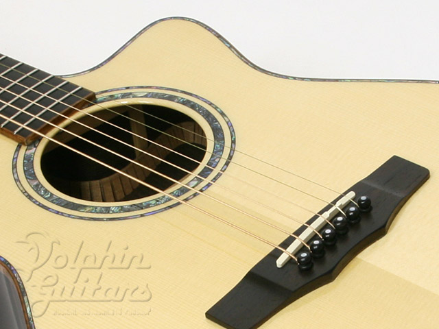 イングルマン・スプルース・トップ、ローズウッド・サイド&バック、カッタウェイ、エボニー指板&駒、アバロン・ロゼッタ、アバロン・トリム、独自の2ウェイ・ラウンド・バック、サークル・フレット。