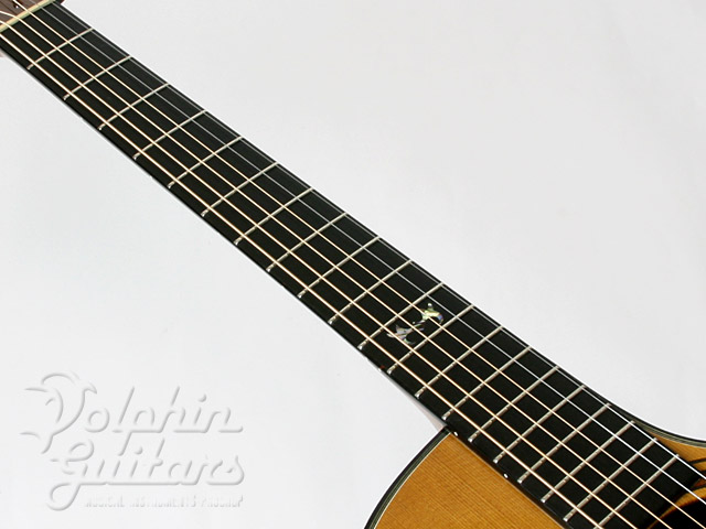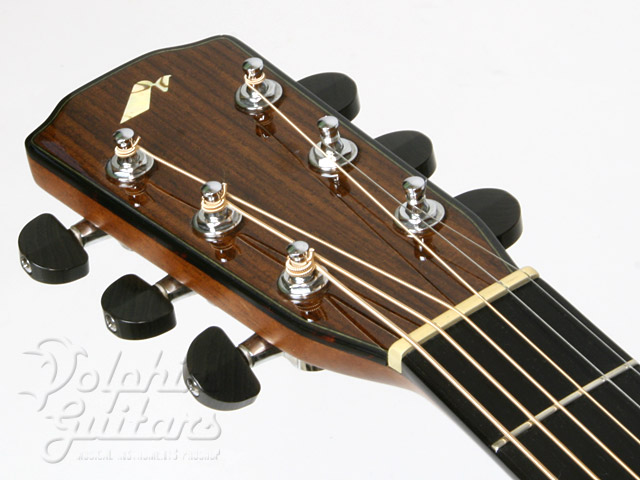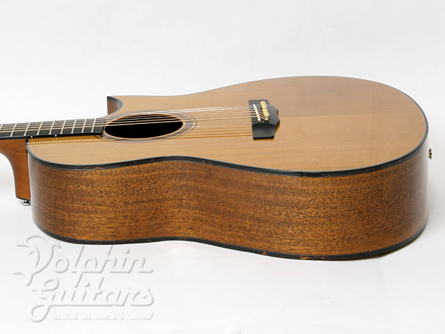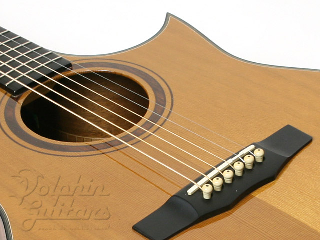 シダー・トップ、マホガニー・サイド&バック、エボニー指板&駒、フローレンタイン・カッタウェイ、鼈甲柄バインディング。