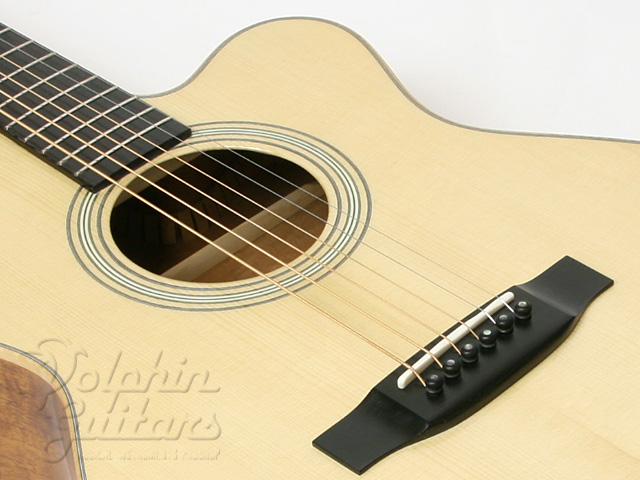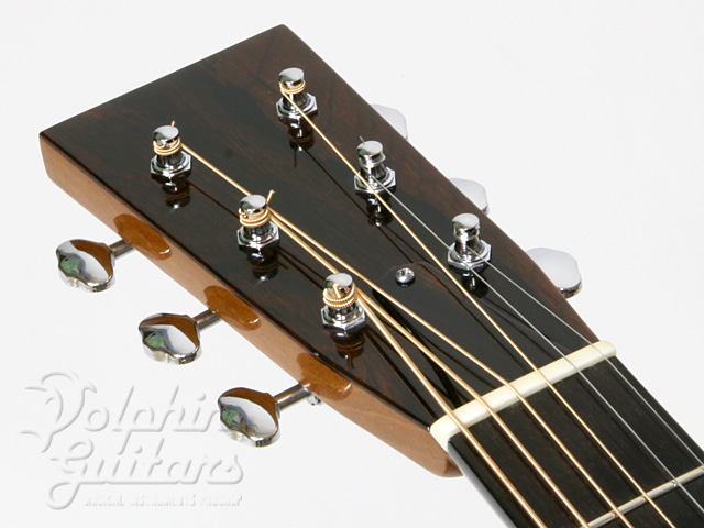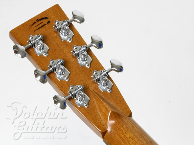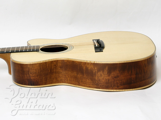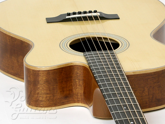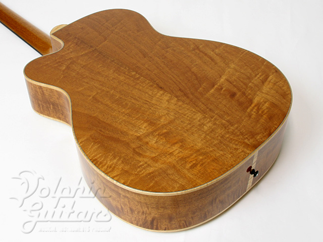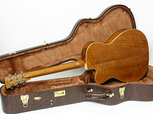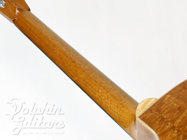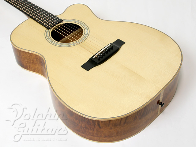 アディロンダック・スプルーストップ、フィギャード・マホガニーサイド&バック、カーリ・メイプル・ボディーバインディング、エボニー指板&駒、Gotoh・オープンバック糸巻き、極薄ラッカー塗装。
