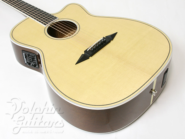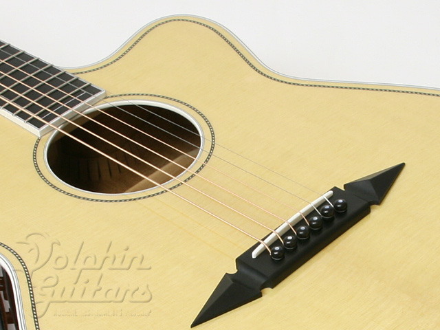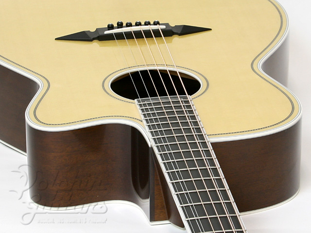 イングルマン・スプルース・トップ、マホガニー・サイド&バック、マホガニー・ワンピース・ネック、エボニー指板&駒、ゴトー糸巻き、ロープパターン・パーフリング&ロゼッタ。