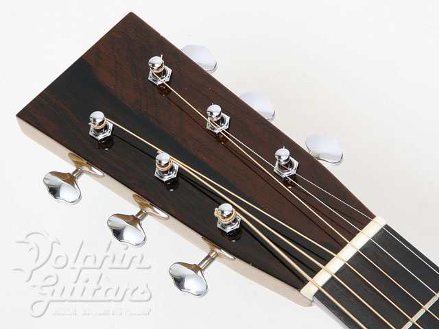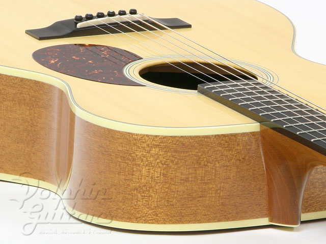 アディロンダック・スプルーストップ、ホンジュラス・マホガニーサイド&バック&ネック、エボニー指板&駒、ゴトー・オープンバック糸巻き、極薄ラッカー塗装。
