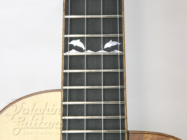 コア・バインディング、12フレットにはドルフィンのインレイを施した当店カスタム品。