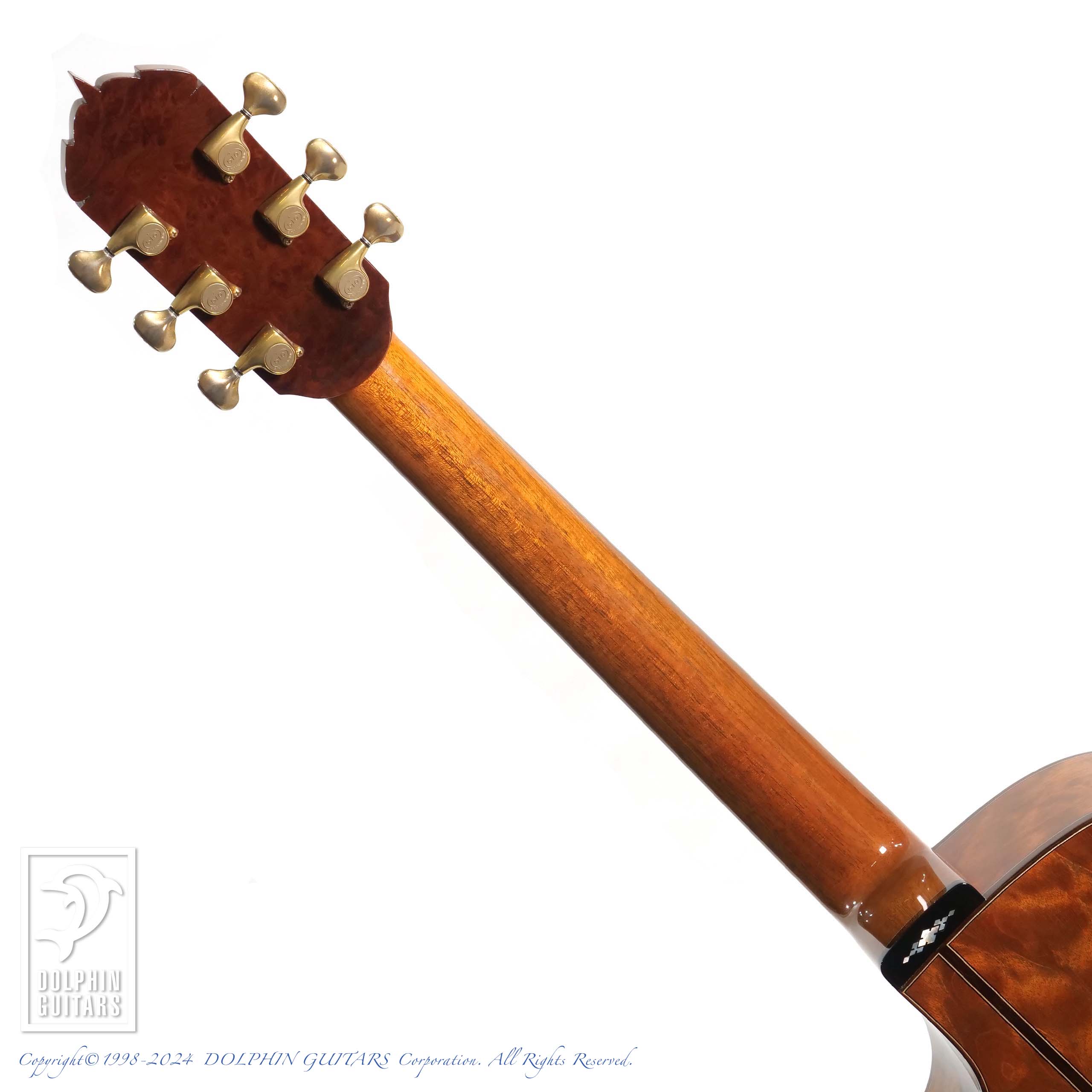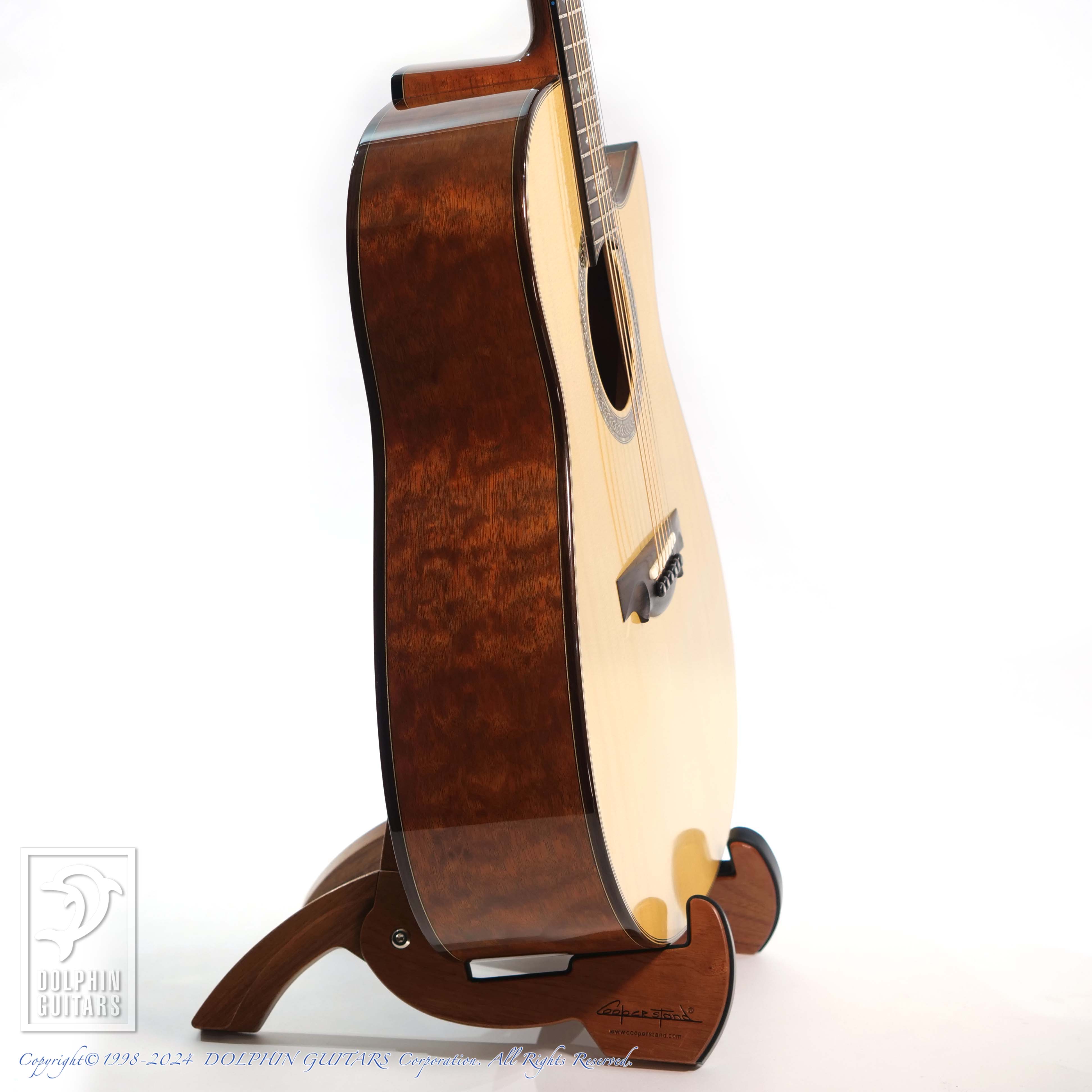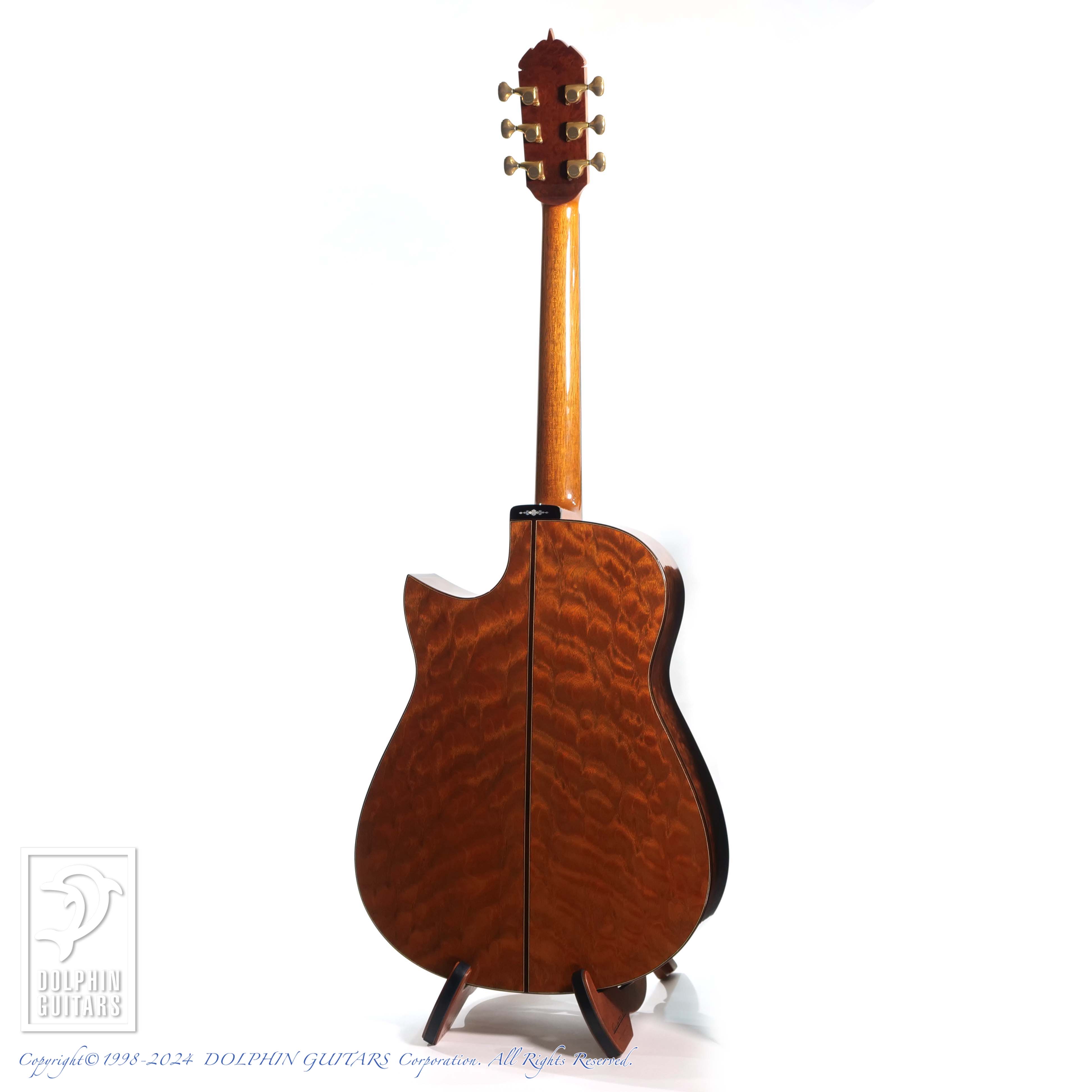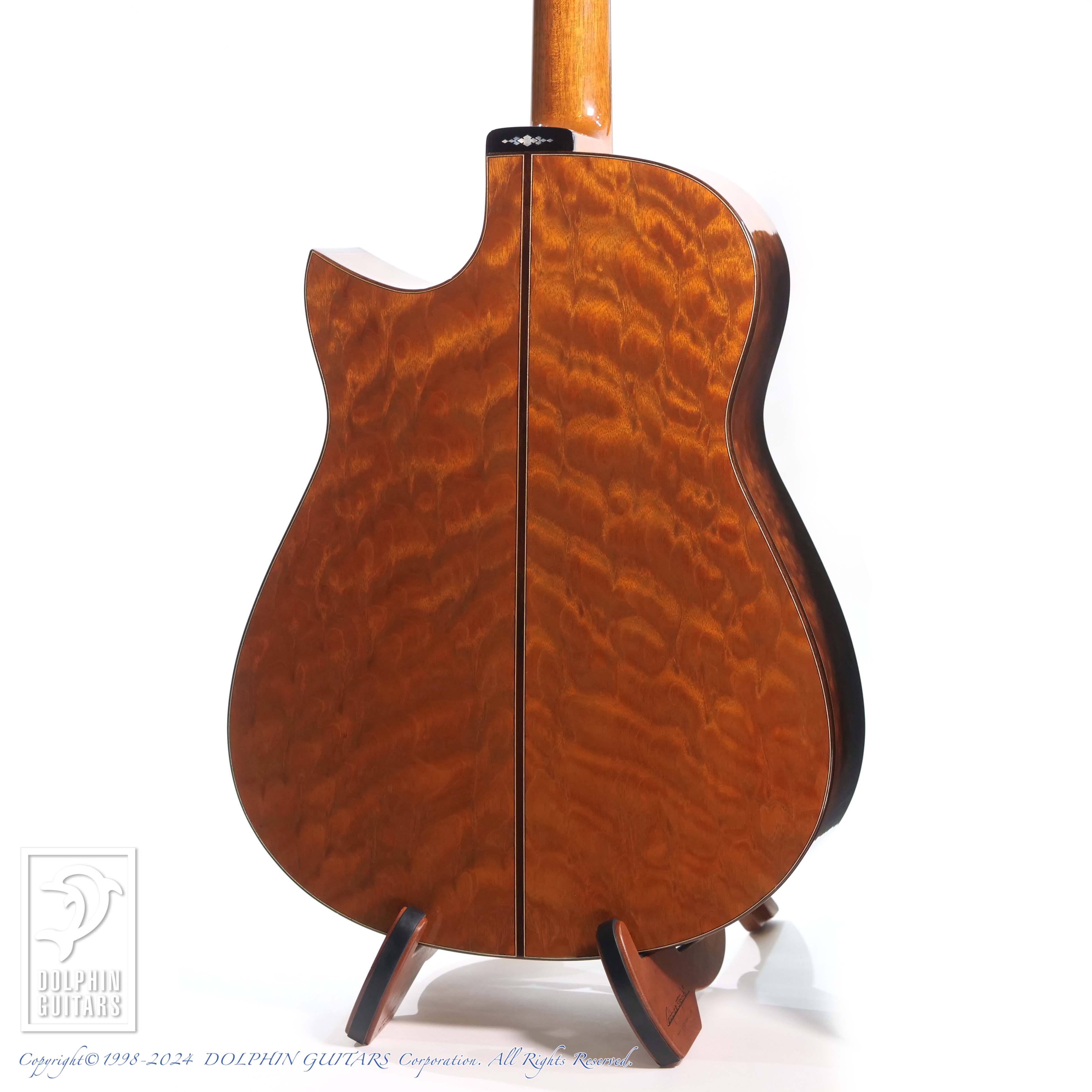 杢目の整った美しいトップやまるで "The Tree"であるかのような鱗状の美しいキルテッドマホガニー、重厚で迫力あるサウンドはもちろん、倍音豊かなナチュラルリヴァーブ感、ロングサスティーンなど、圧倒的な表現力を持つ個体。杢目の美しさと相まってそのルックスは、堂々とした王者の風格は凄いオーラを放っております。