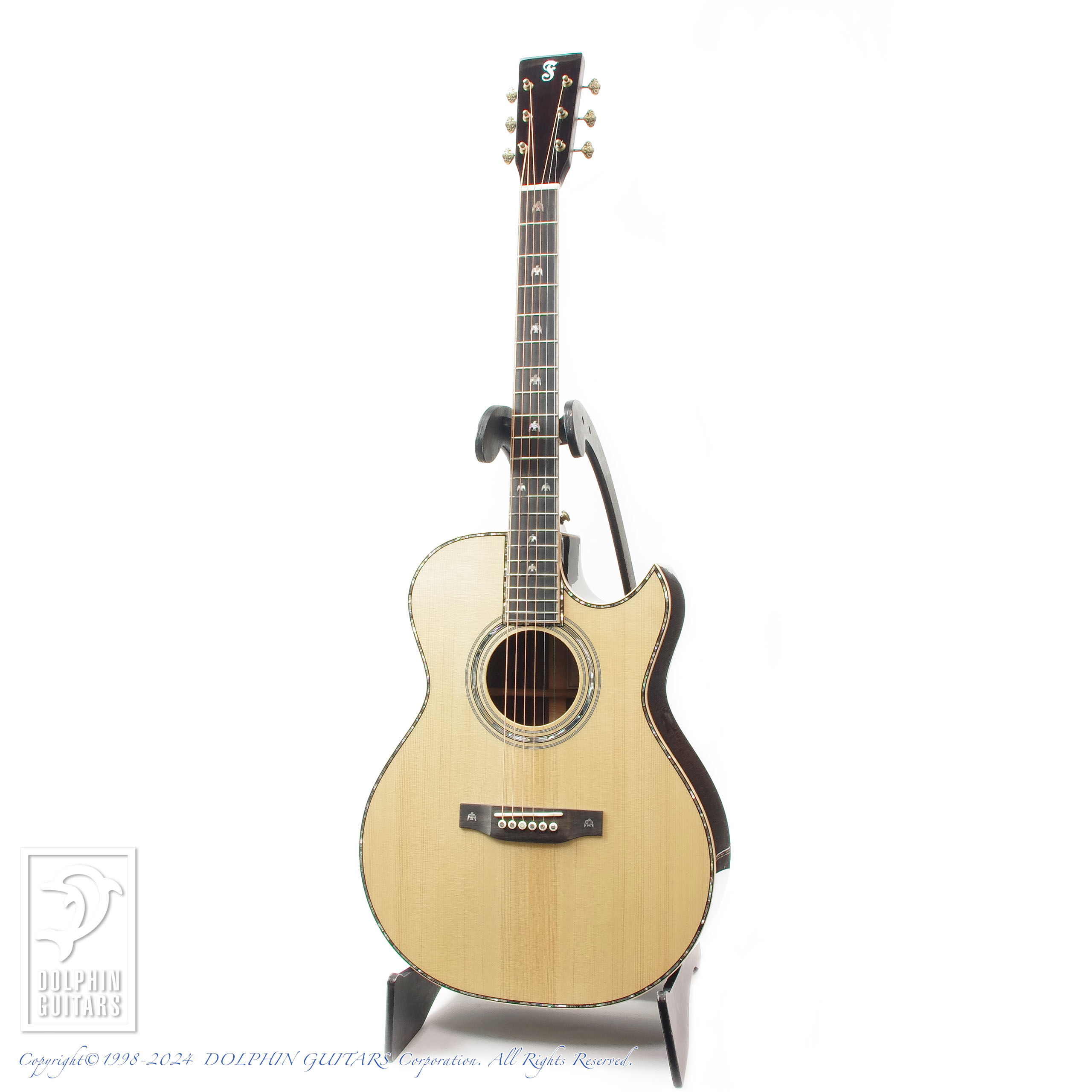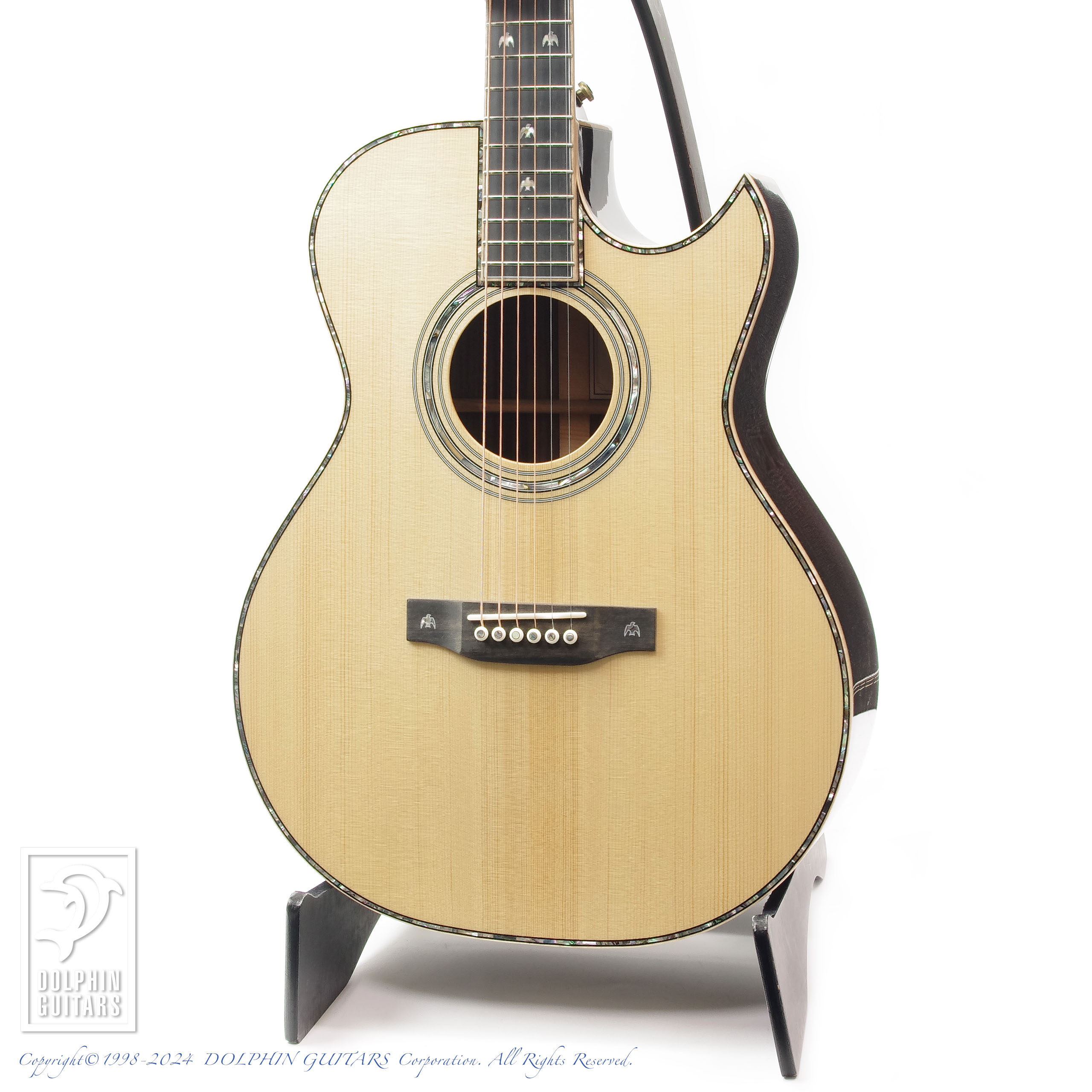 その他:43mmナット幅、647mmスケール、牛骨ナット&サドル、スキャロップドXブレーシング、アバロンロゼッタ&パーフリング、メイプルウッドバインディング(ボディ&指板)。
