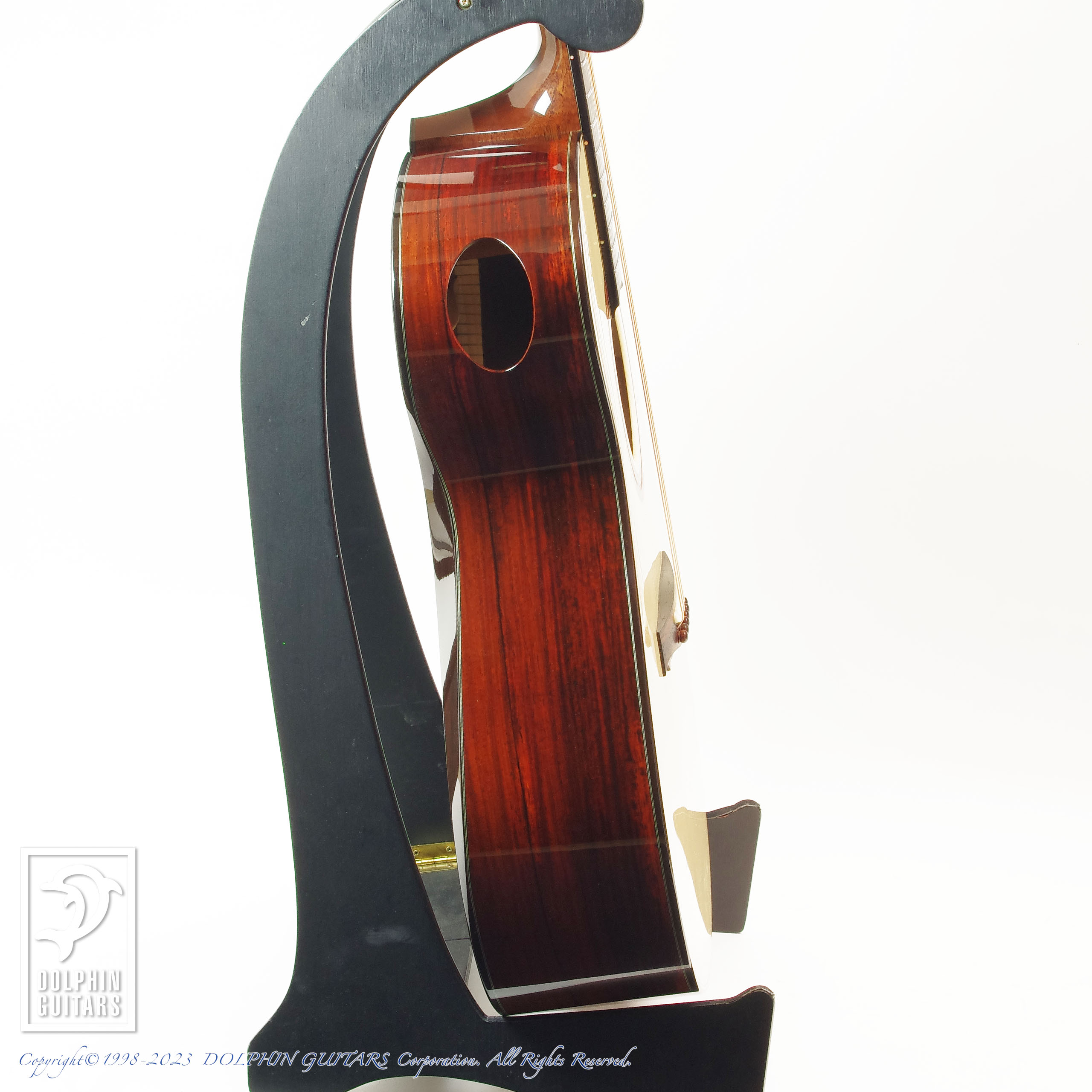 リブレスト(バックコンター)仕様は身体とのフィット感の良さやサイズ感を軽減させるような効果を感じさせる最高のオプションです。その他サイドサウンドホールは弾き手自身へのモニターとしての効果も大きく、メインのサウンドホールとのステレオ感もお楽しみいただけます。