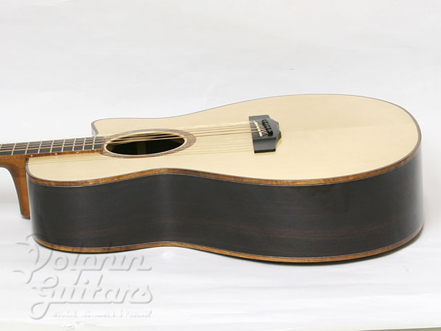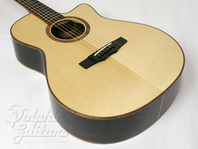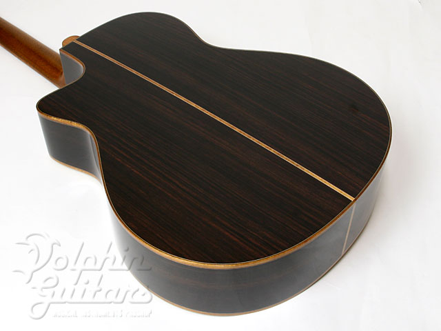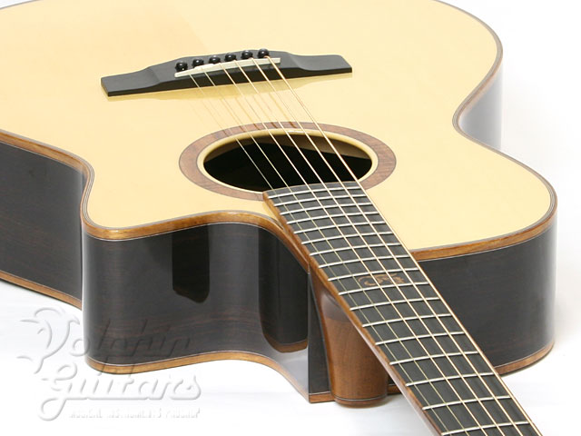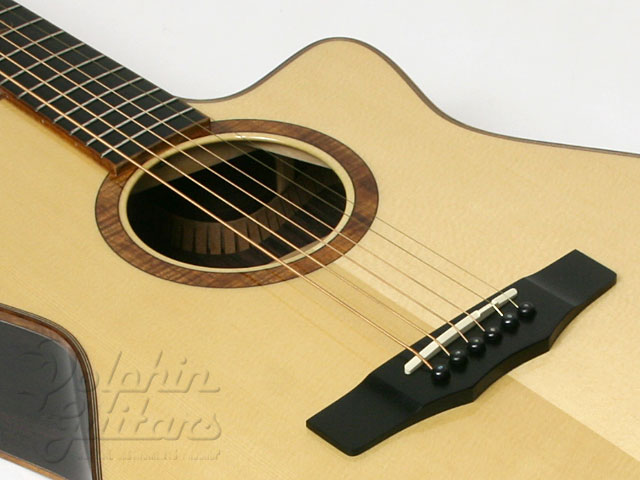 イングルマン・スプルース・トップ、インディアン・ローズウッド・サイド&バック、コアウッド・ボディー・バインディング、エボニー指板&駒、スキャロップド・ブレイシング。